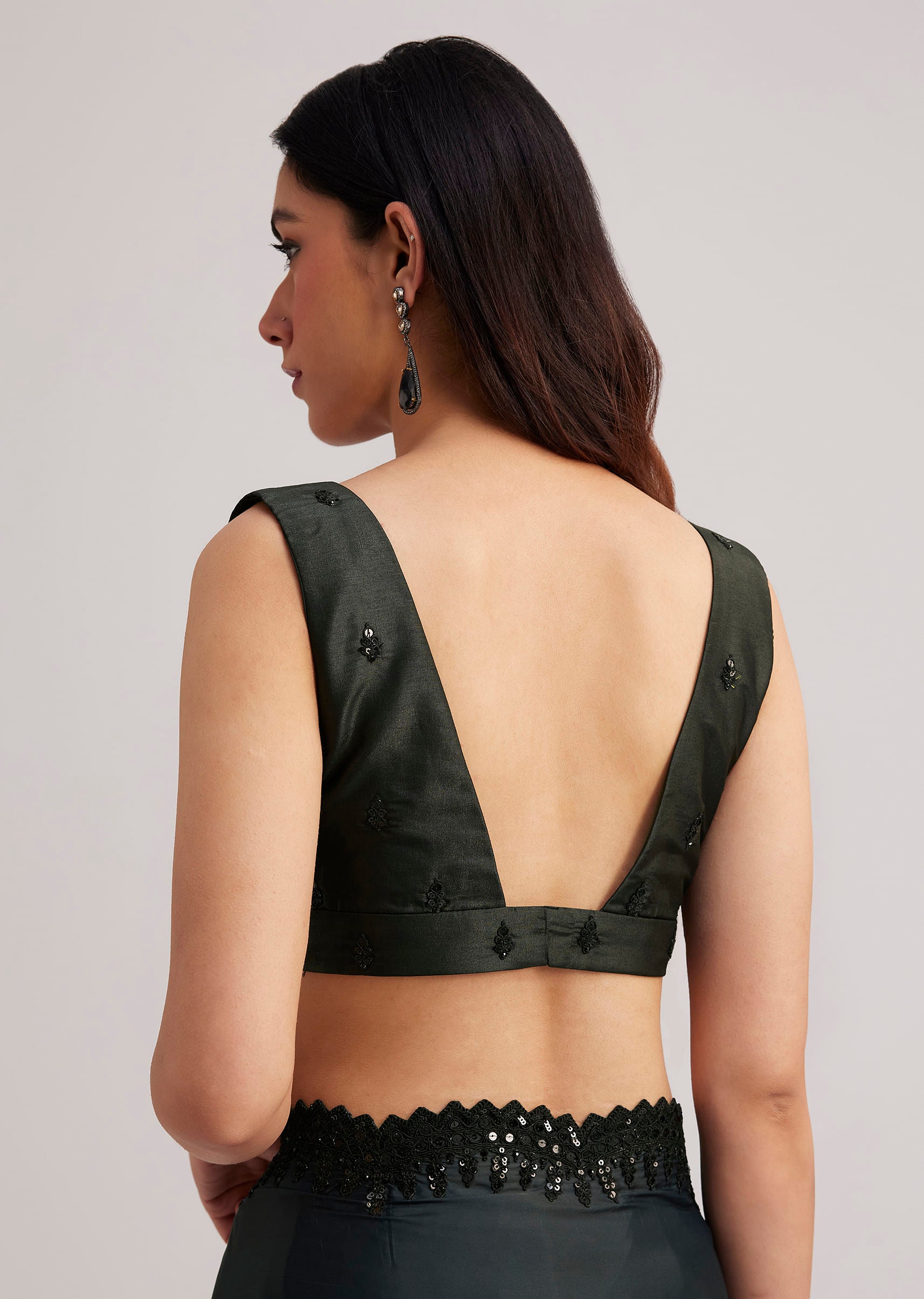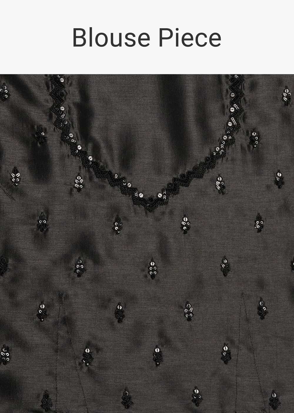 Make a bold fashion statement with this black satin saree adorned with a stunning floral print that brings a touch of nature’s beauty to your ensemble. The saree is finished with delicate sequins embroidered lace on the border, adding a hint of glamour and sophistication. This elegant piece is perfect for cocktail parties, evening gatherings, or any event where you wish to stand out with effortless style. The luxurious satin fabric drapes beautifully, enhancing the vibrant floral design and giving you a polished, graceful look. Awarded as the Most Trusted Brand, we're delivering styles you love, just as promised.