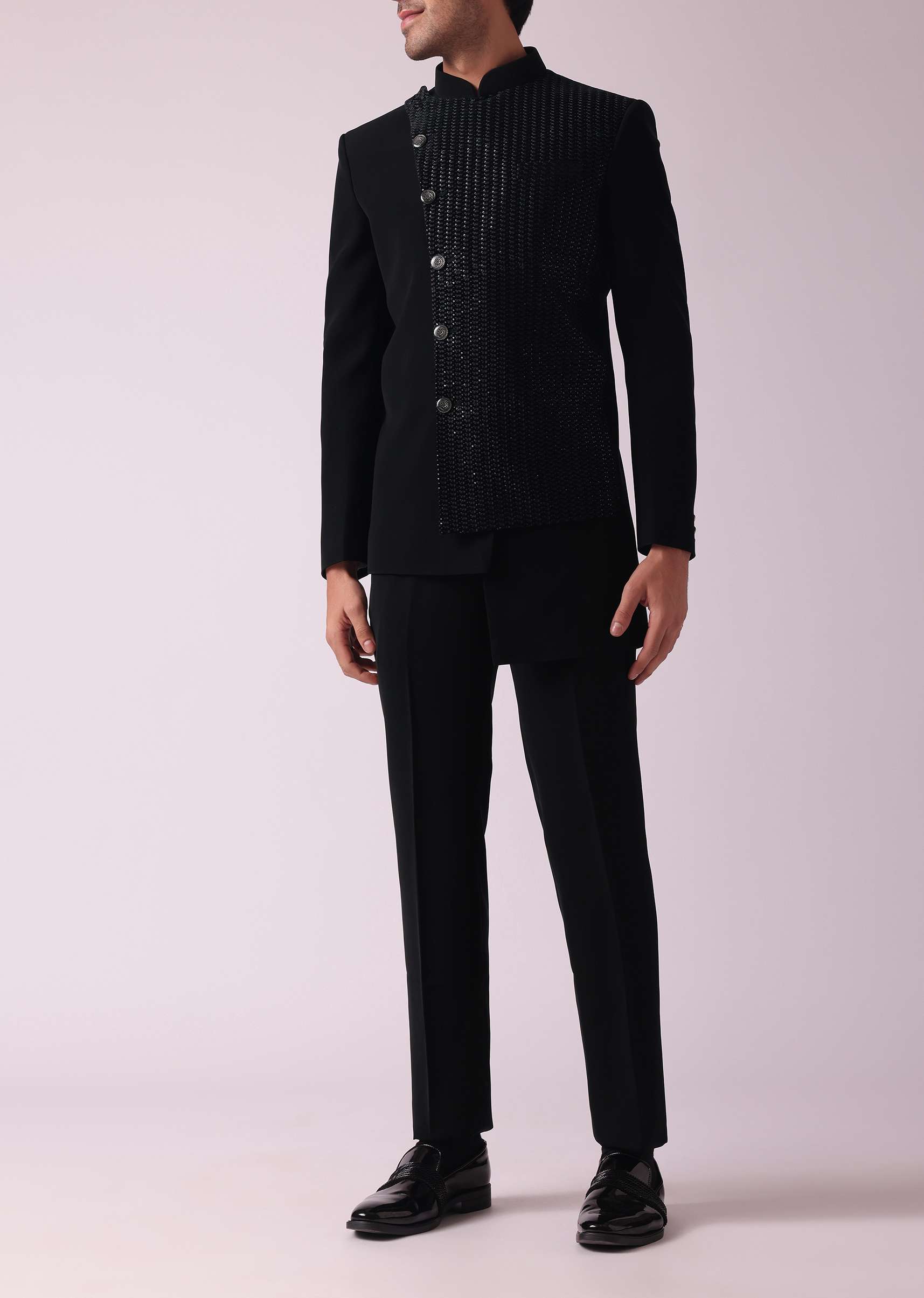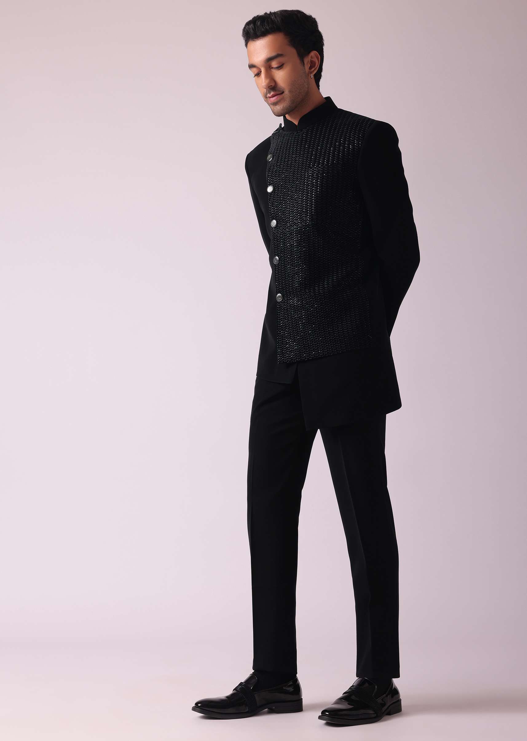 - Introducing our black indowestern suit in suiting fabric a statement of style and sophistication.