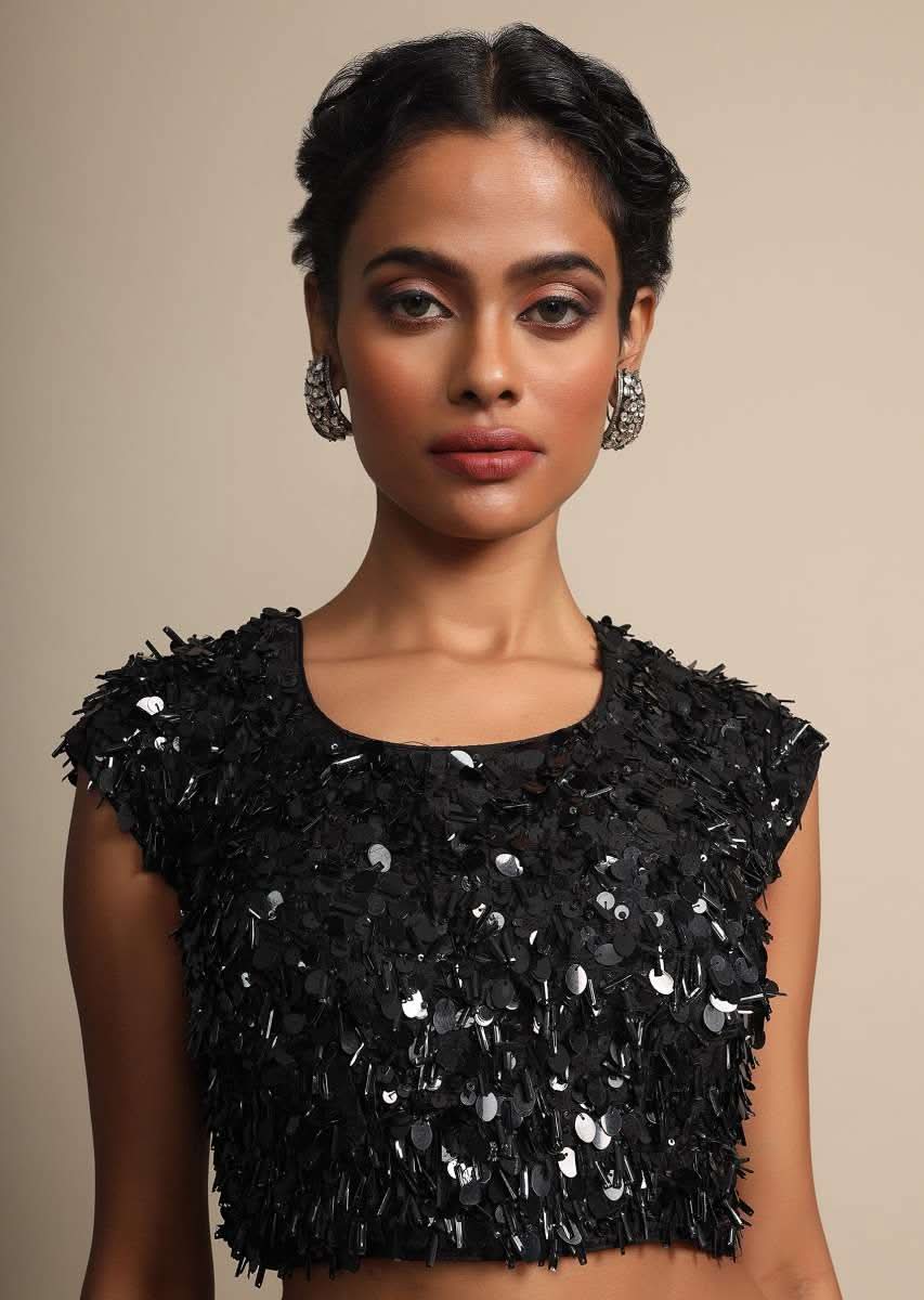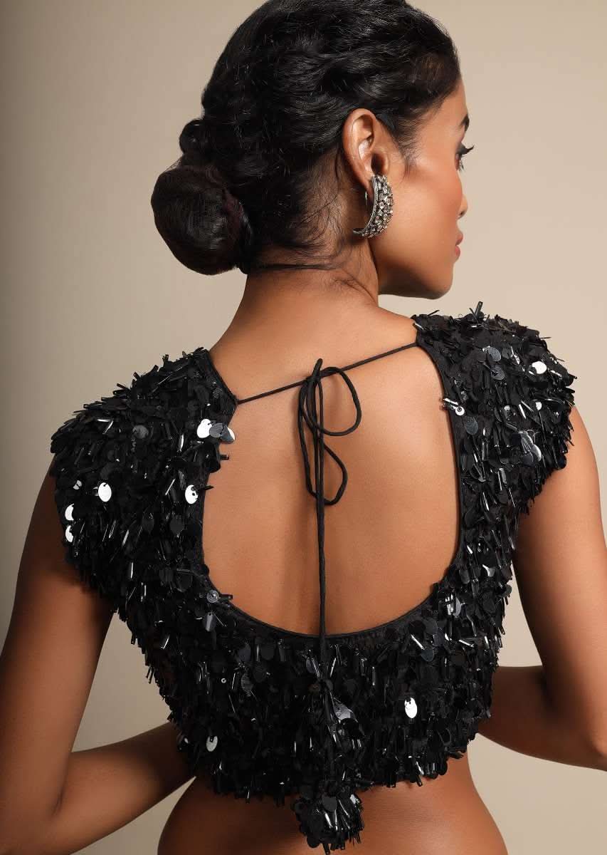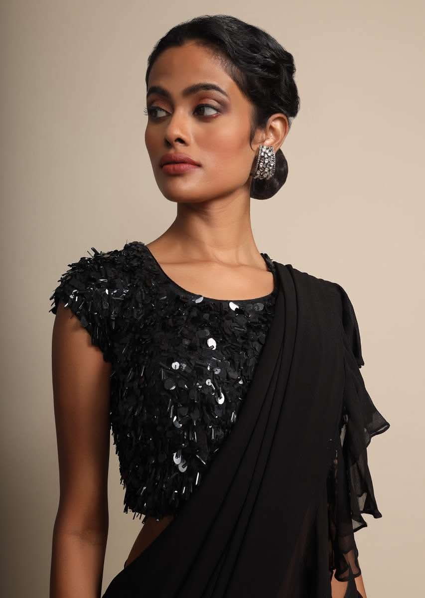 Black Georgette Saree With Frills Online - Kalki Fashion