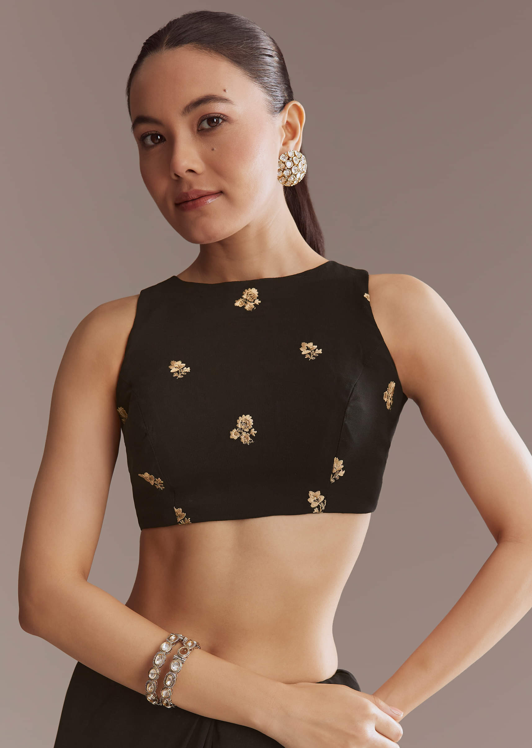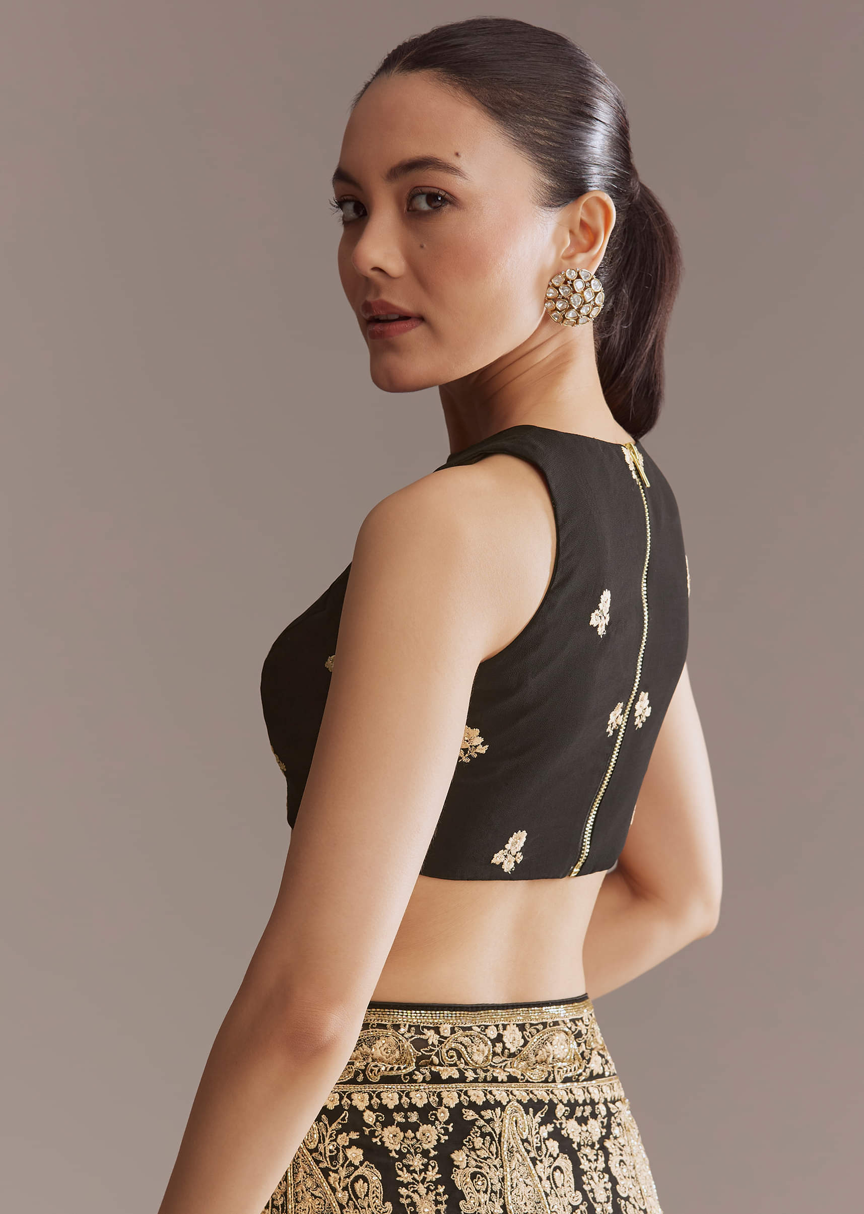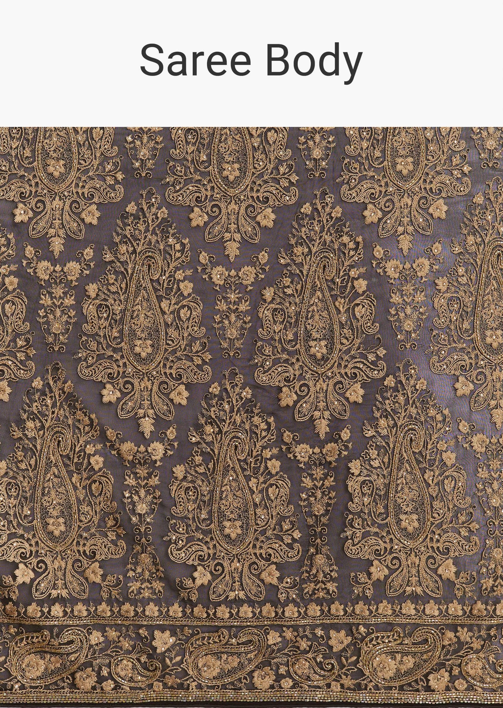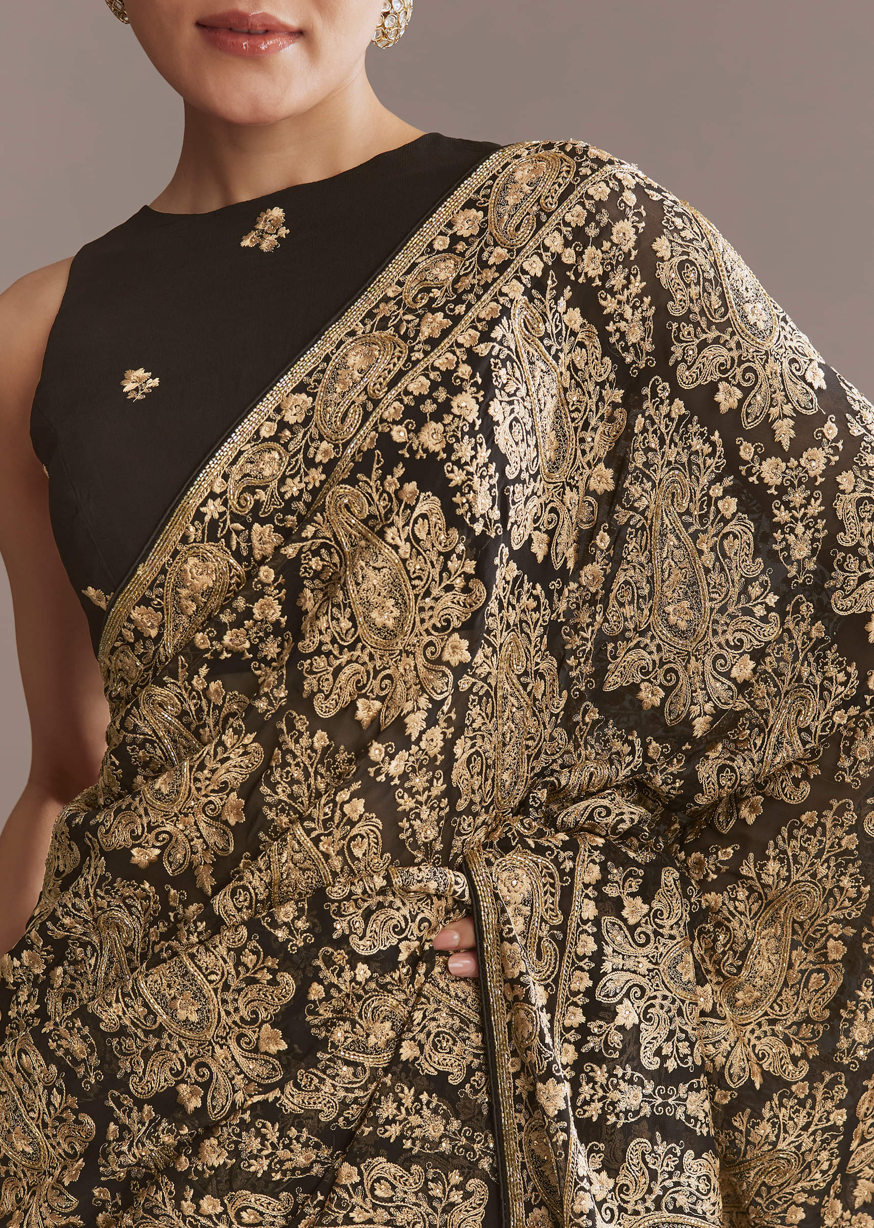 Black Georgette Saree With Kashmiri Kashida Embroidery