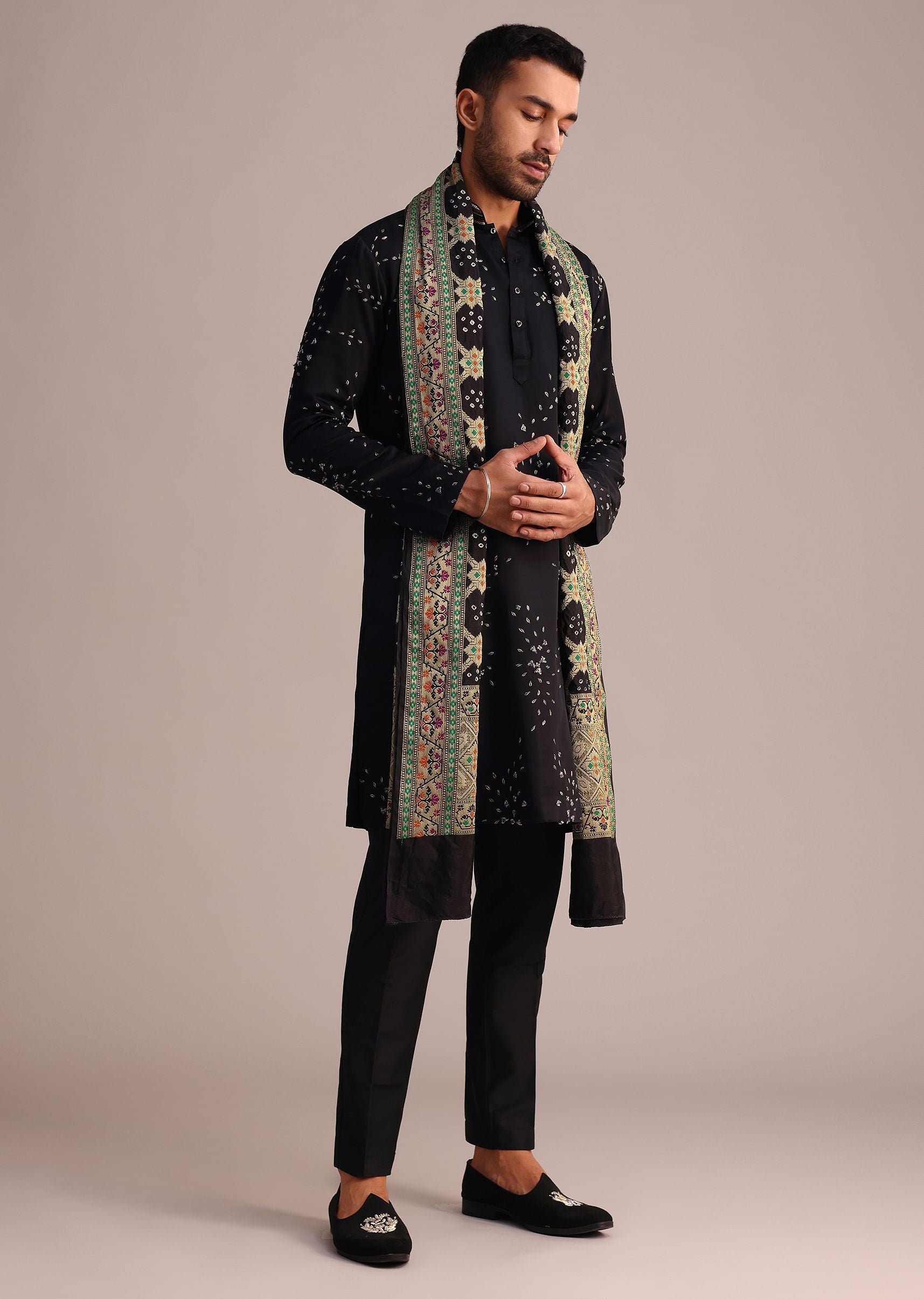 - A traditional style that fits your modern aesthetics is this exquisite black kurta set.
