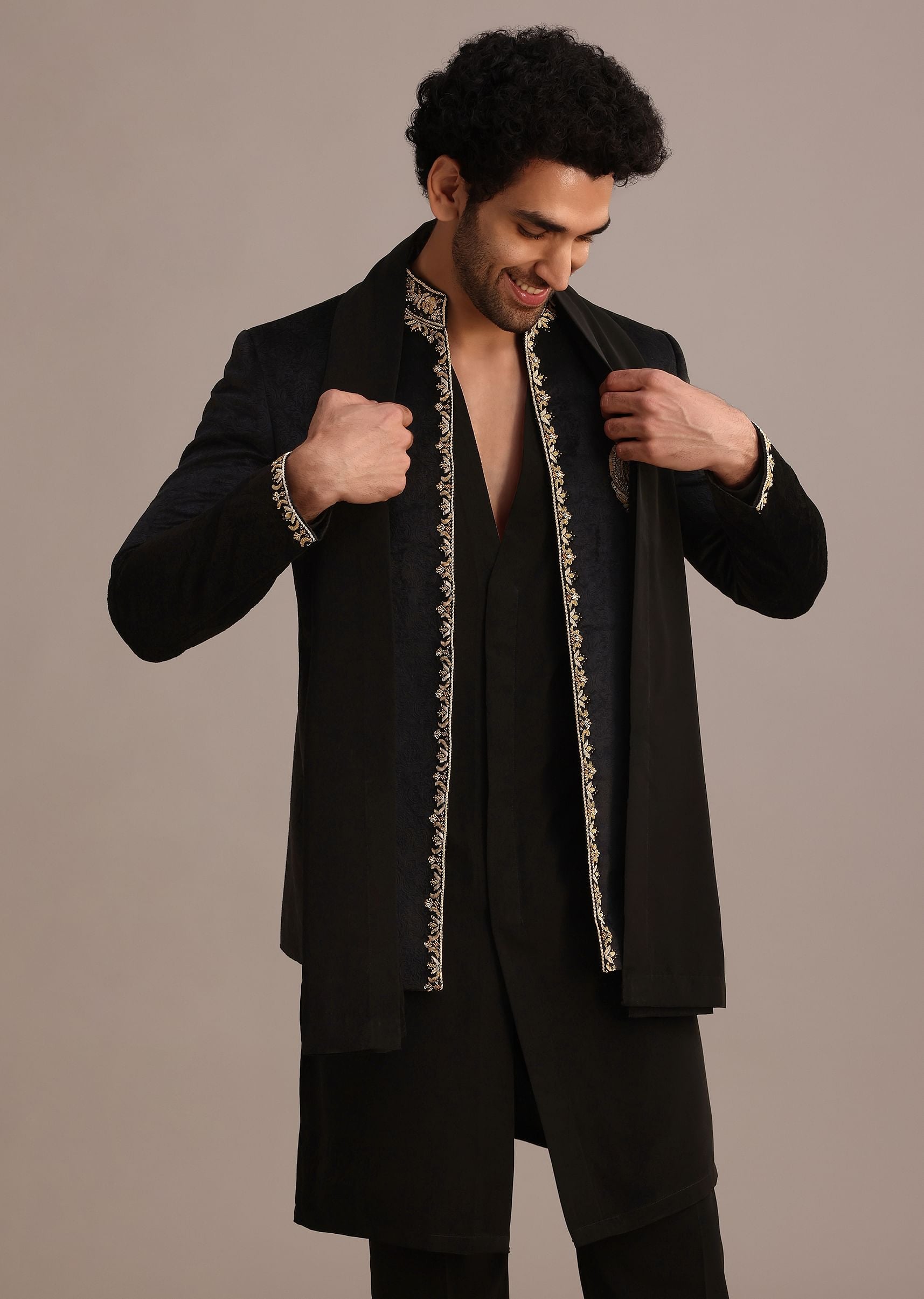 Black Handwork Jodhpuri Kurta Set with Dupatta