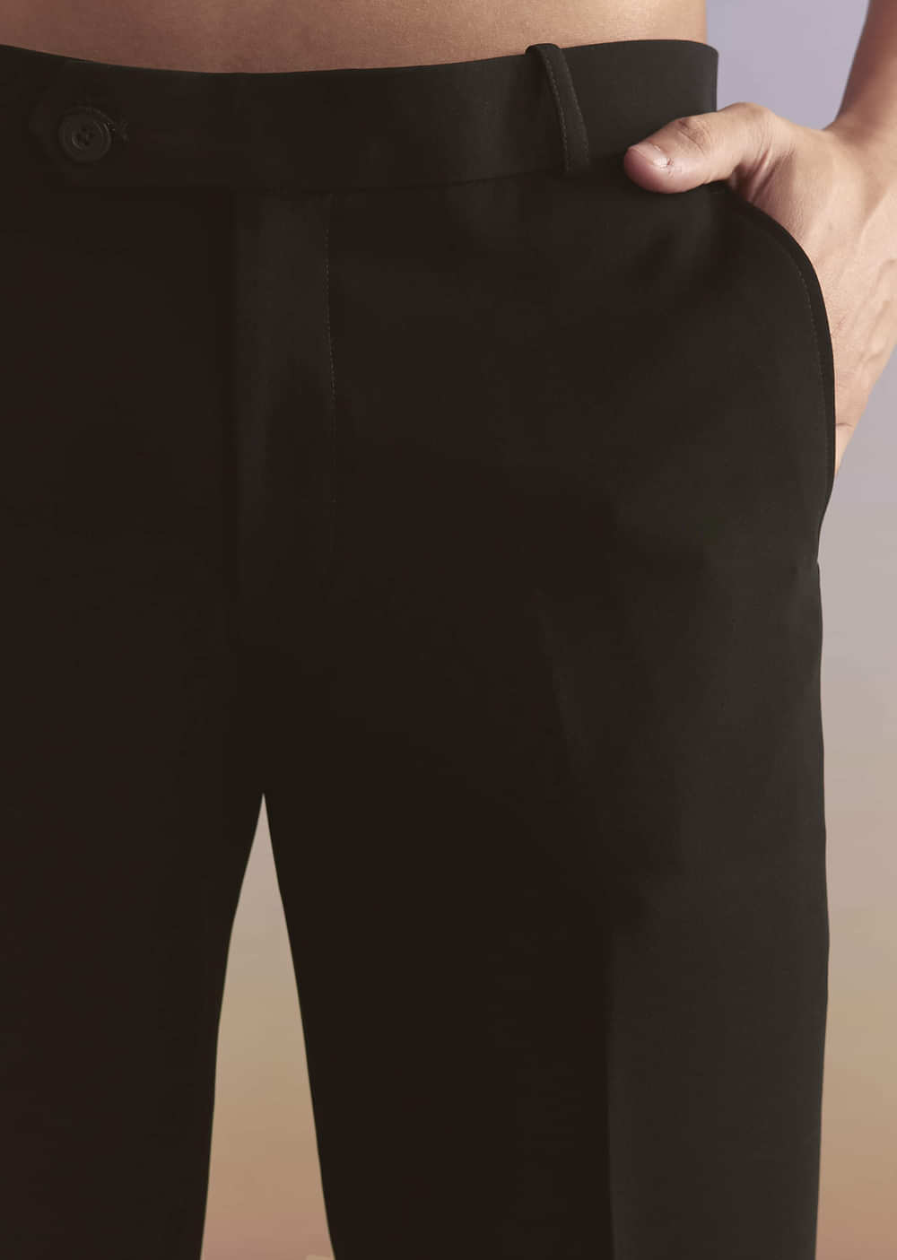 Fit Tips:The jacket frames the shoulders and closes flat at the front, and the trousers maintain a straight leg that moves comfortably through greetings and dance.