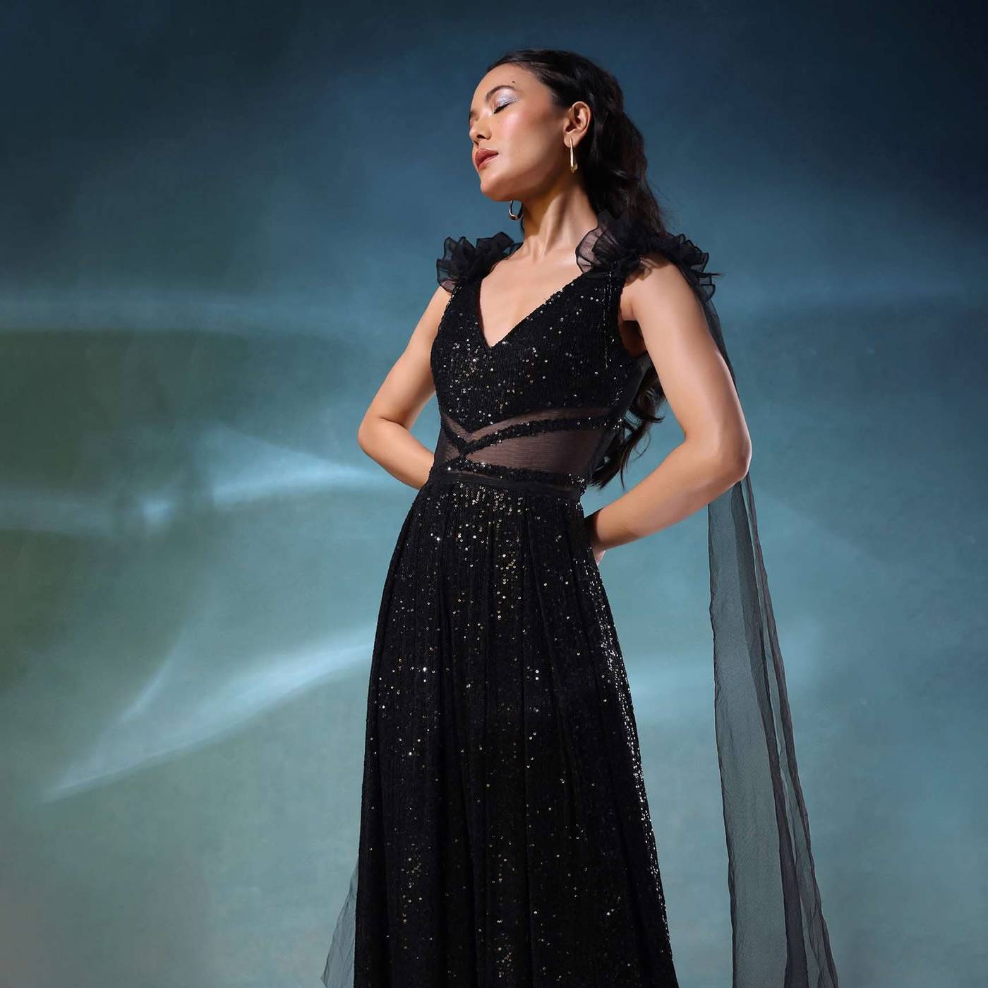 Introducing our exclusive black jumpsuit, designed to exude opulence and sophistication. Crafted from premium sequins fabric, the jumpsuit is the epitome of elegance, ensuring you look and feel your best... More Product Details
