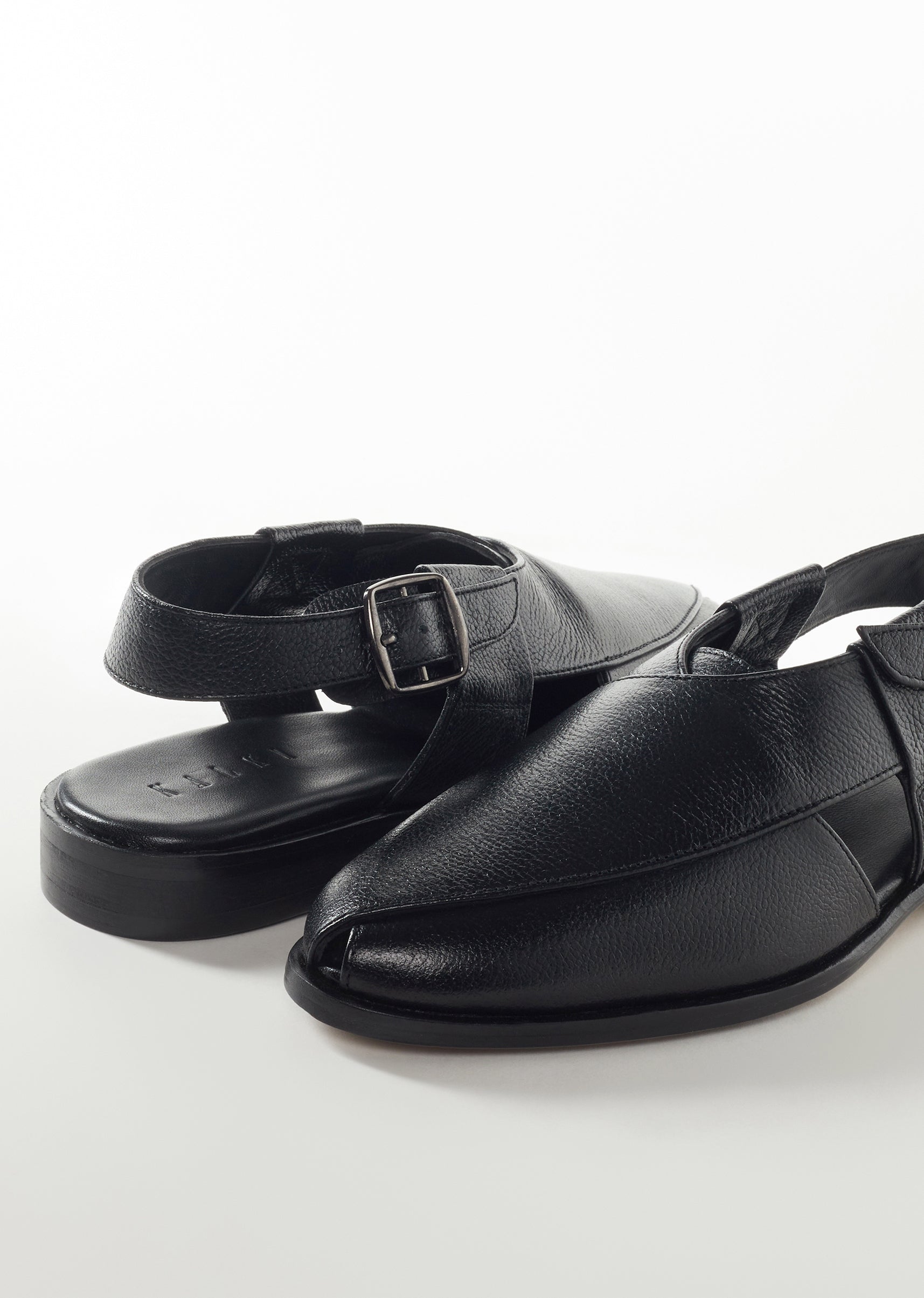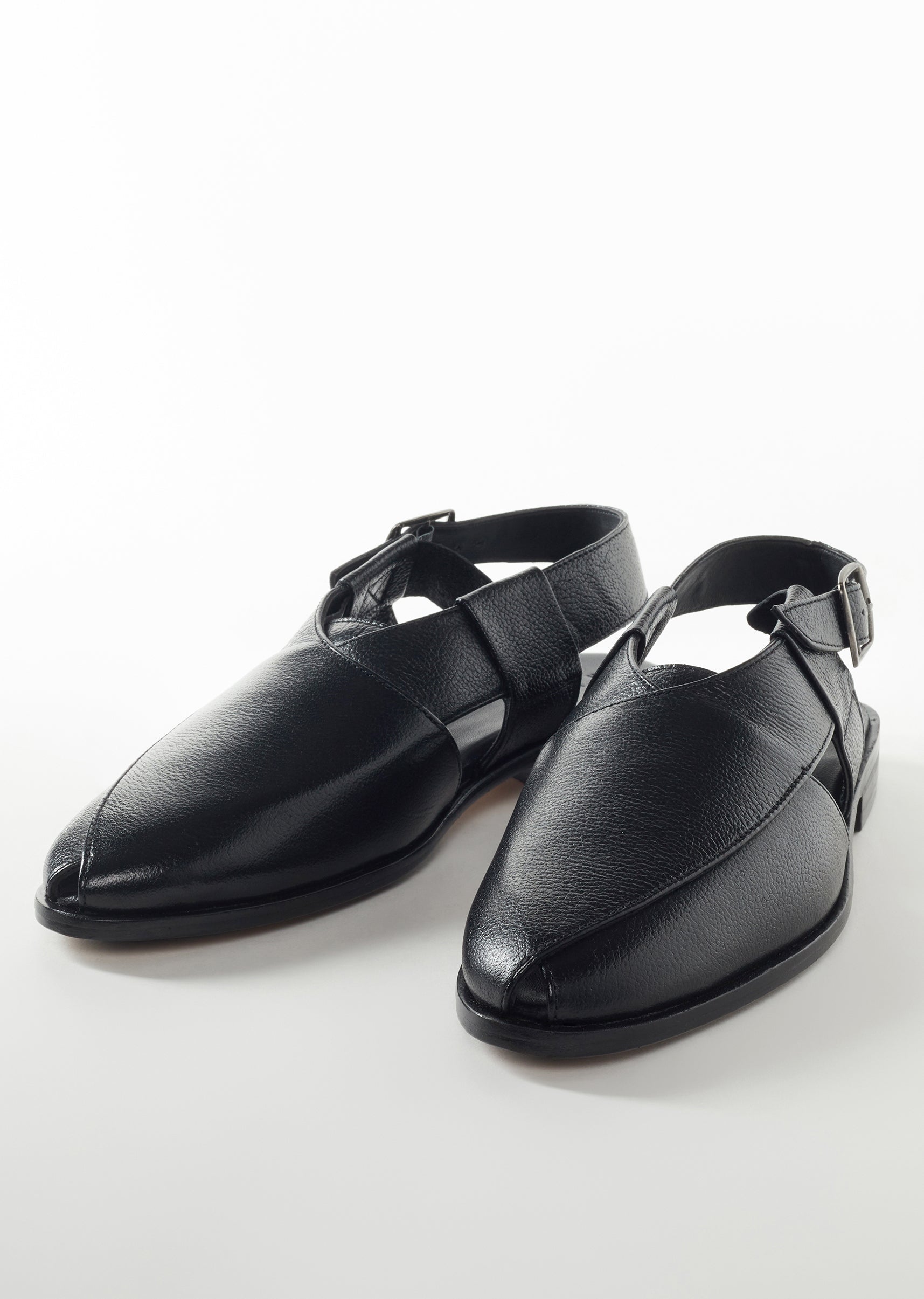 Black Leather Footwear For Men