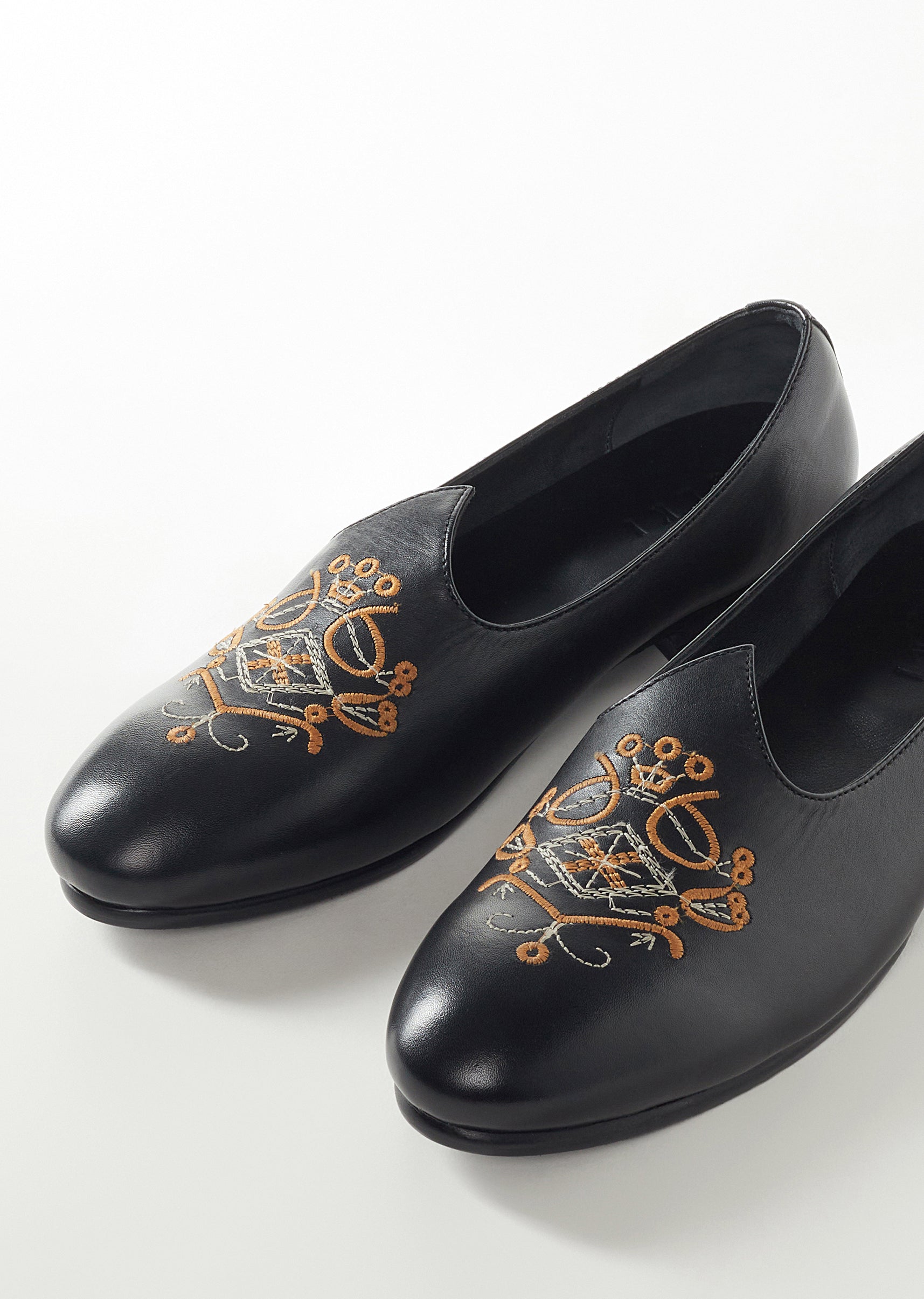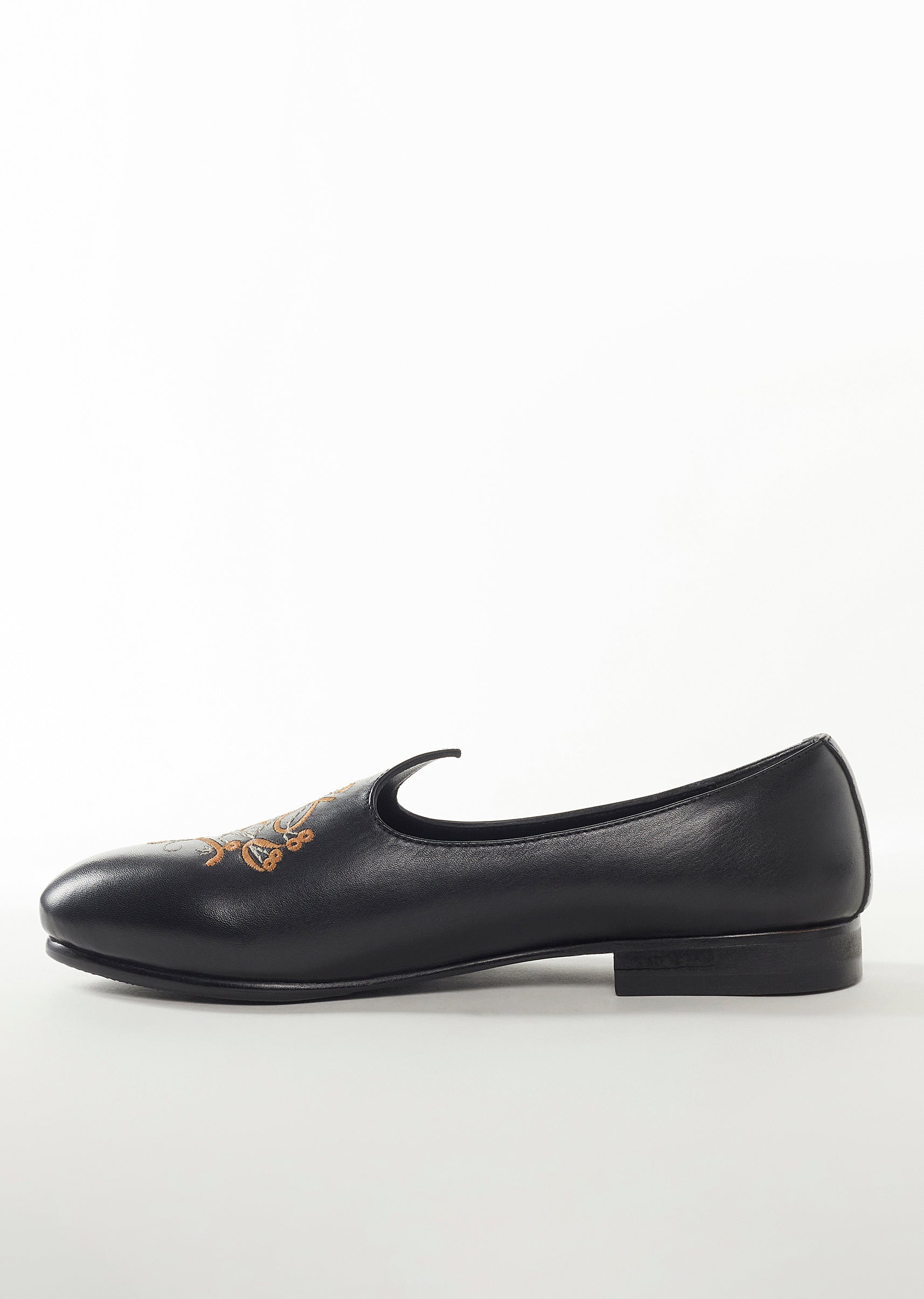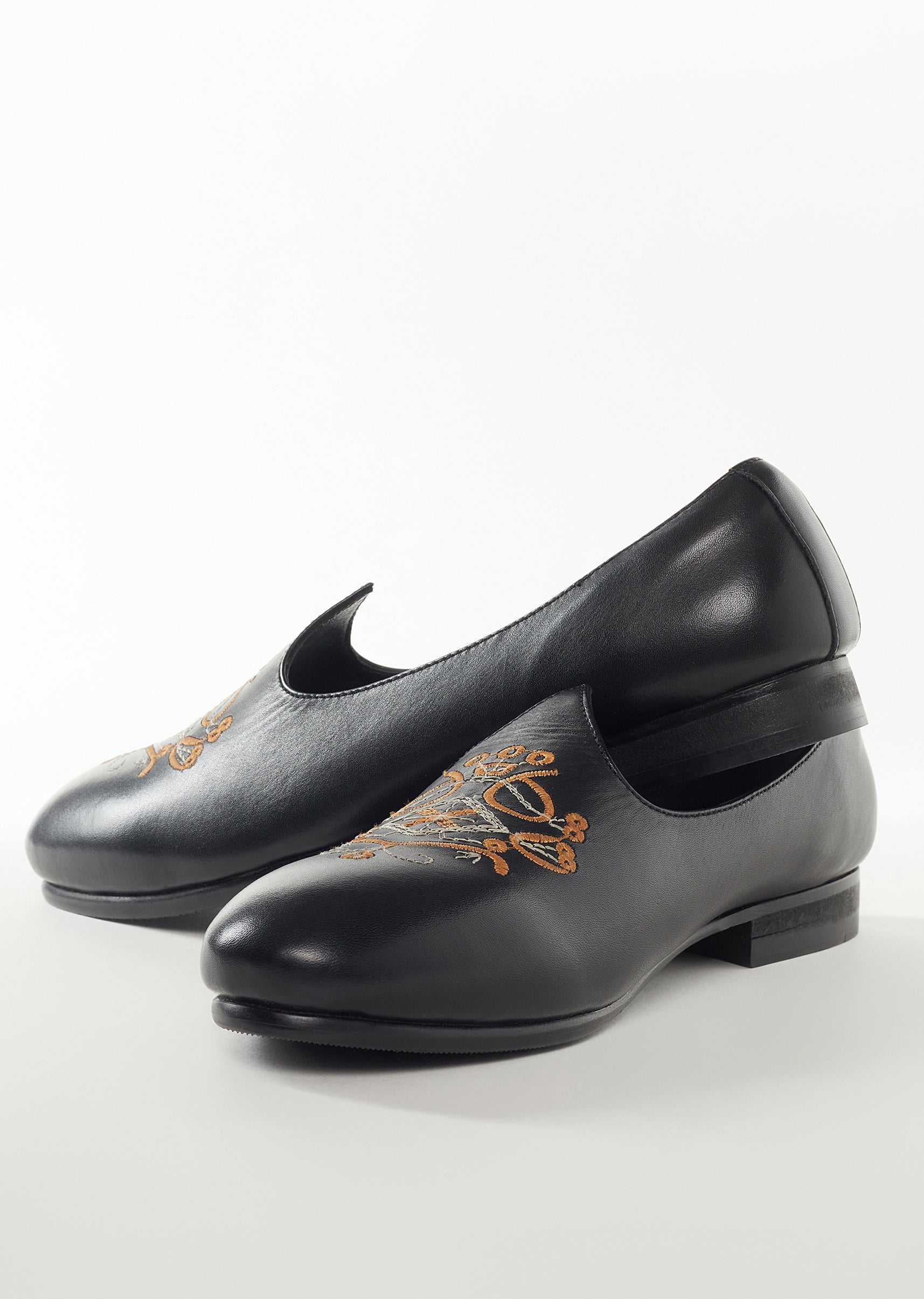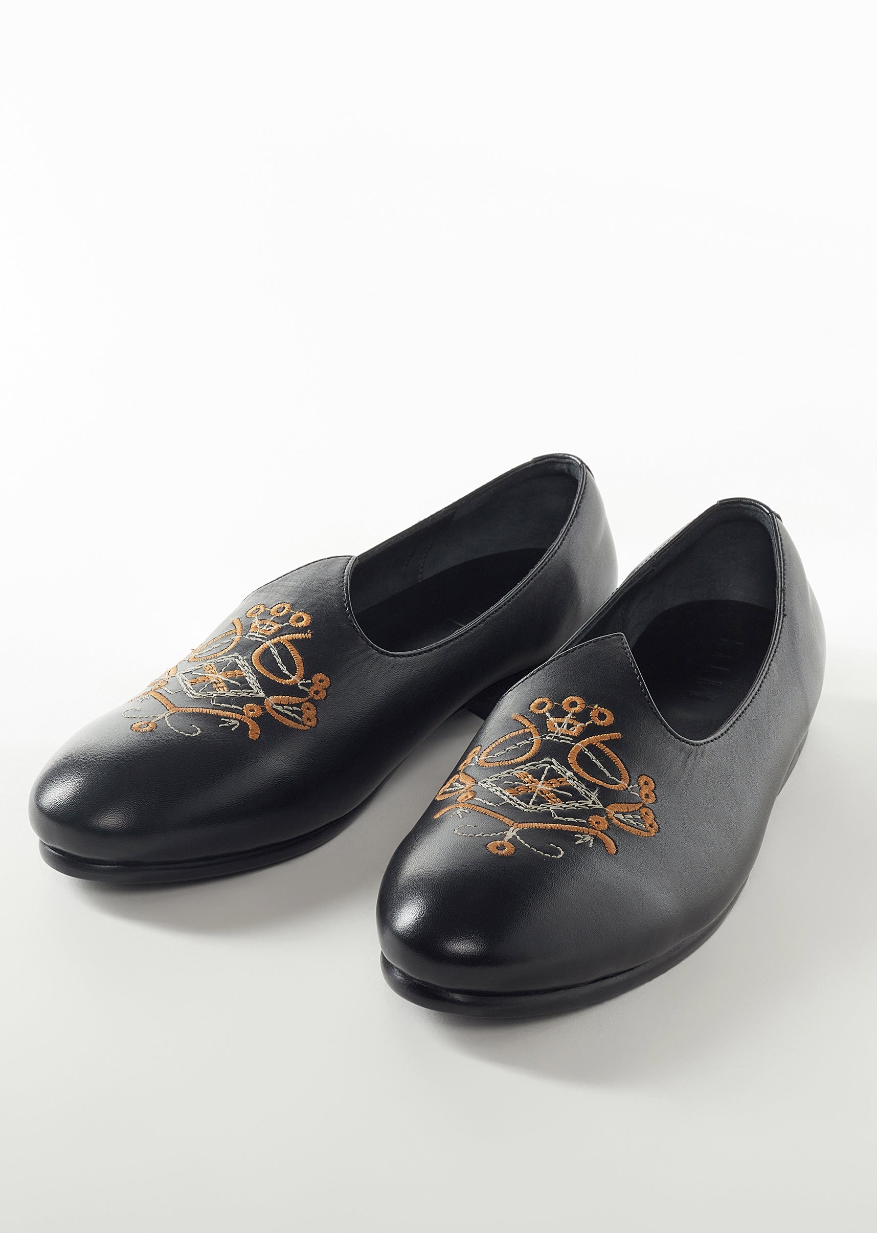 Refined and stylish, these black mens footwear pieces are crafted in smooth faux leather with subtle embroidery detailing that adds a touch of festive elegance. The tabletop face silhouette ensures... More Product Details