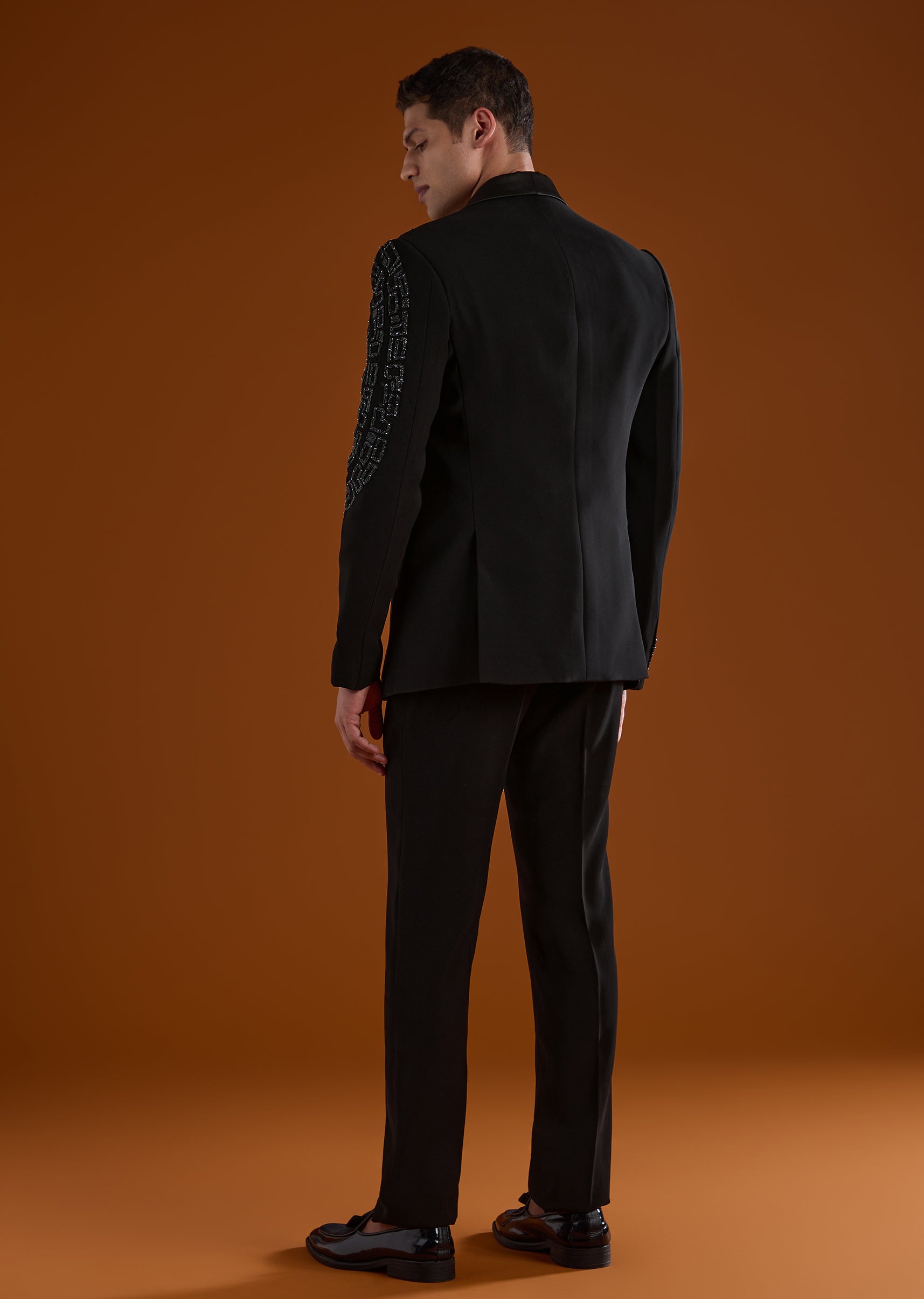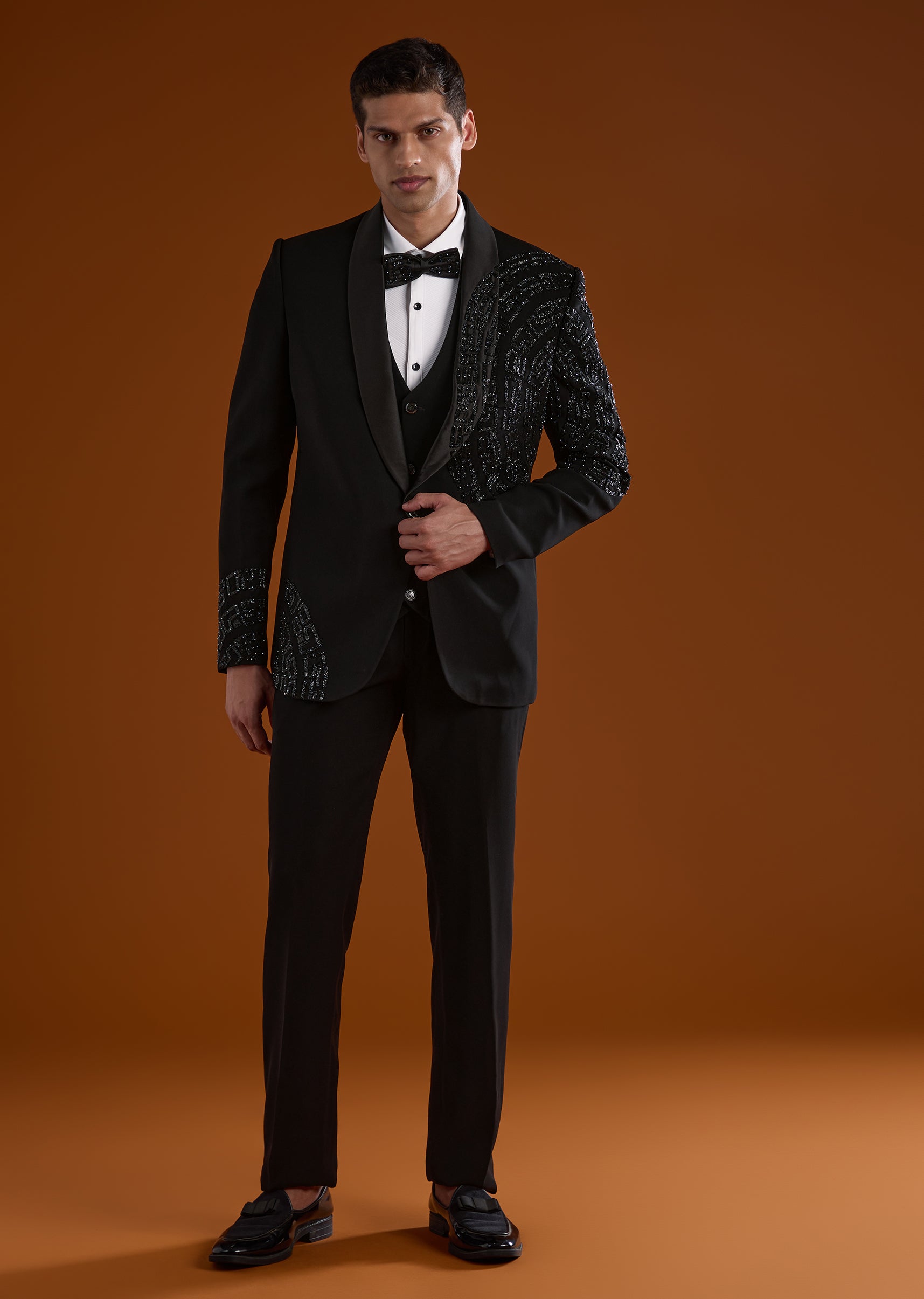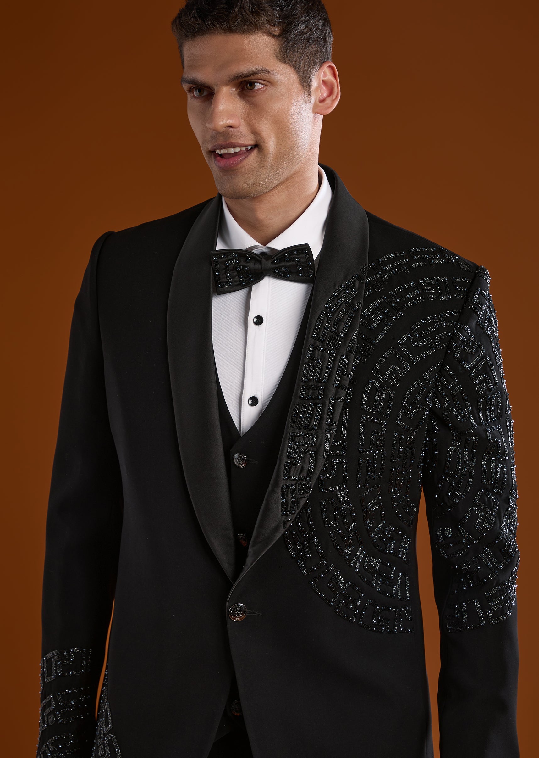 Black Mens Tuxedo With Cut Dana And Diamond Work