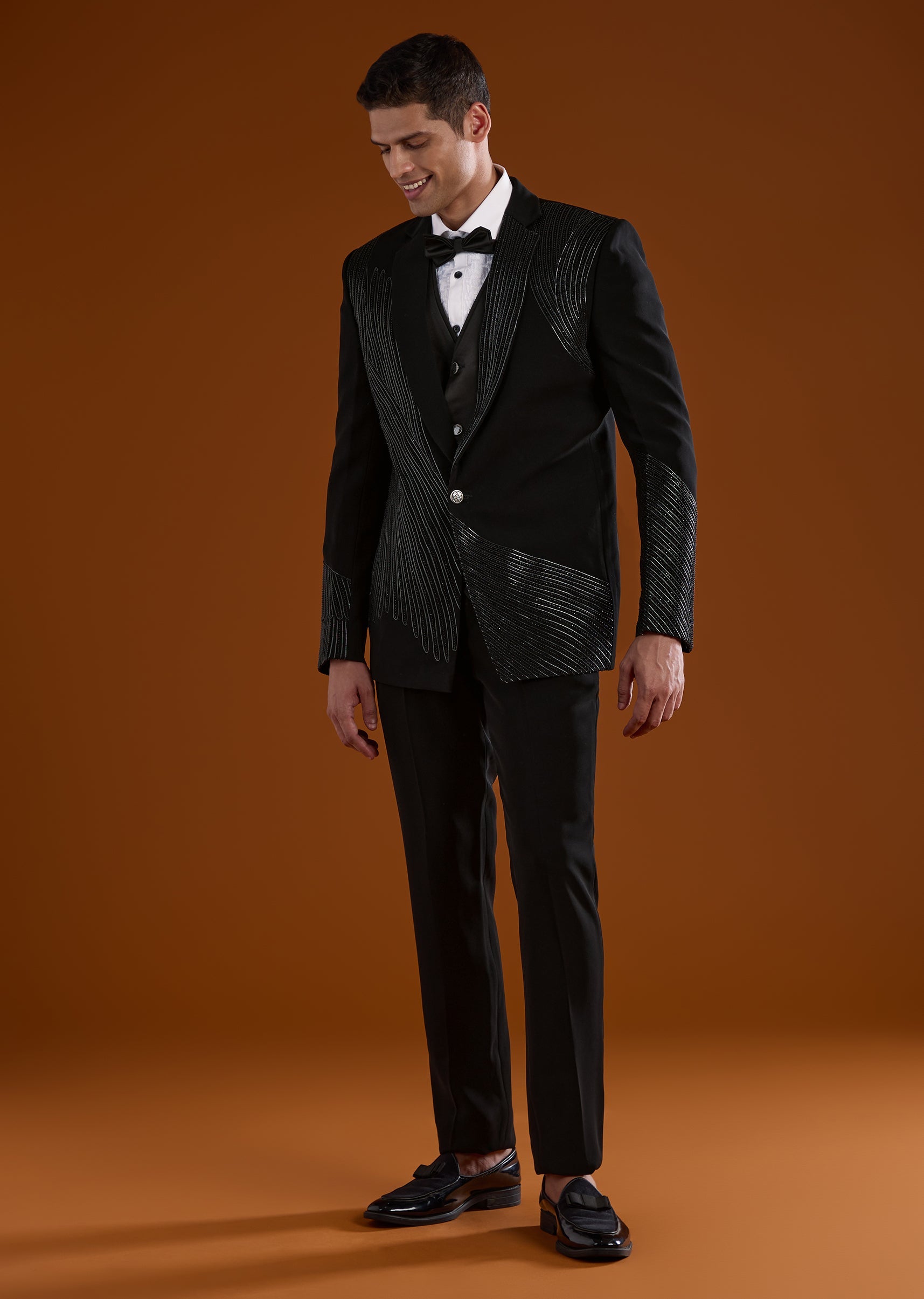 Black Mens Tuxedo With Dori Work And Leather Accents