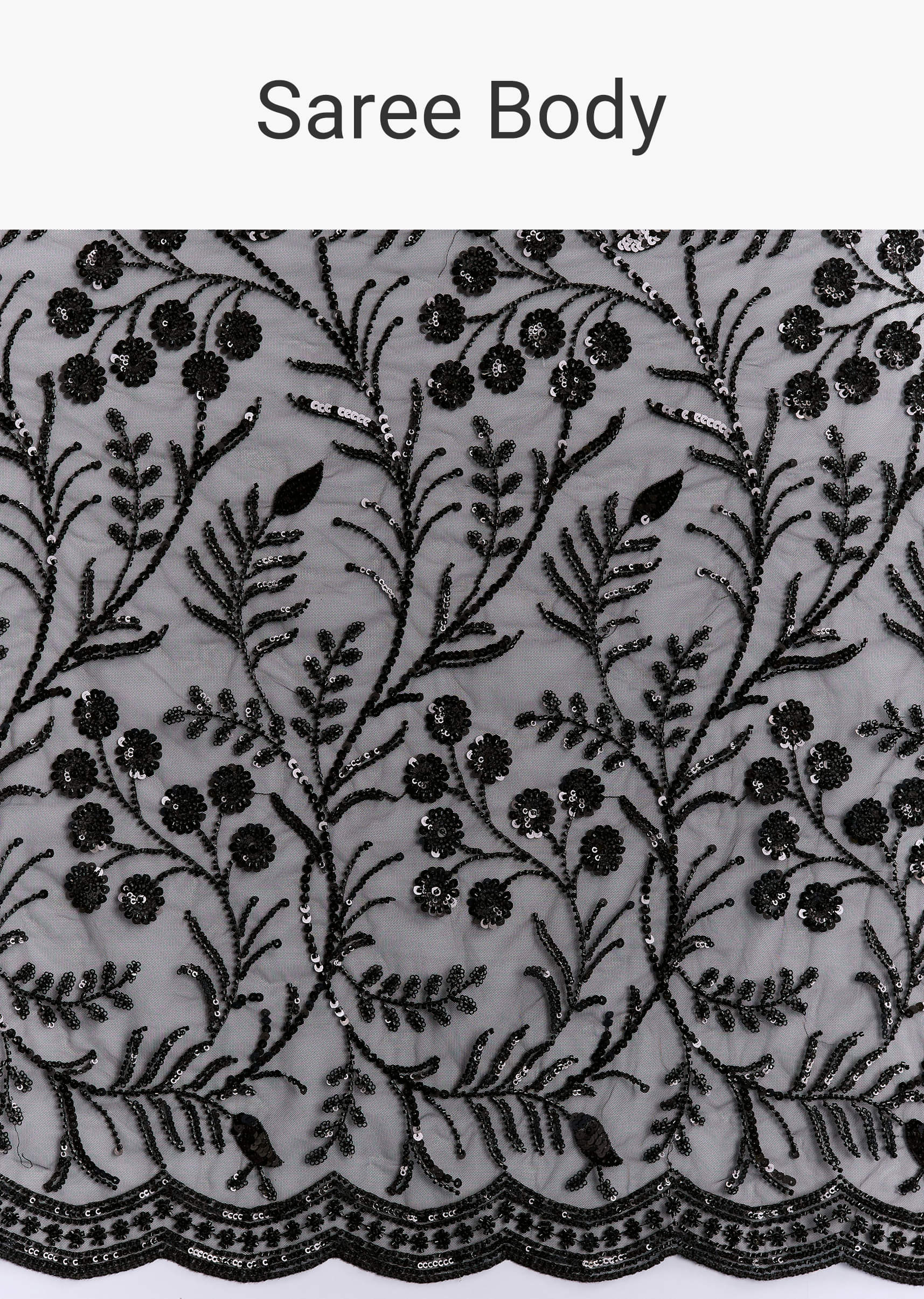 Black Net Saree With Intricate Floral Sequins Embroidery