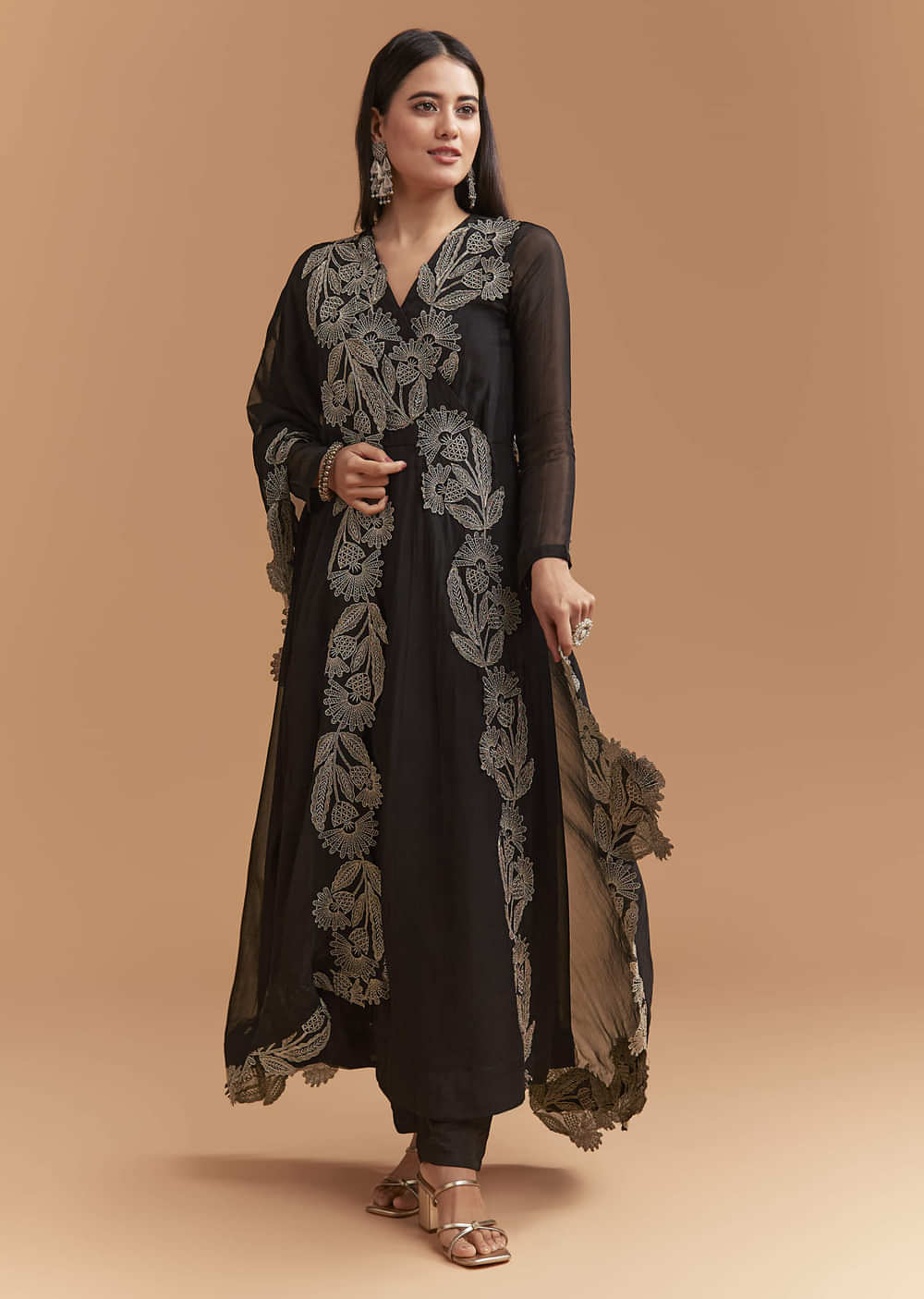 Black Organza Kurta Set With Intricate Zari Embroidery