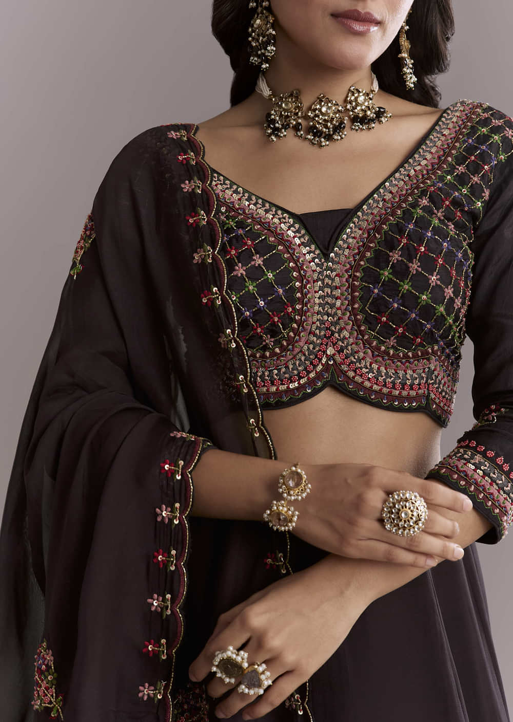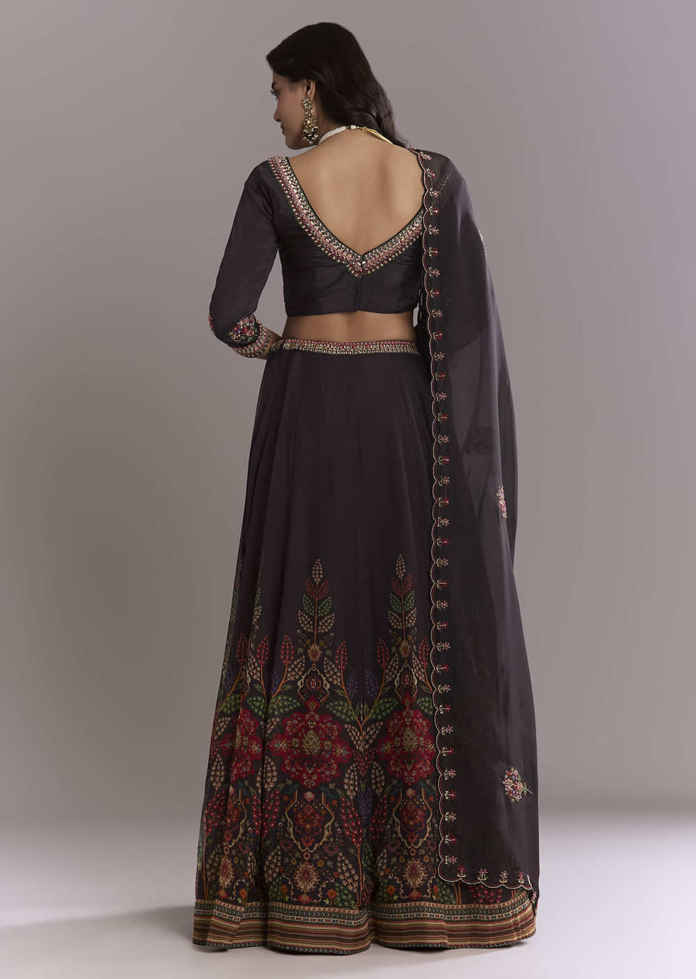 Black Organza Printed Bridesmaid Lehenga With Intricate Hand Embroidery