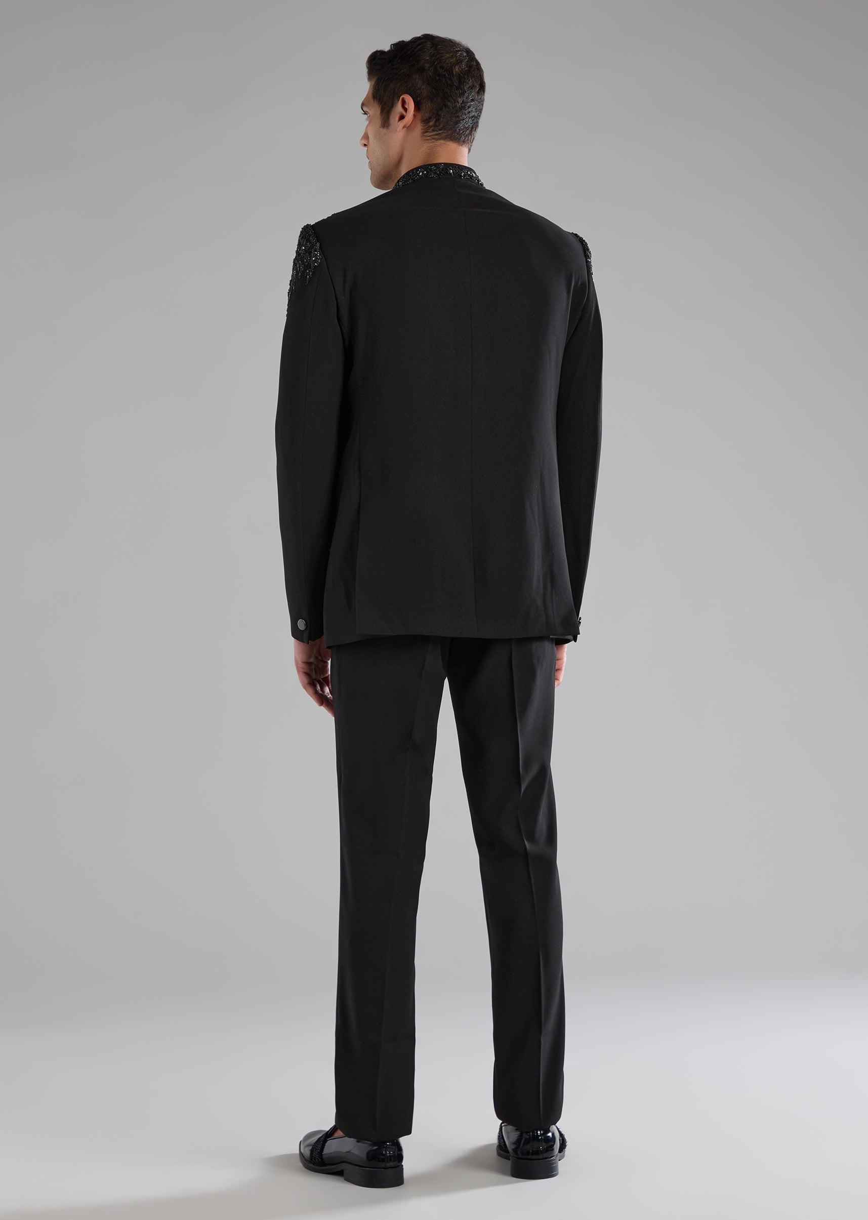 Black Rayon Jodhpuri Pant Set with Zardozi Work