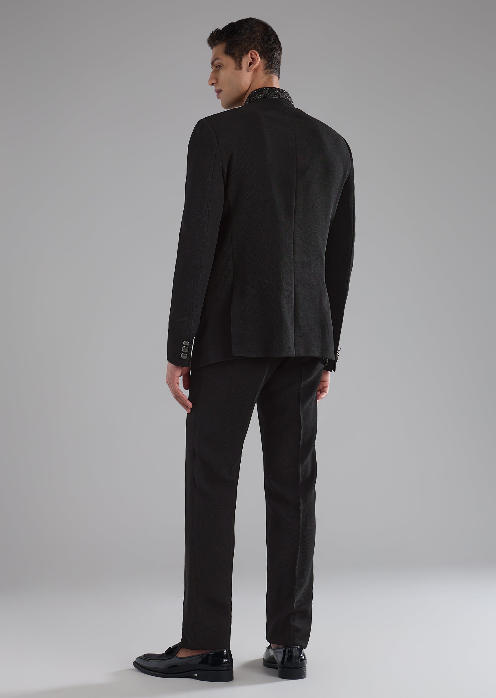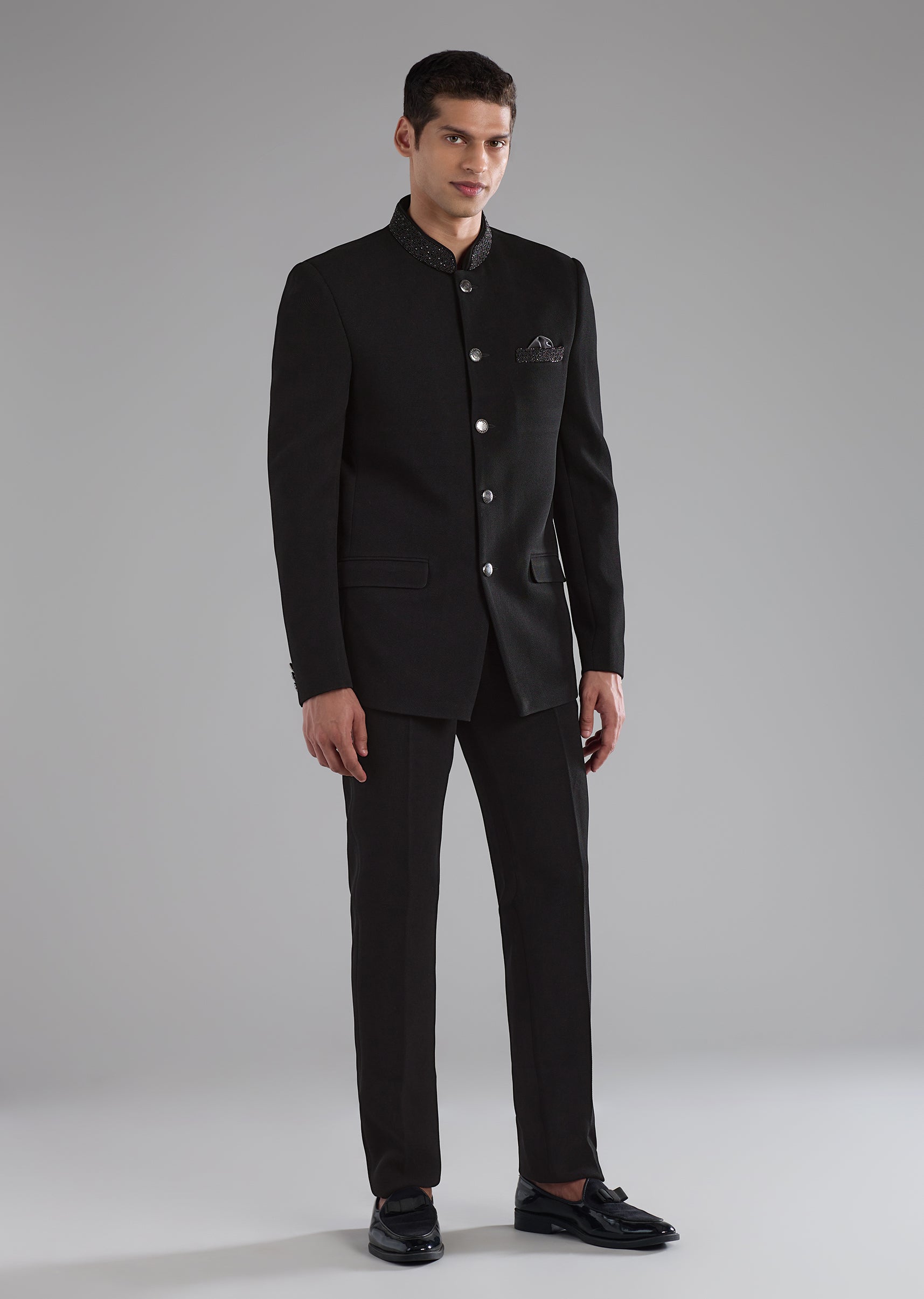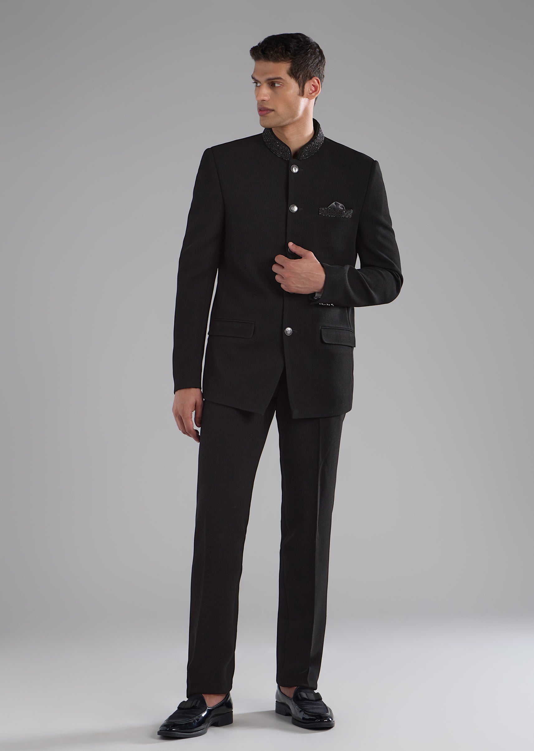 Black Rayon Jodhpuri Set with Bead Embroidery