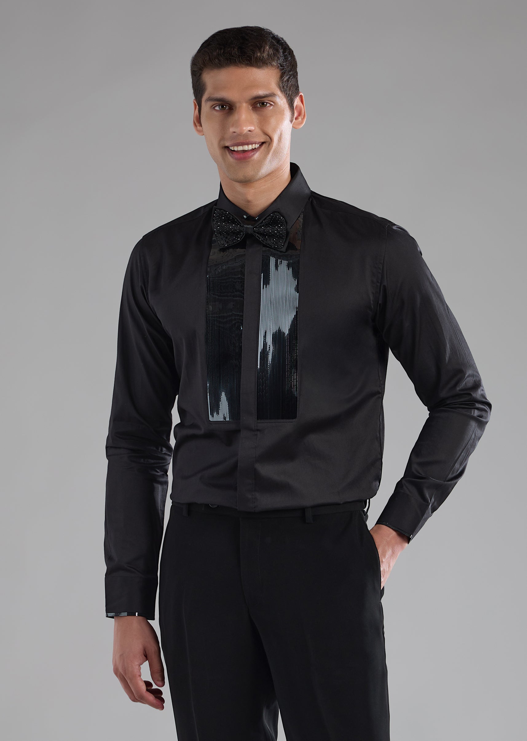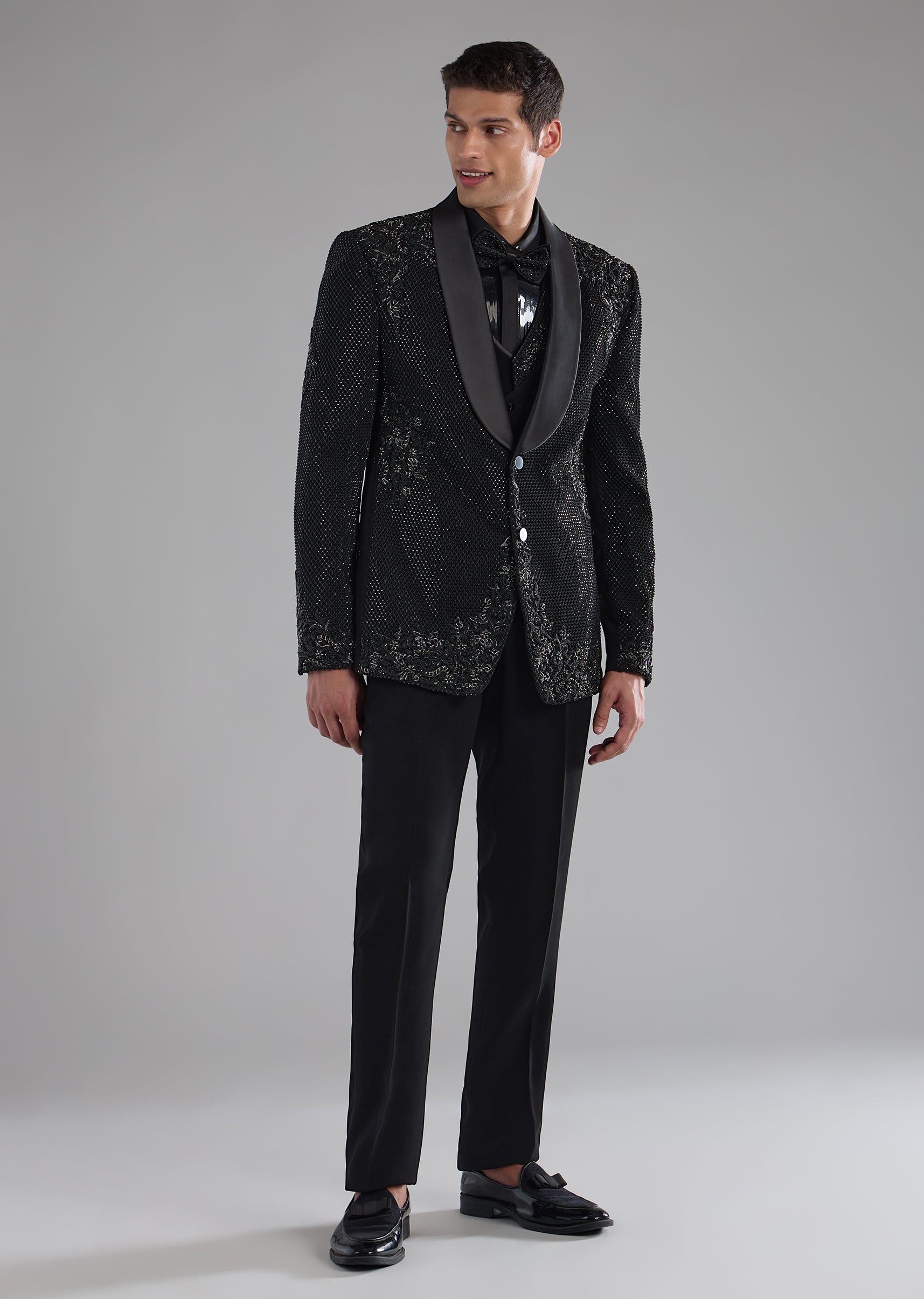 Designed to make a refined statement, this polyester tuxedo set brings together elegance and festive detailing. The tuxedo is embellished with intricate thread and resham embroidery, highlighted with bead and... More Product Details