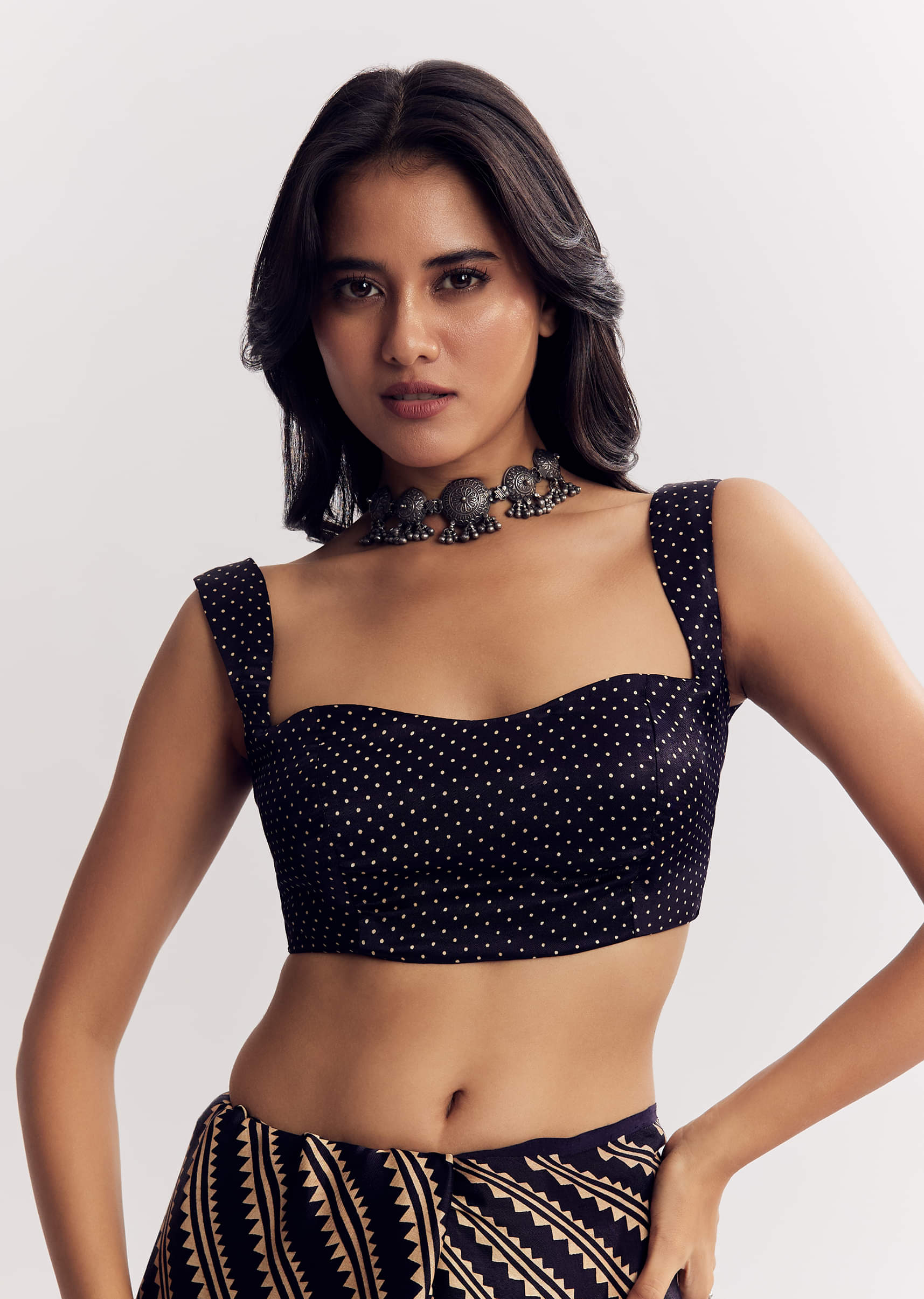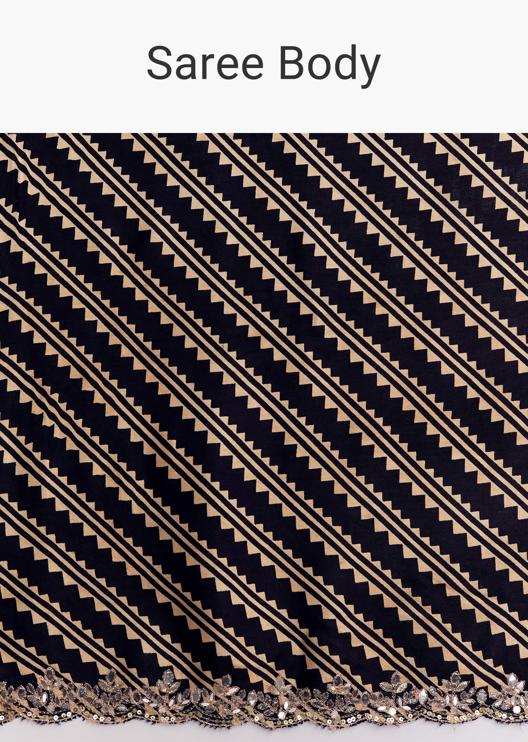 Black Satin Saree With Lehariya Print And Mirror Sequins Zari Embroidery