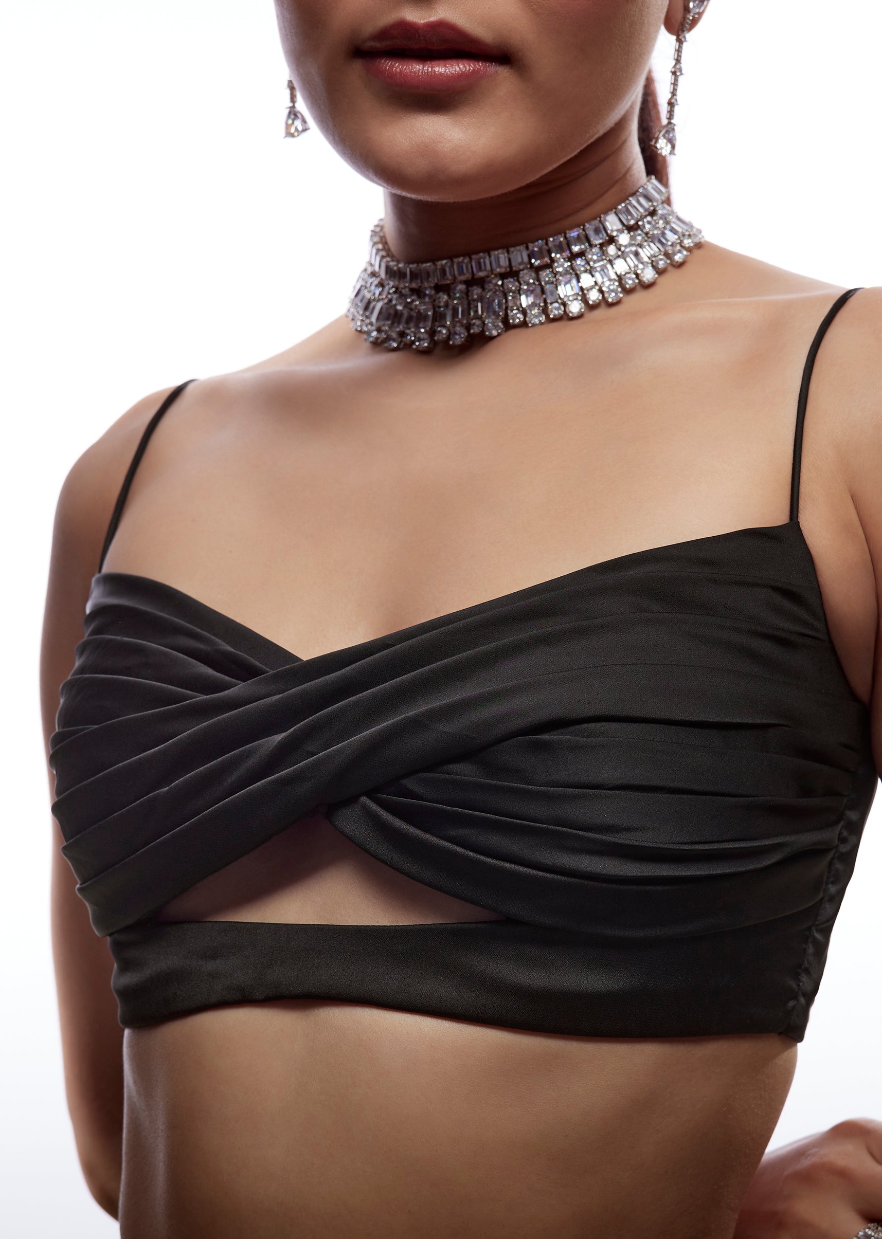 Crafted in smooth satin, this sleeveless blouse features a pleated twisted front and a flattering sweetheart neckline. Finished with a back hook-eye closure, it’s a versatile option that elevates everything from minimal sarees to embellished drapes. Awarded as the Most Trusted Brand, we're delivering styles you love,