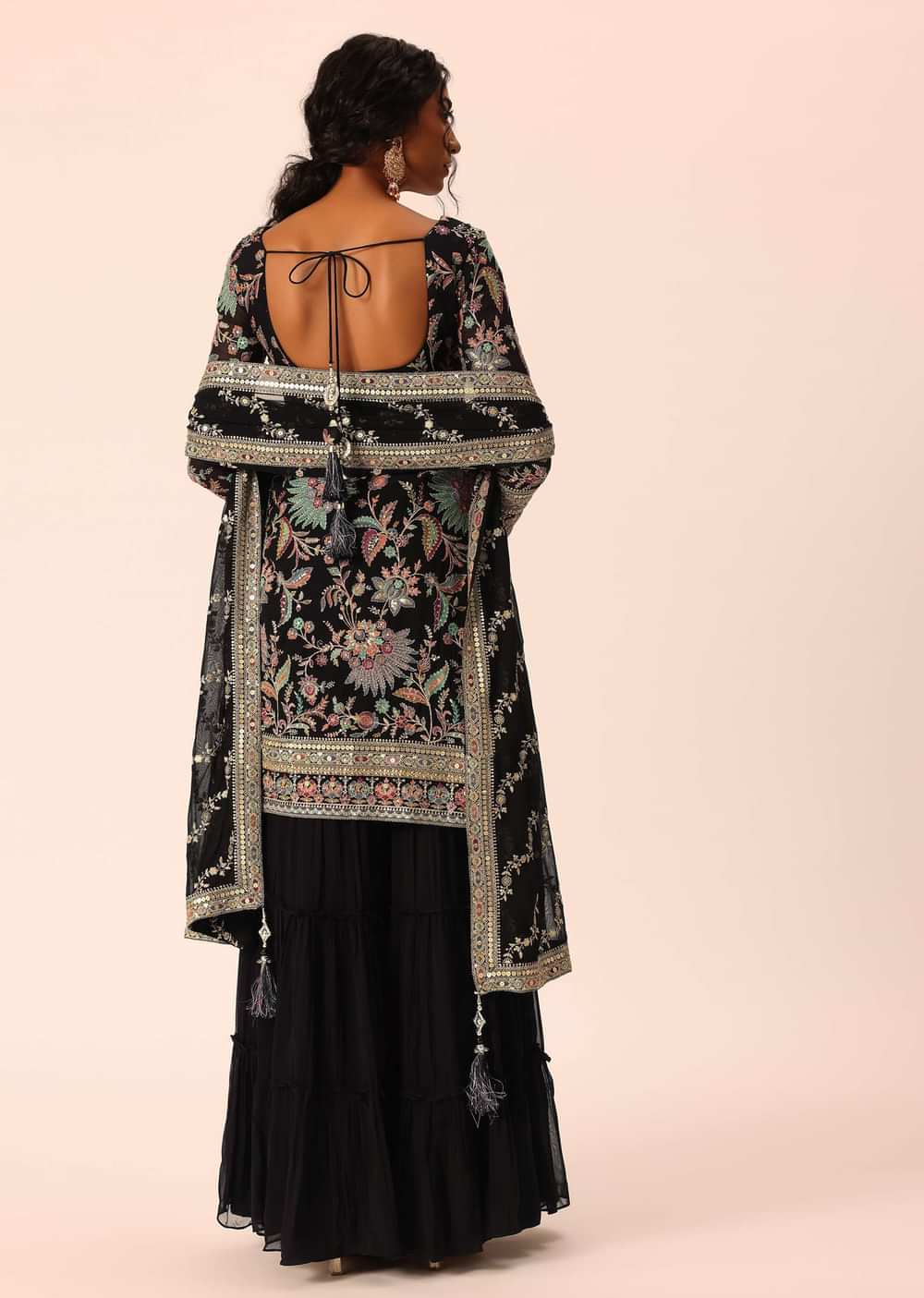 - Paired with sharara pants and a tassel dupatta, this ensemble will light up all your celebratory occasions.
