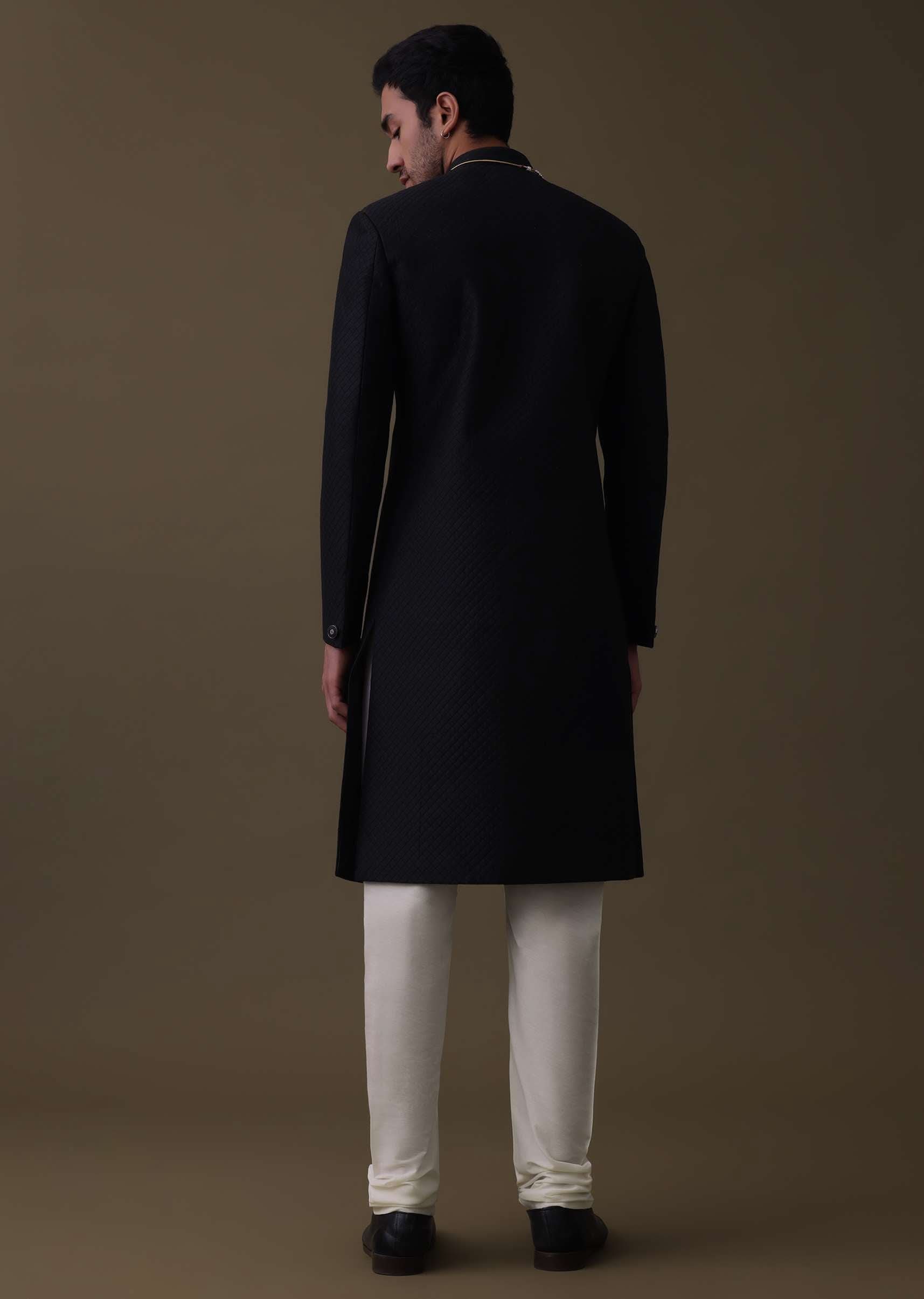 - Introducing our sophisticated black sherwani set, the perfect outfit for the groom to be.