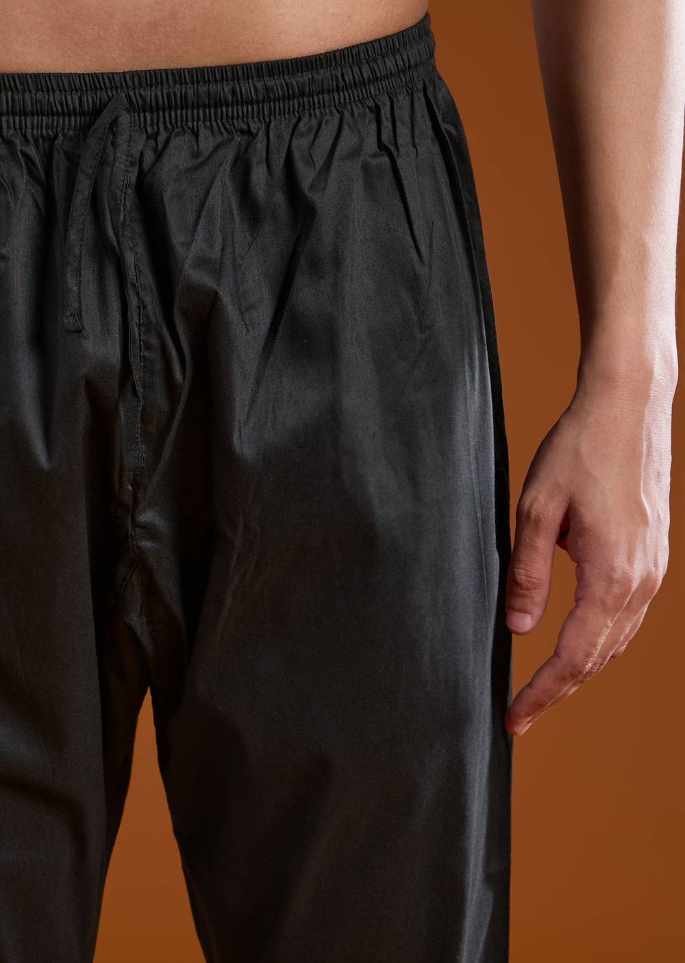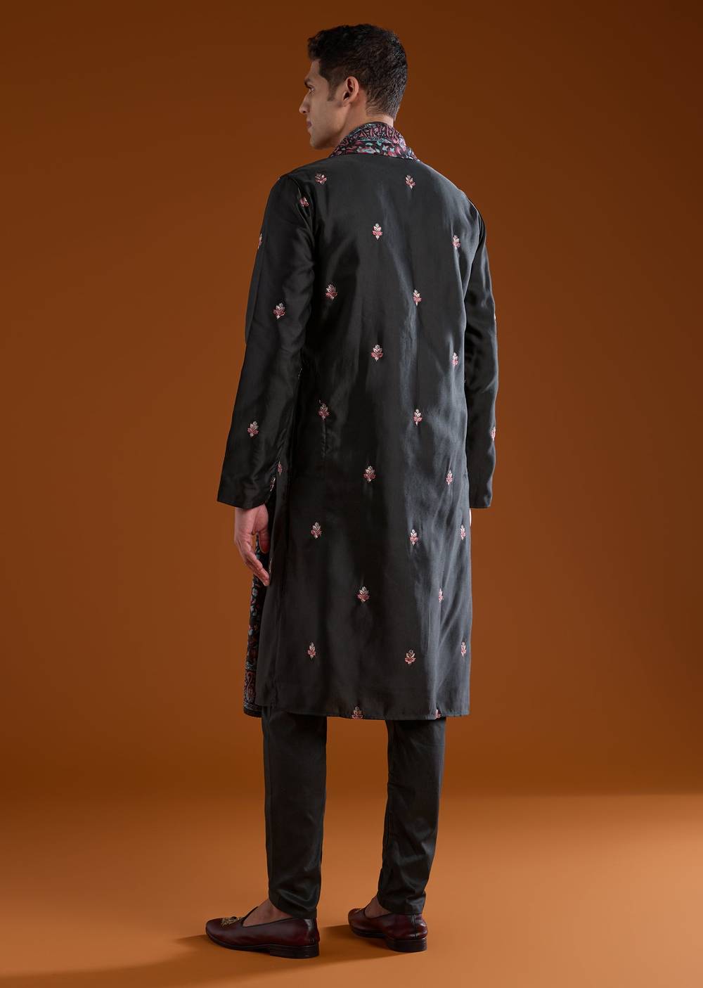 Black Silk Embroidered Mens Kurta Pant Set with Dupatta