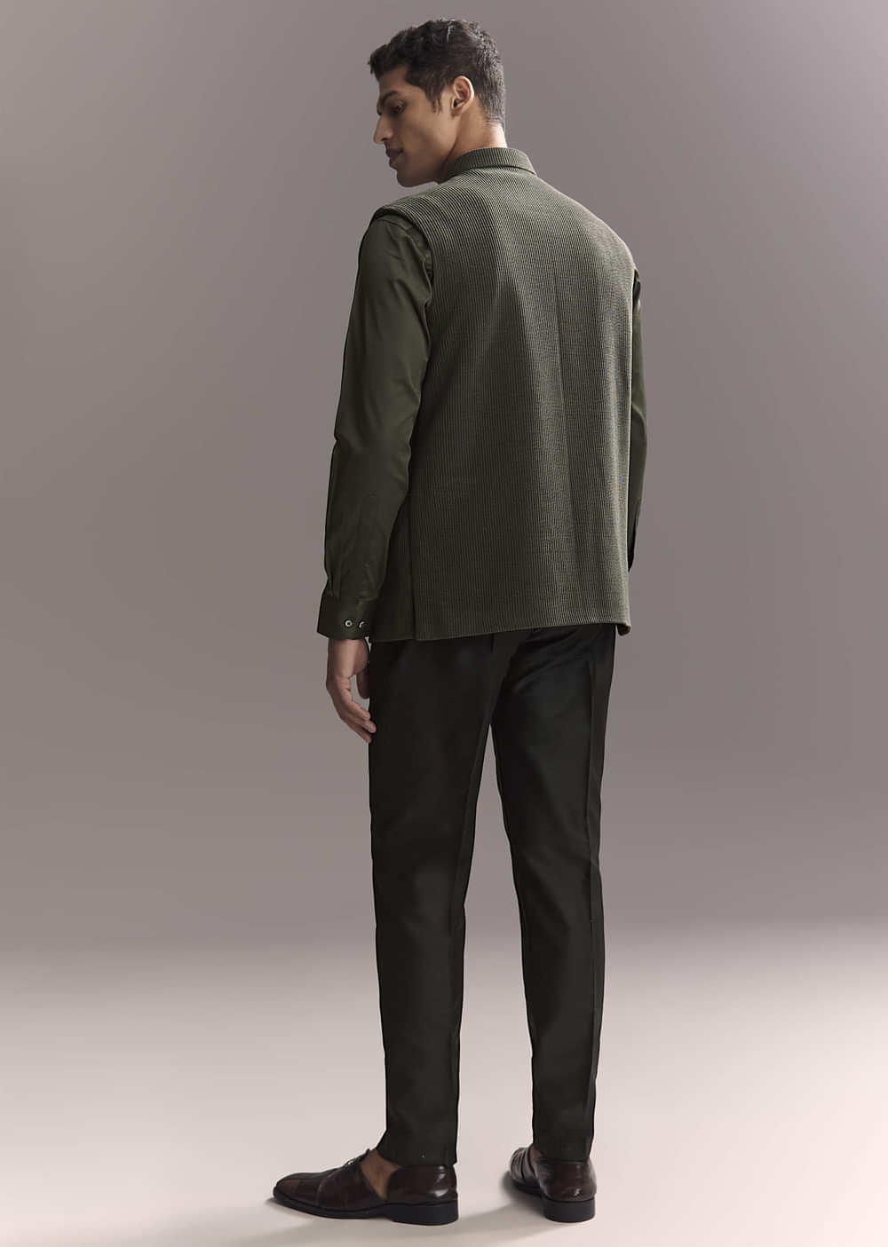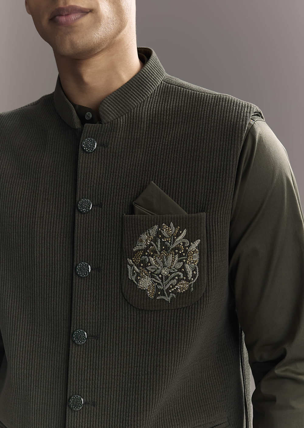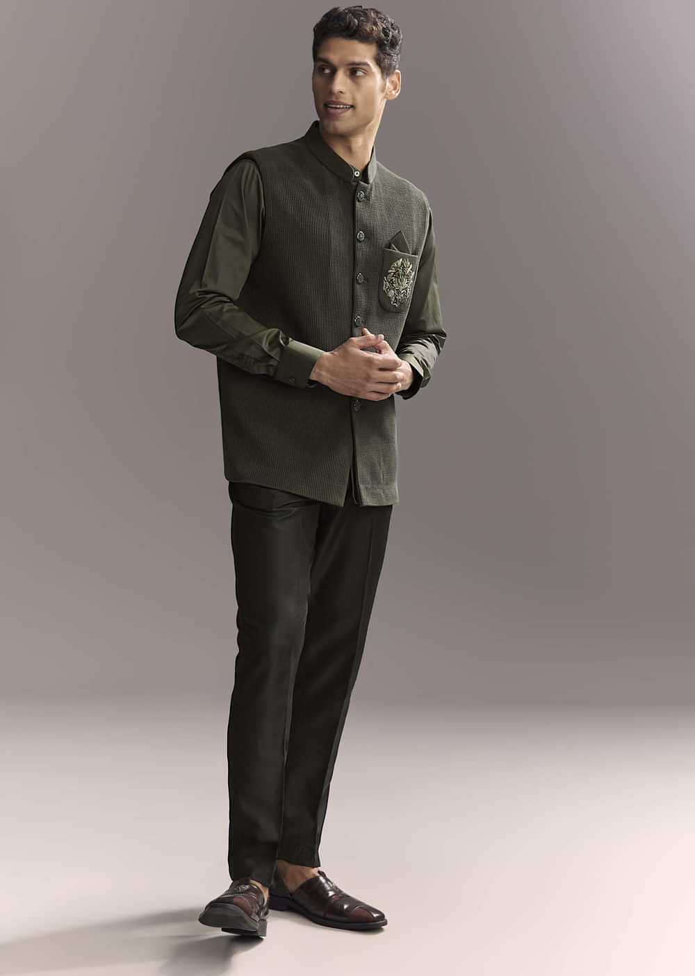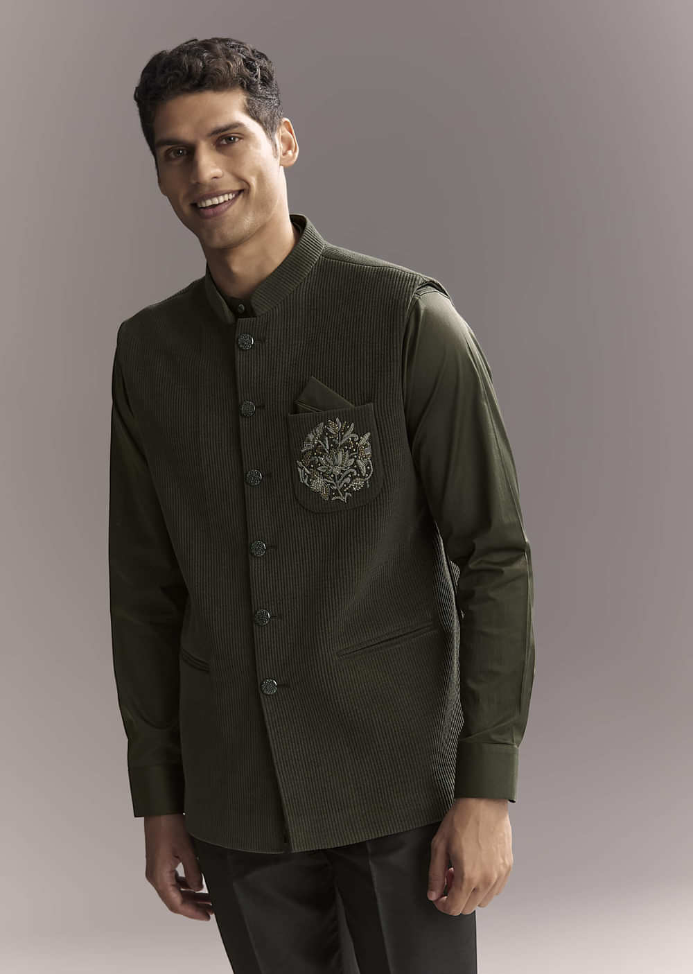 Fit Tips:The jacket defines the shoulders and skims the torso, while the men’s kurta beneath falls straight and breathable for easy movement.