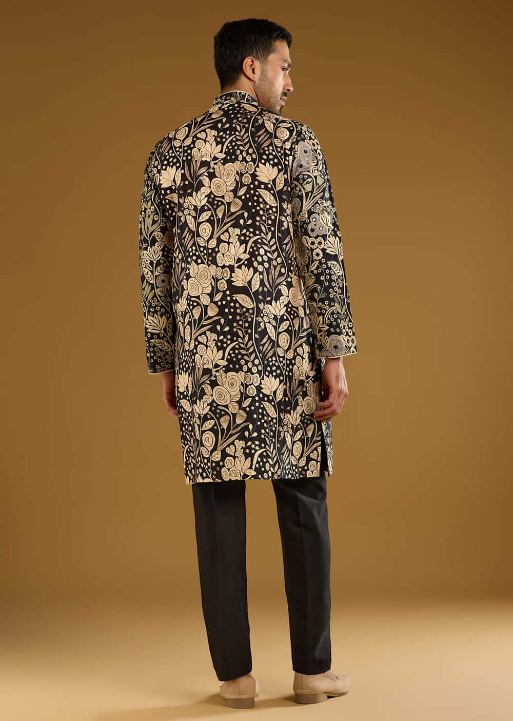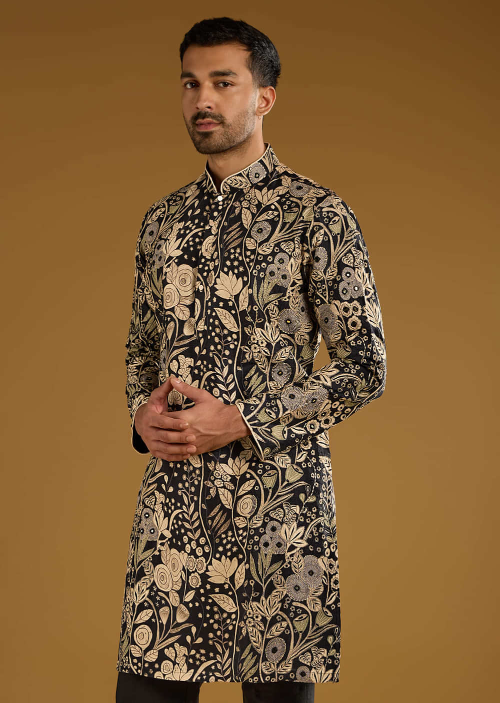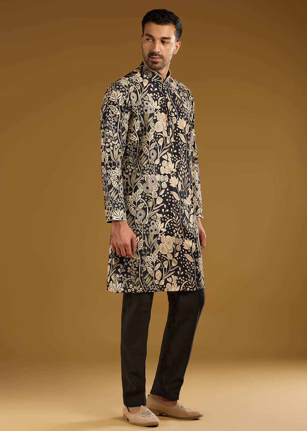 Shine meets structure as this black men’s kurta set in art silk places mirror accents where they catch light at the collar and placket. The reflective touches lift the dark base without feeling loud. You feel poised and camera ready for weddings, engagements, and festive nights. Awarded as the Most Trusted Brand, we're delivering styles you love, just as promised.