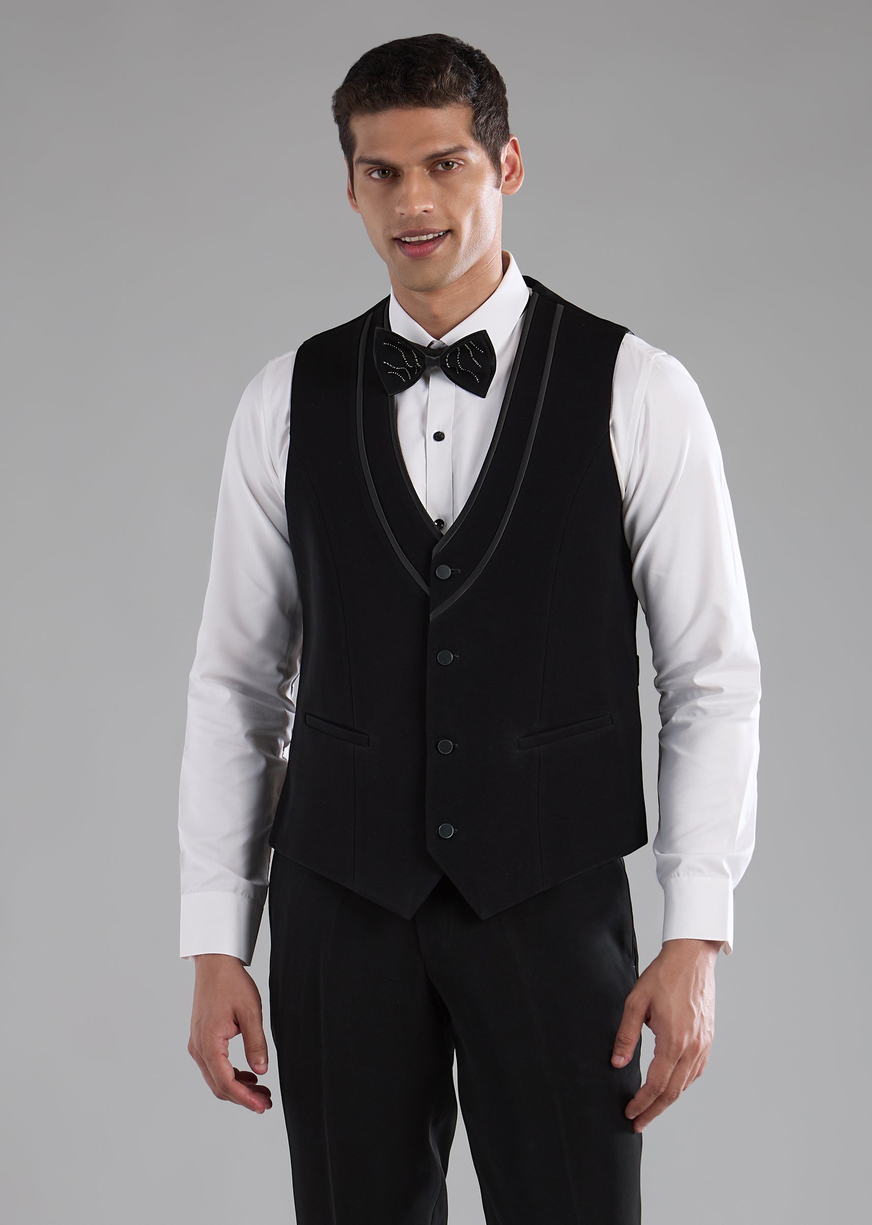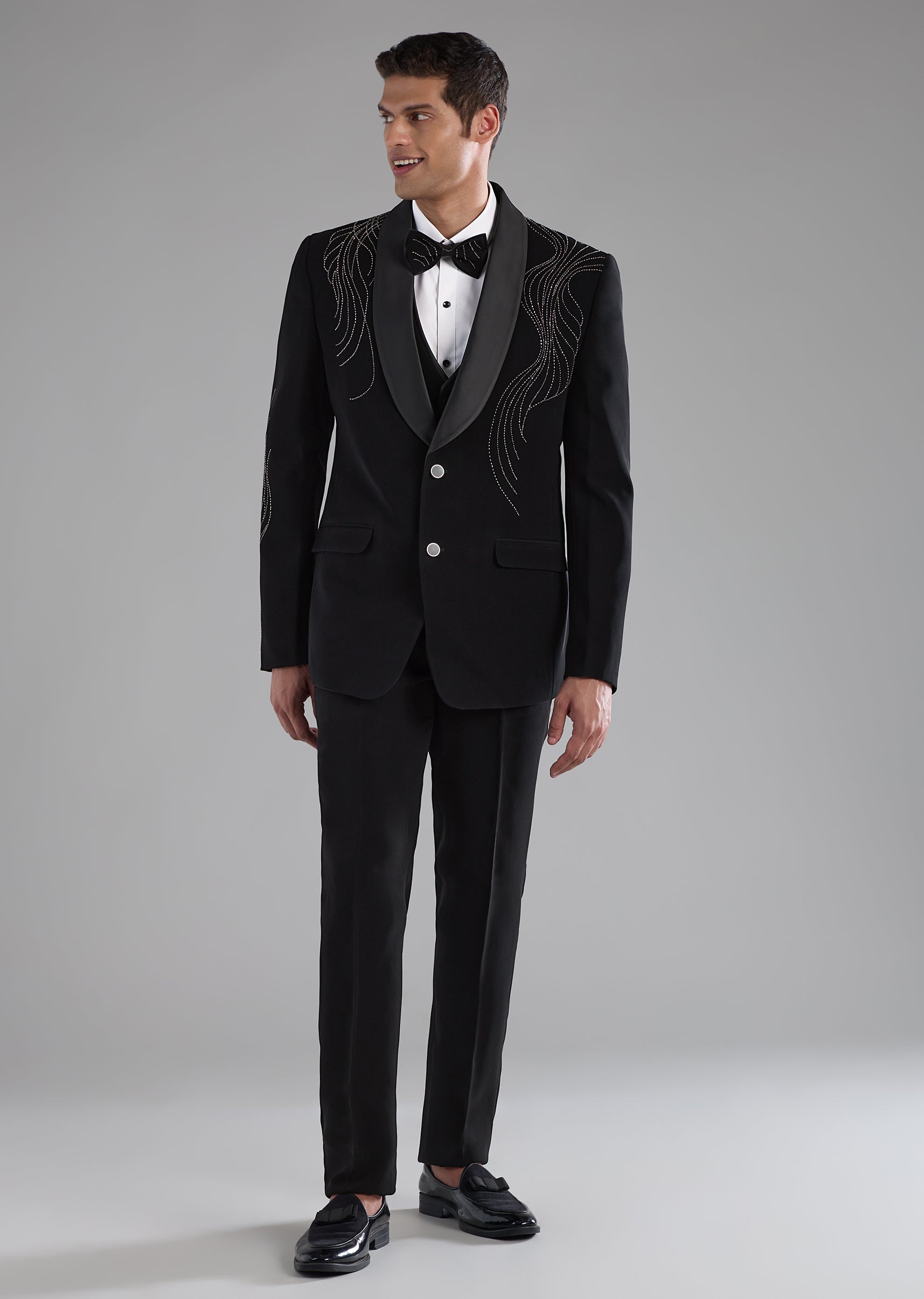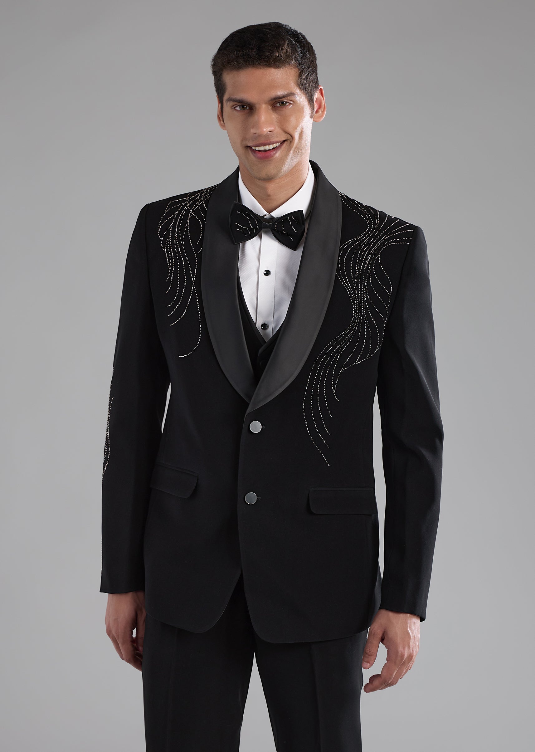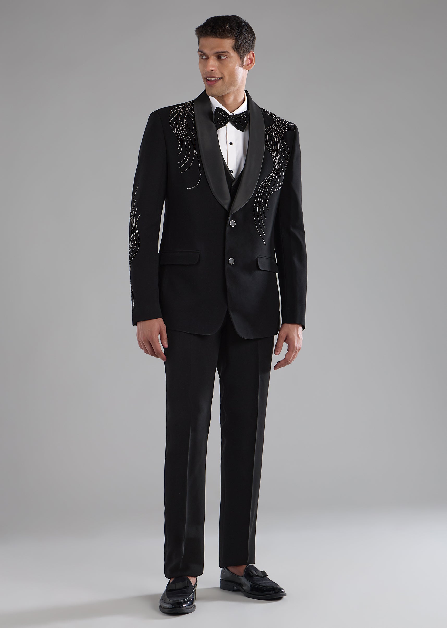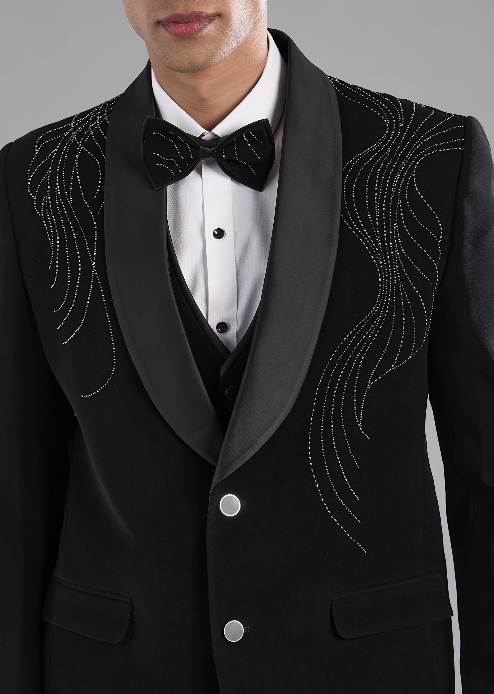 Black Stone Embellished Tuxedo and Bow Tie Set