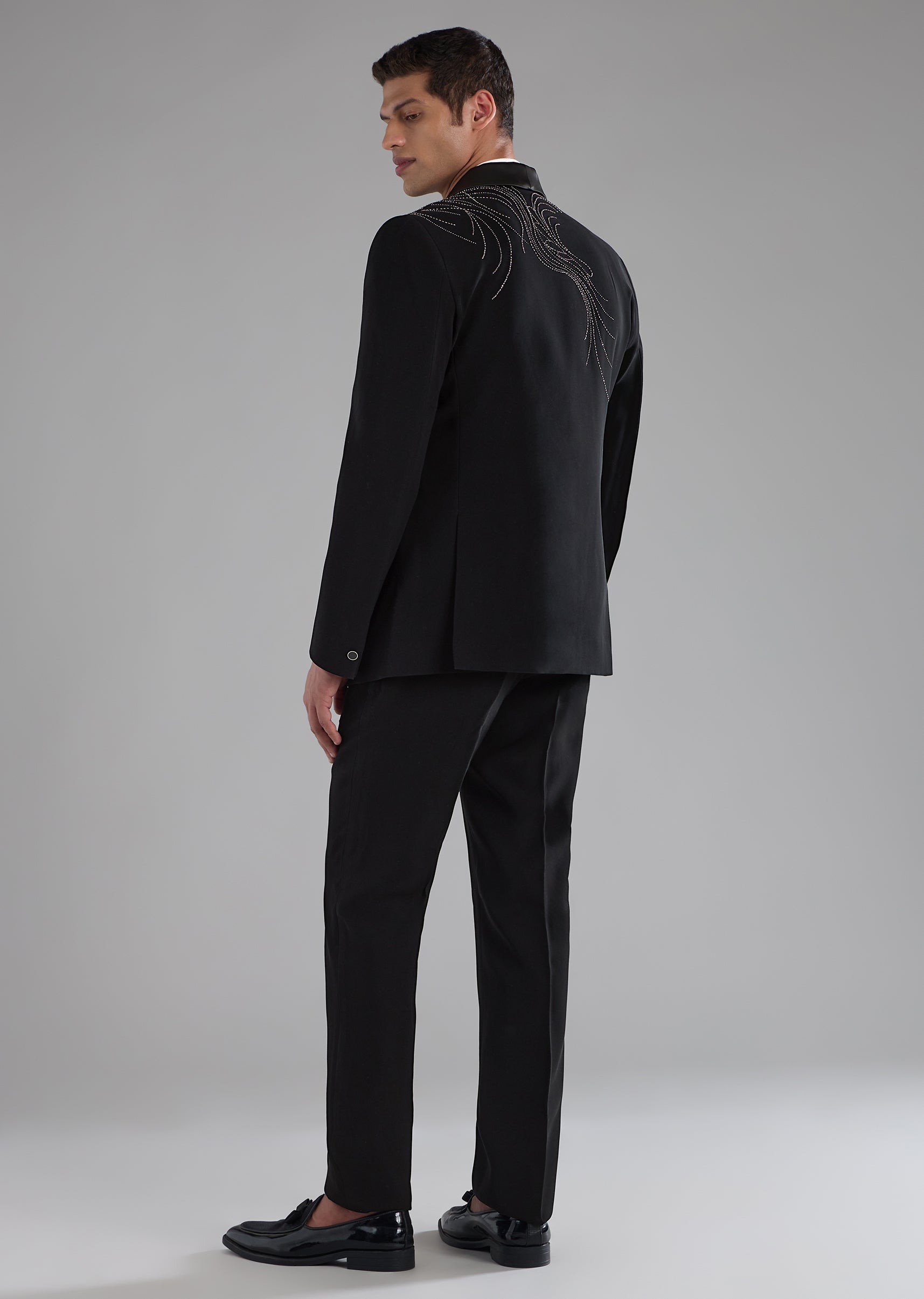 Sharp tailoring meets subtle glamour in this polyester tuxedo set designed for standout occasions. Accented with refined stone detailing, the ensemble brings just the right amount of sparkle to its... More Product Details