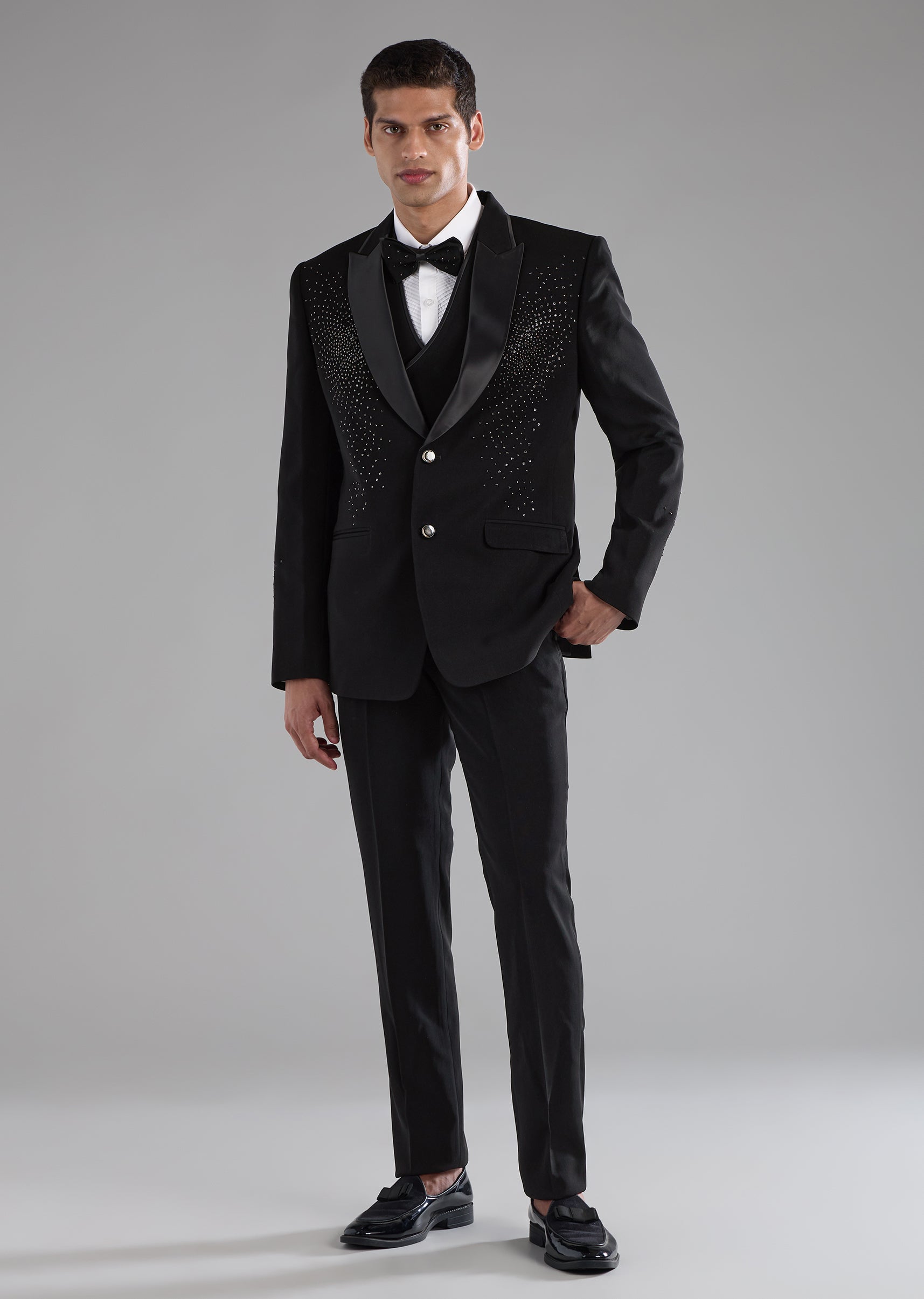 Black Stone Work Tuxedo, Shirt and Bow Set