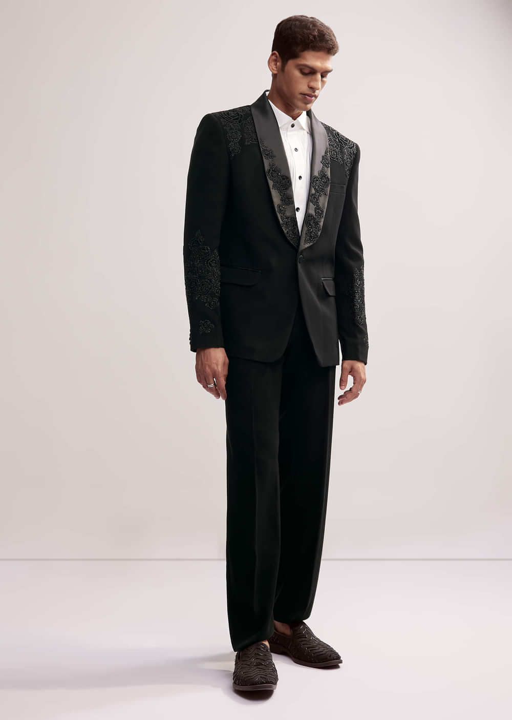 Black Tuxedo For Men With Cut Work Shawl Collar