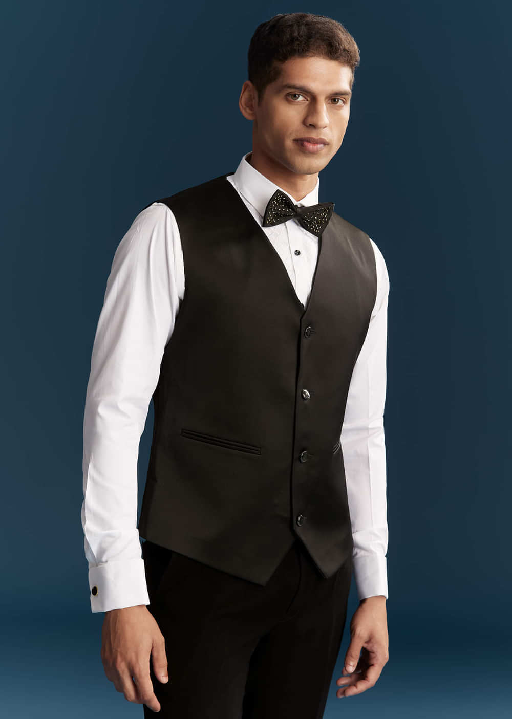 Pack Contains: Blazer, Waistcoat, Shirt, Bow, Trouser.