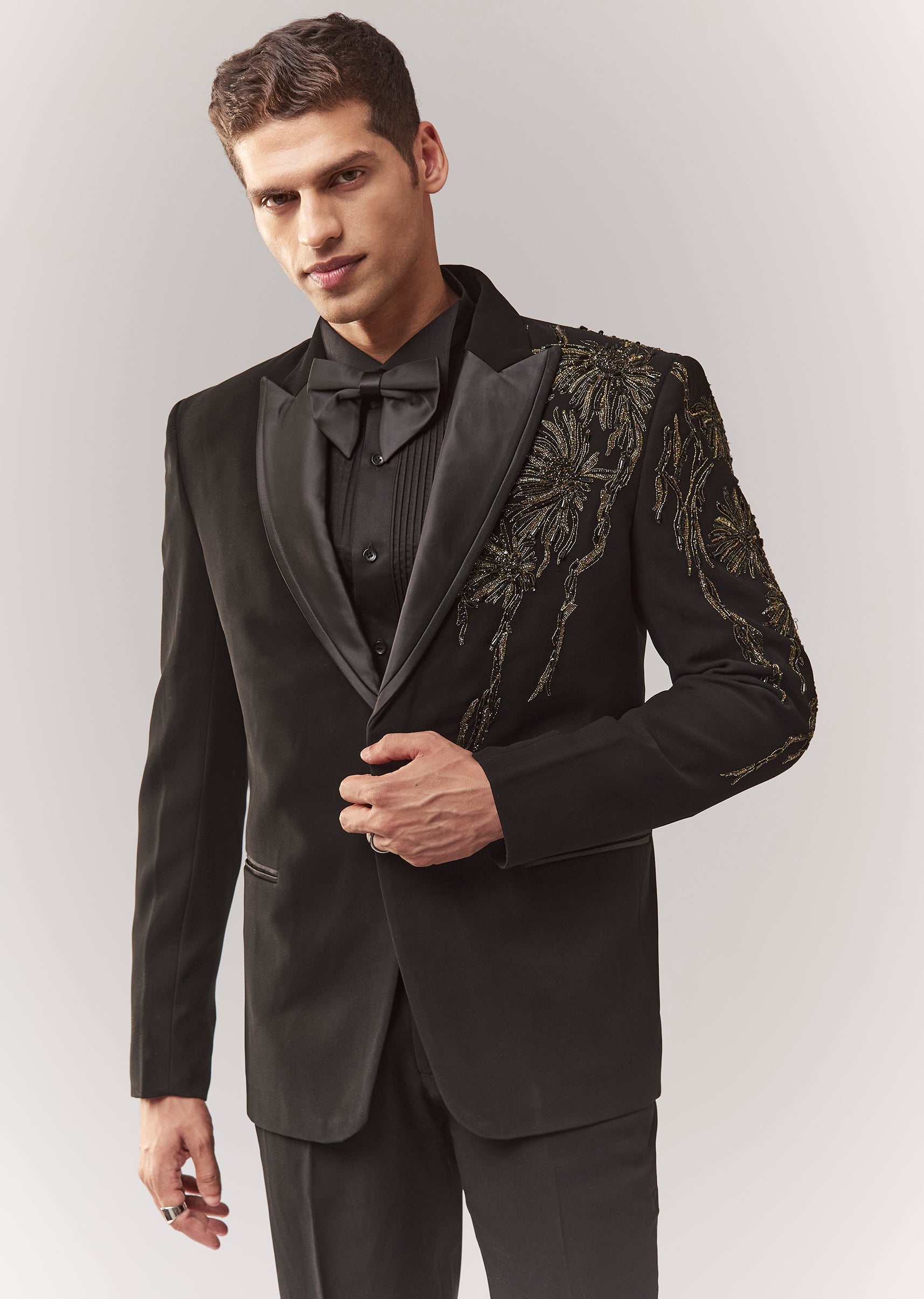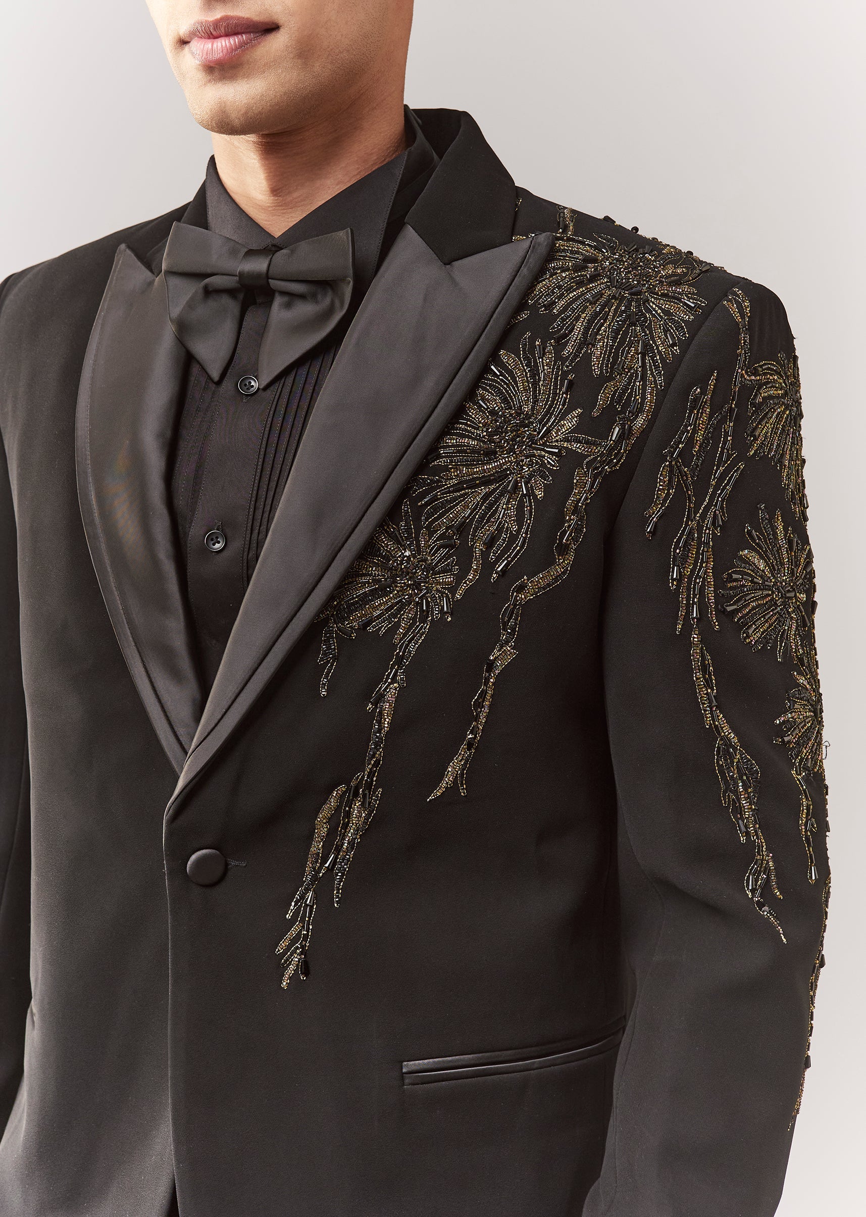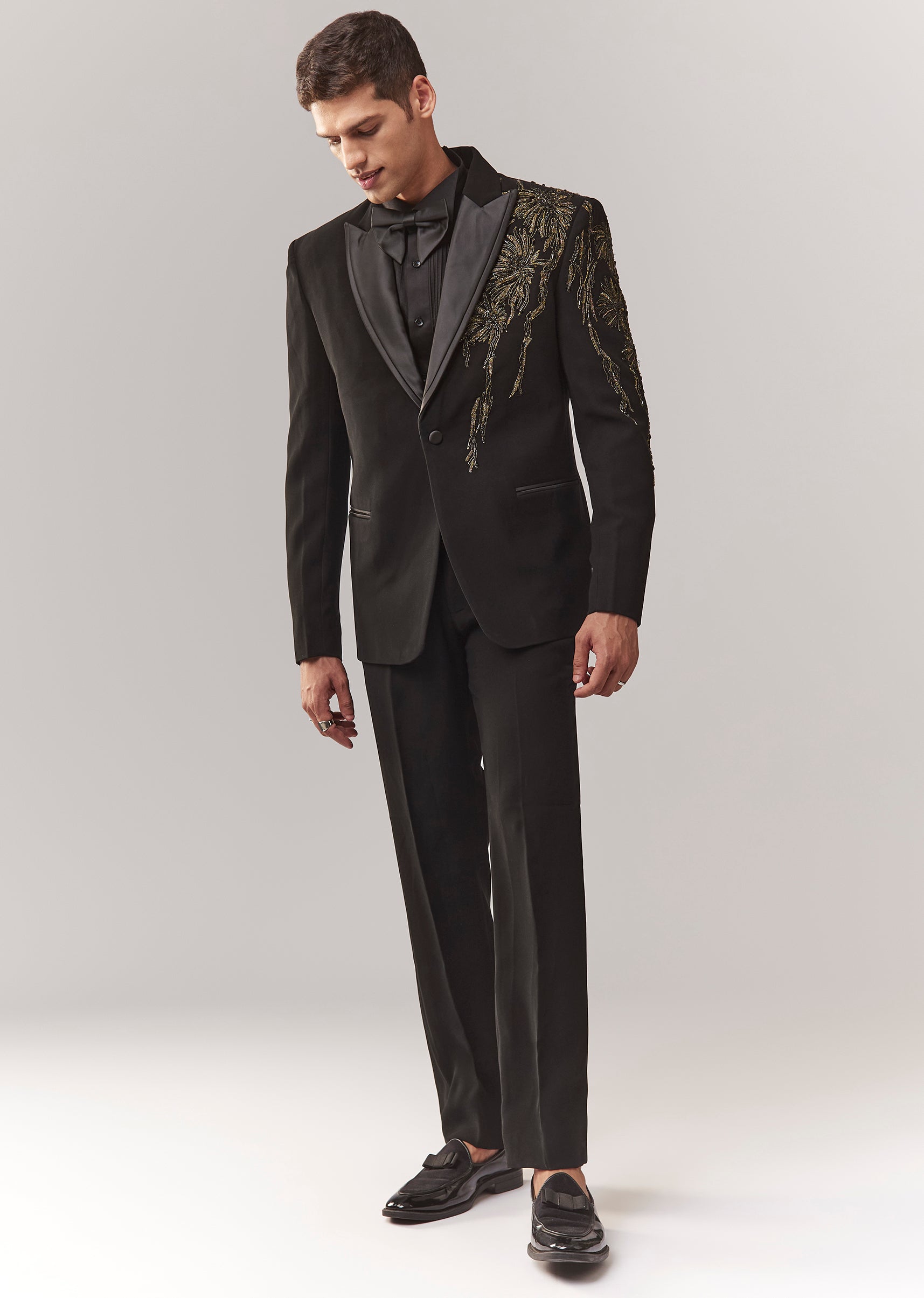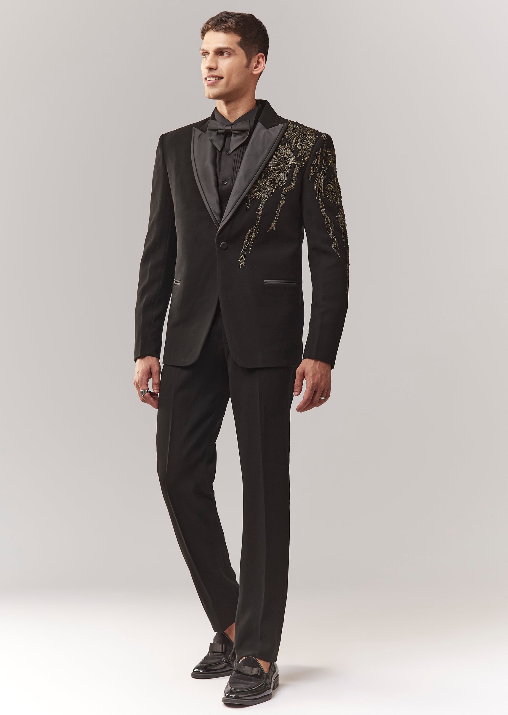 Black Tuxedo Set With Dori Work Cutdana And Stone