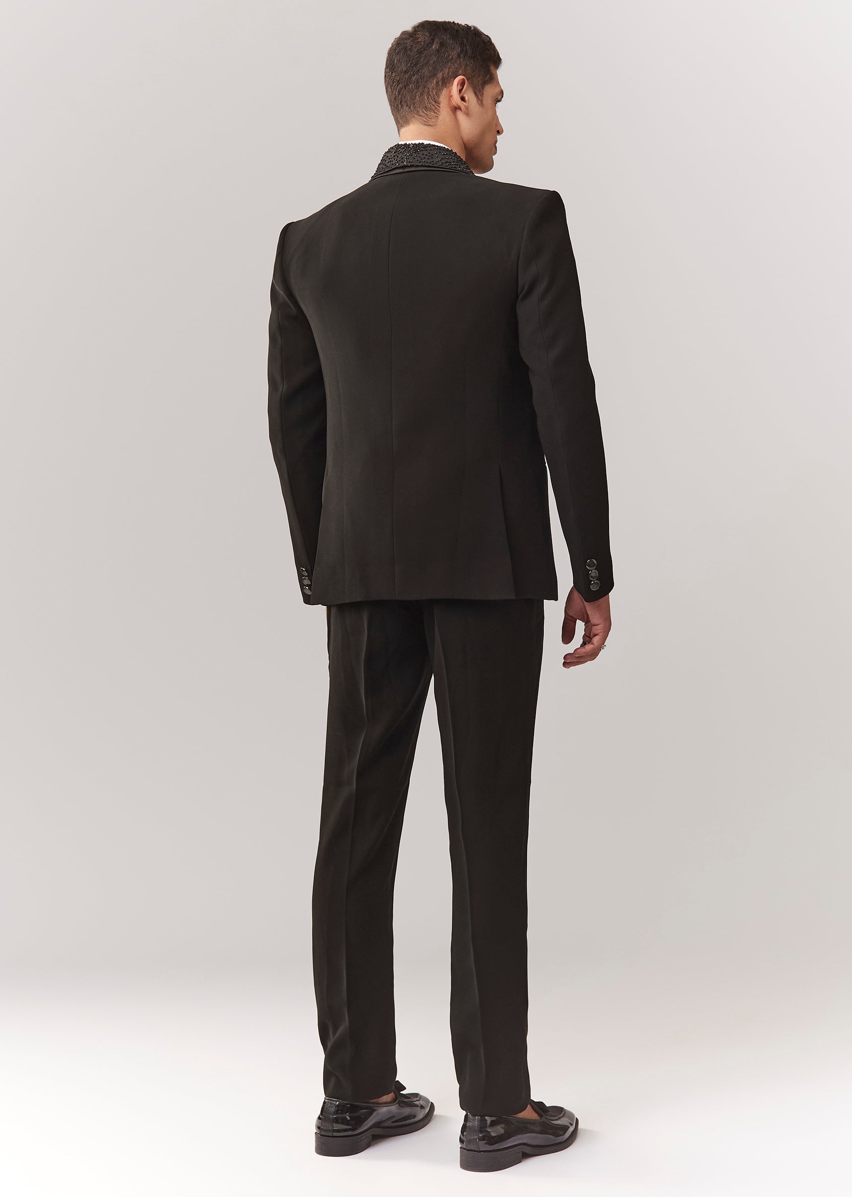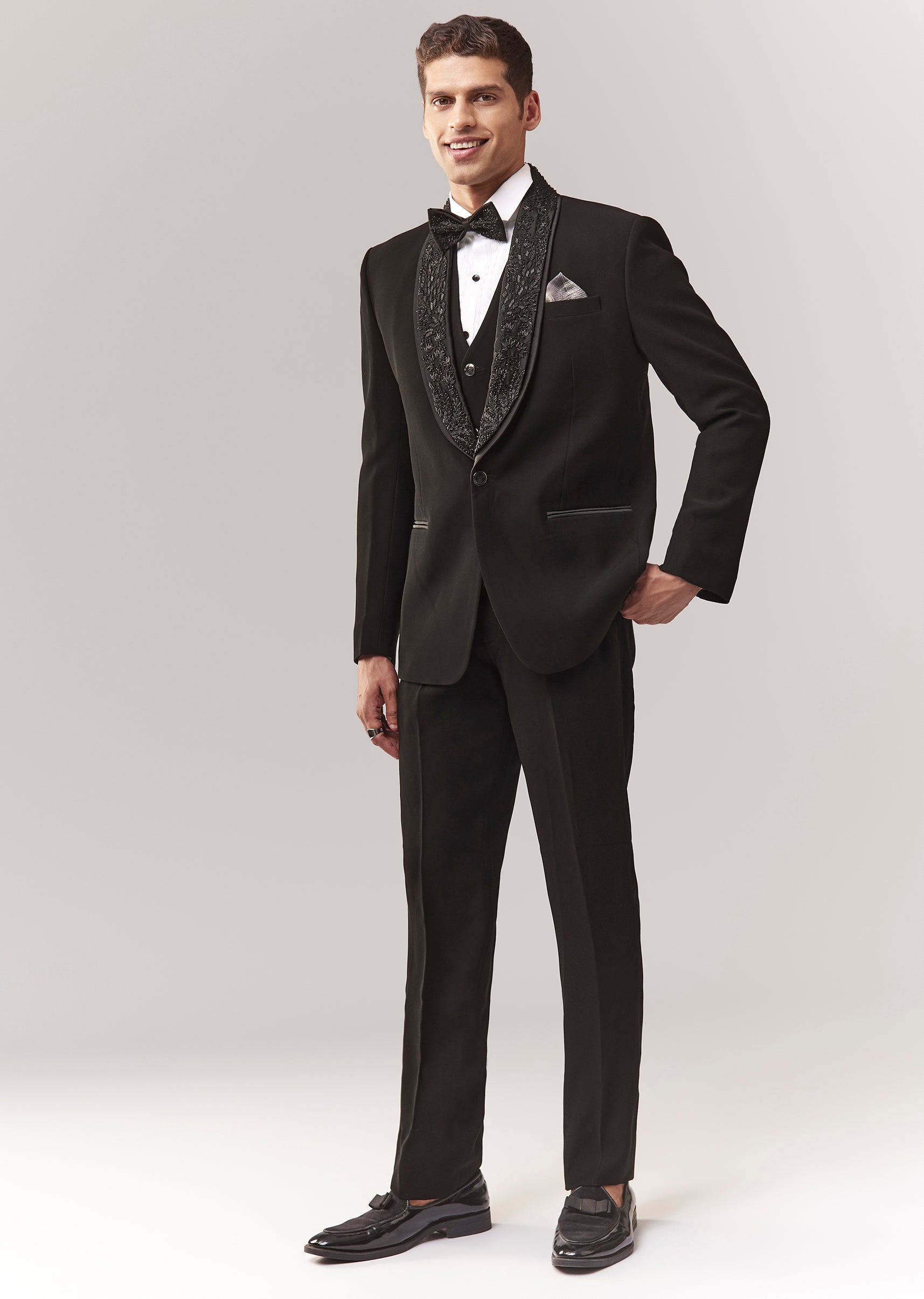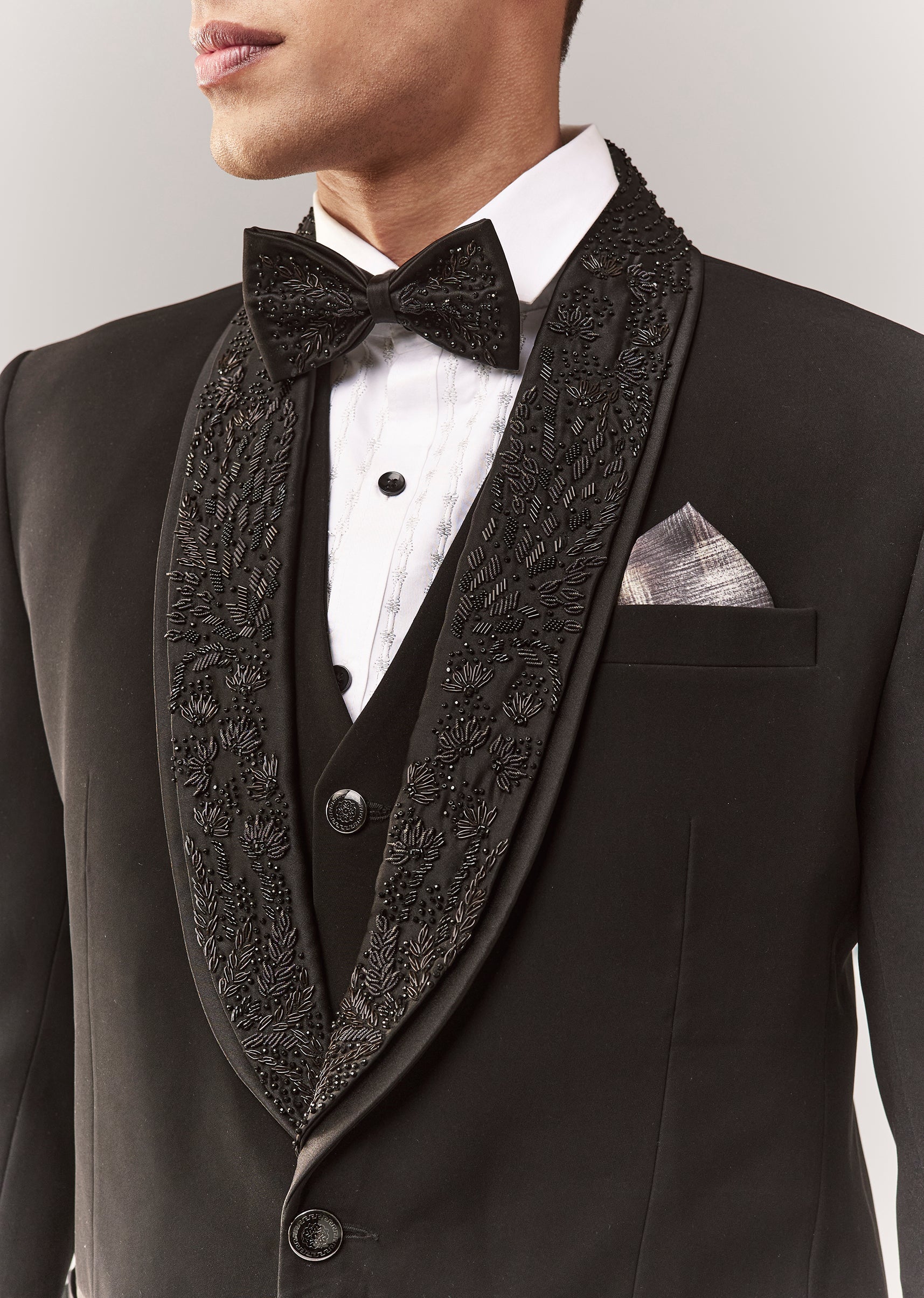 Black Tuxedo Set With Waistcoat And Cutdana Work