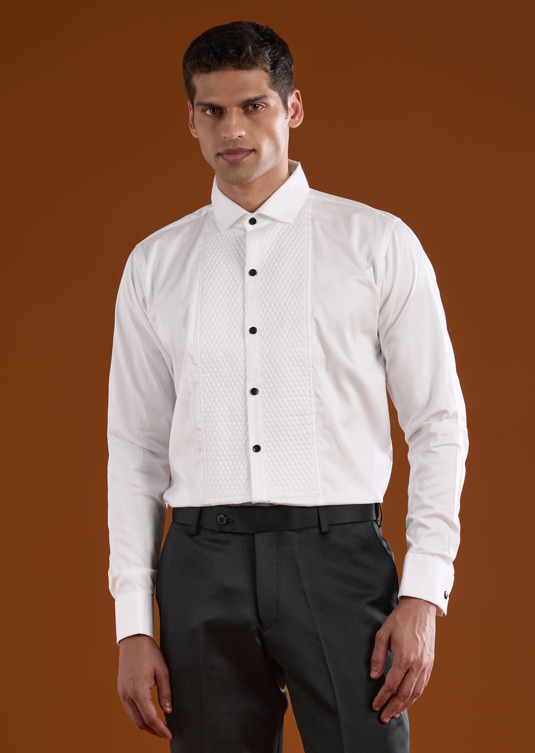 Pair it with patent leather shoes and a crisp pocket square for a sharp formal finish.