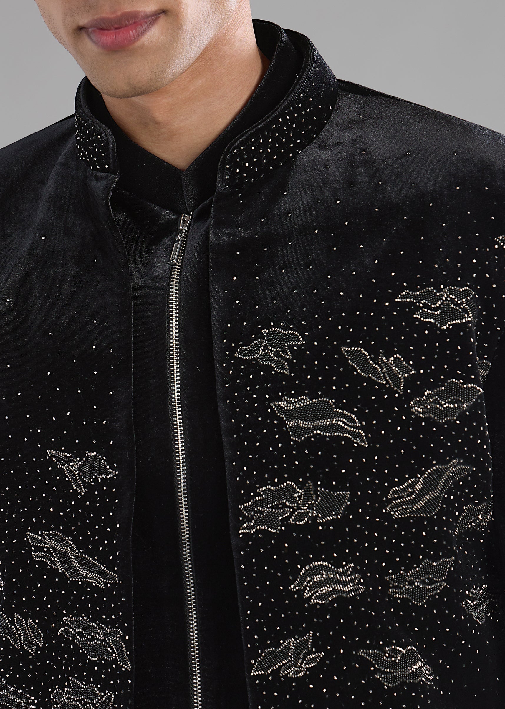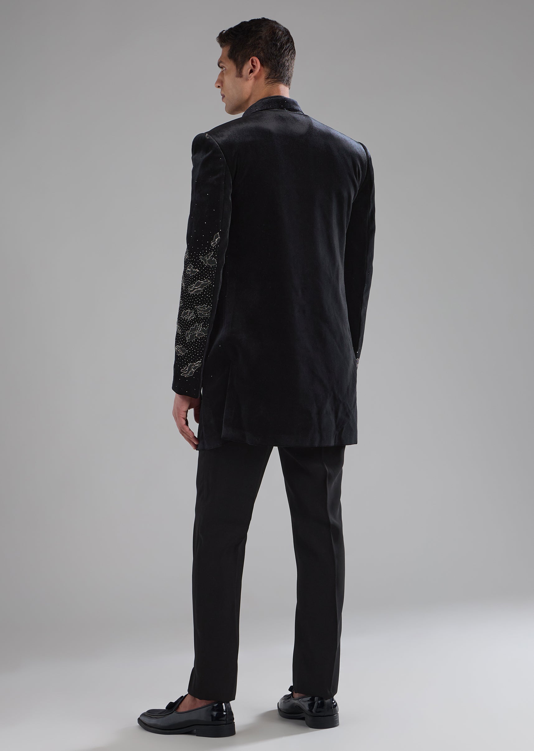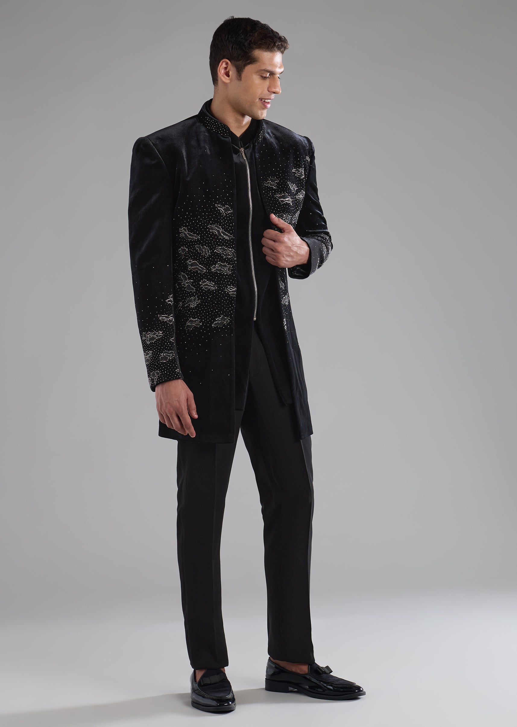 Black Velvet Indowestern Jacket Set with Bead Work