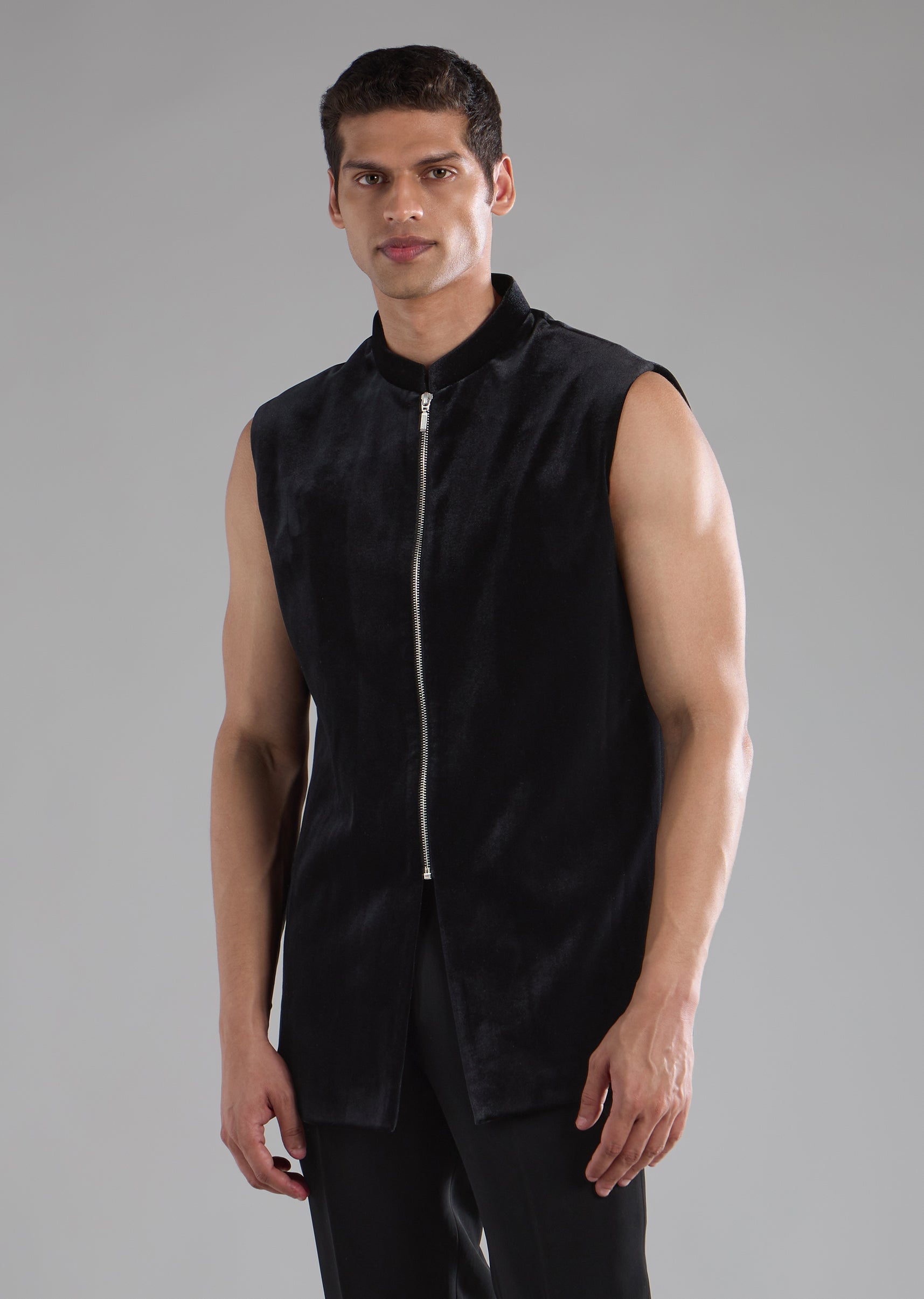 Refined opulence meets modern ethnic styling in this velvet indo western kurta set. Embellished with stone and bead detailing, the rich velvet fabric adds depth and a subtle festive shimmer to the silhouette. Full sleeves and a mandarin collar bring a structured, elegant finish, while the front zip and button detailing add a contemporary edge. Paired with coordinated pants, this ensemble is ideal for weddings, festive evenings, and upscale celebrations.Awarded as the Most Trusted Brand, we're delivering styles you love, just as promised.