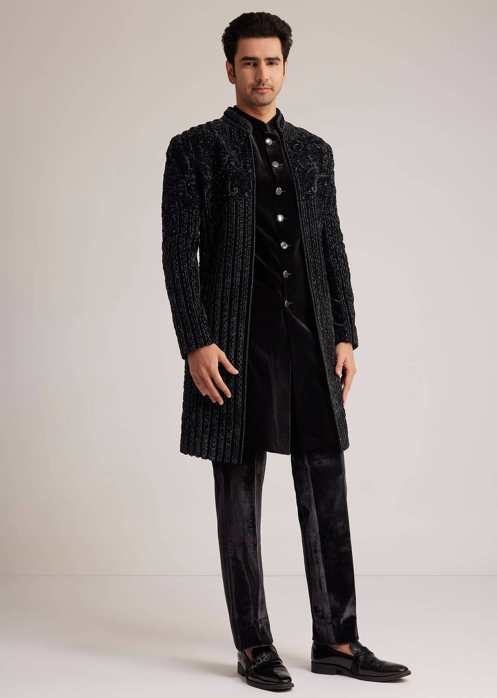 Black Velvet Indowestern Set With Cut Dana Embellishment