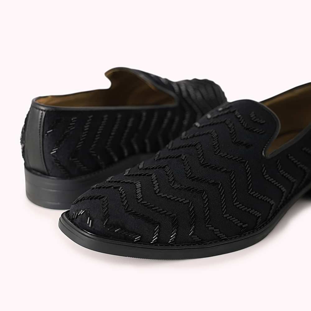 Black Velvet Juttis With Cutdana Work