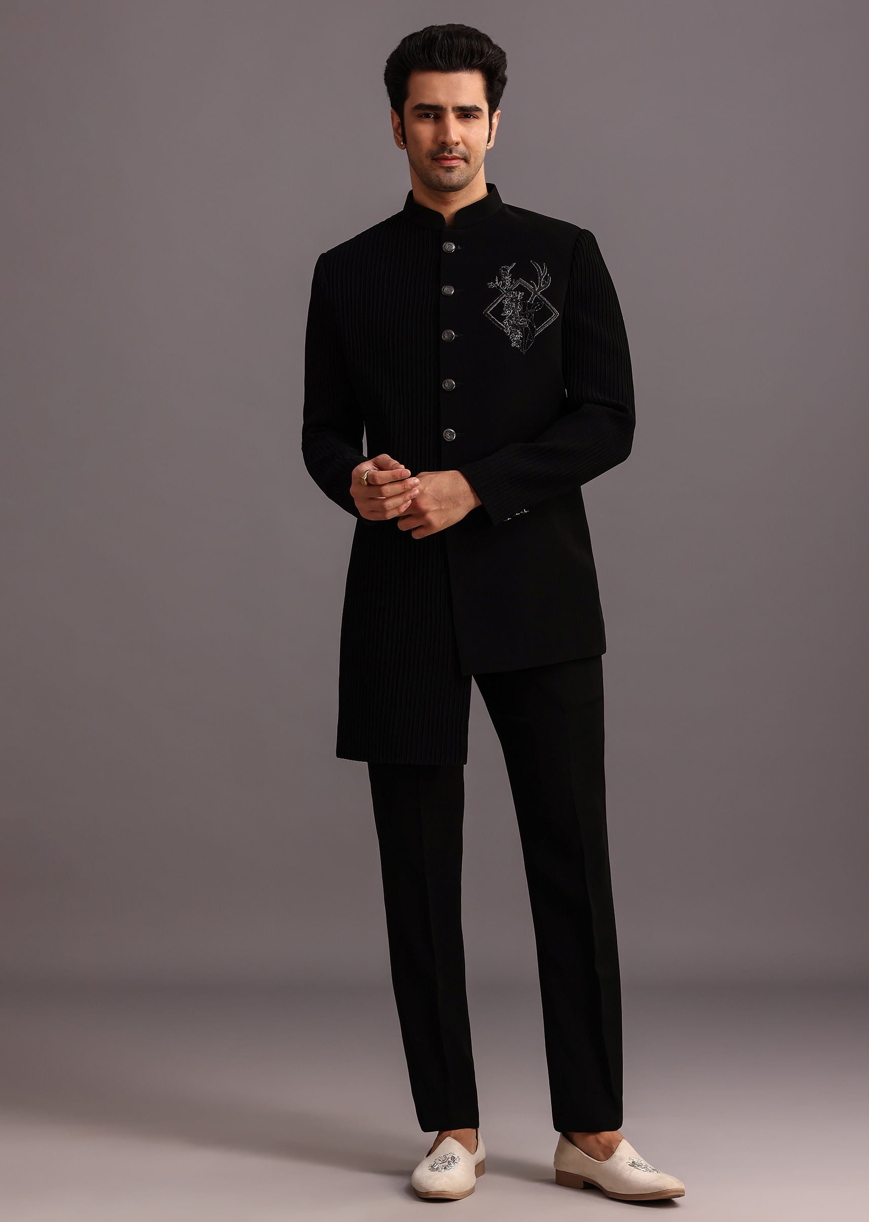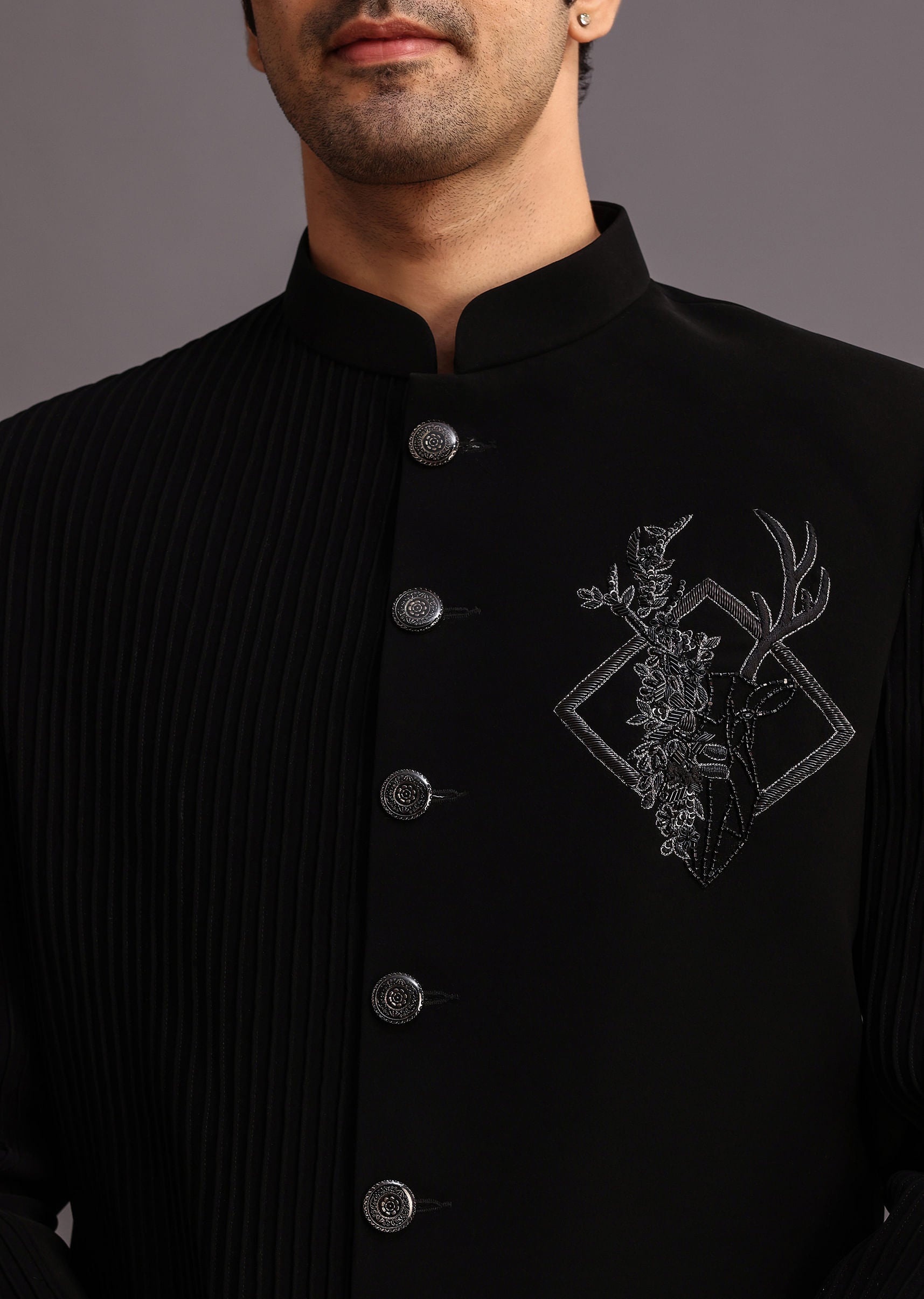 Black Zardosi Embroidered Indowestern Trouser Suit