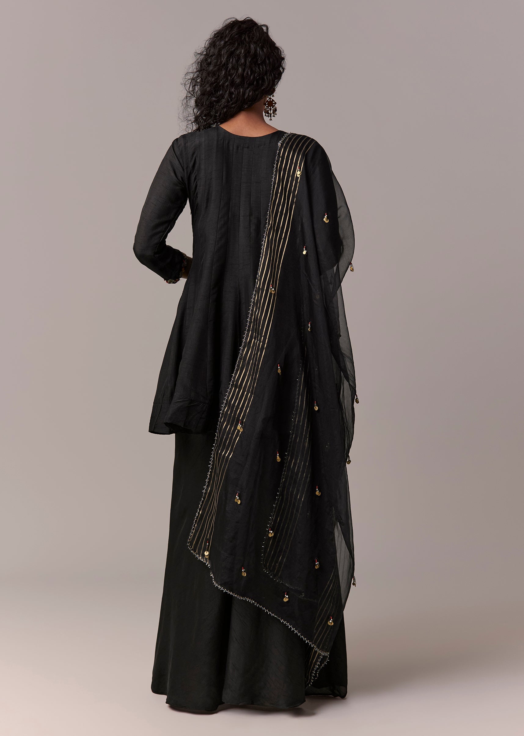 Black Zardosi & Thread Palazzo Set With Dupatta