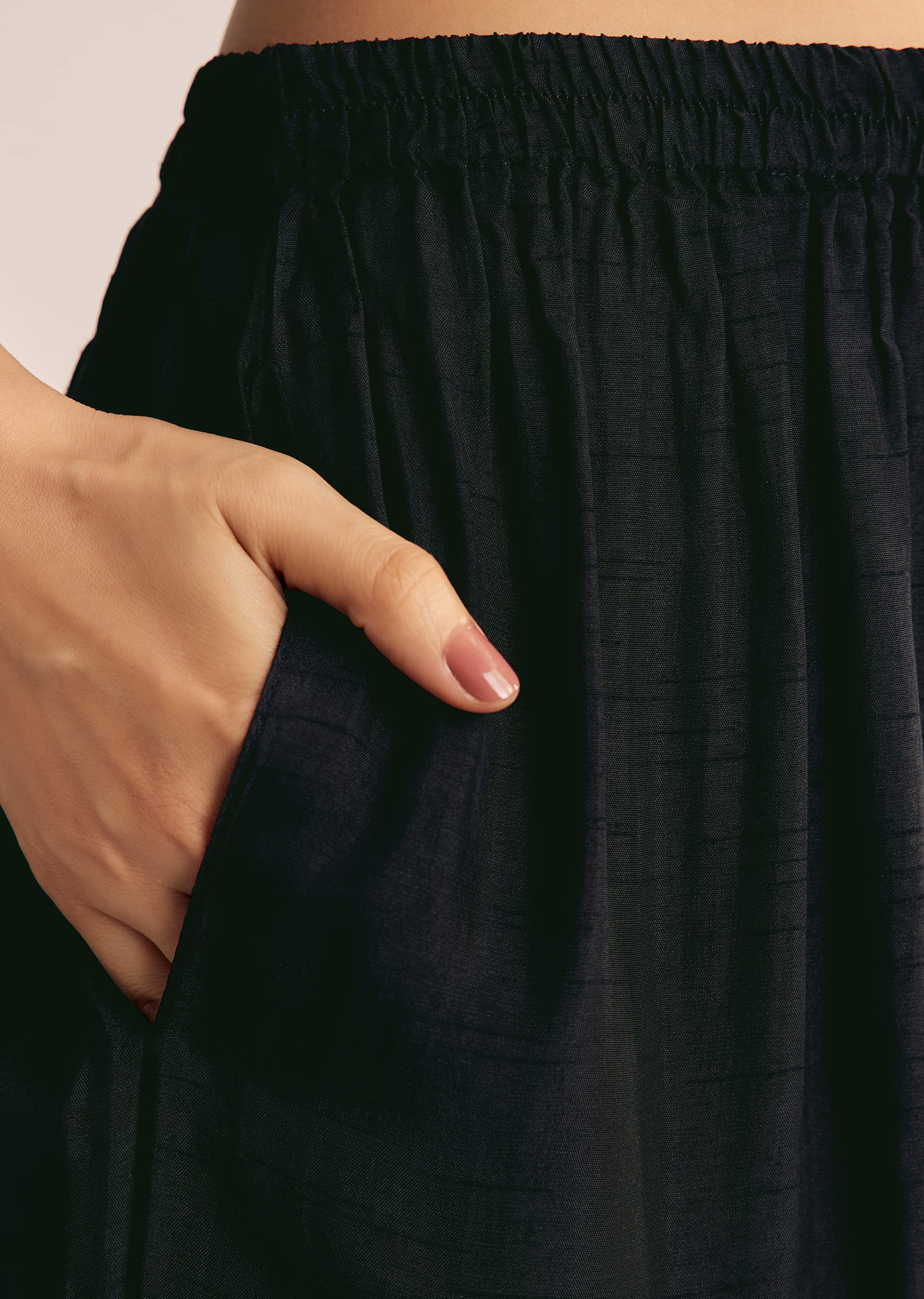 Zardosi and thread embroidery adorn this black Dola silk kurta, balanced by a transparent organza dupatta. A canvas of elegance for starry rituals.Awarded as the Most Trusted Brand, we're delivering... More Product Details