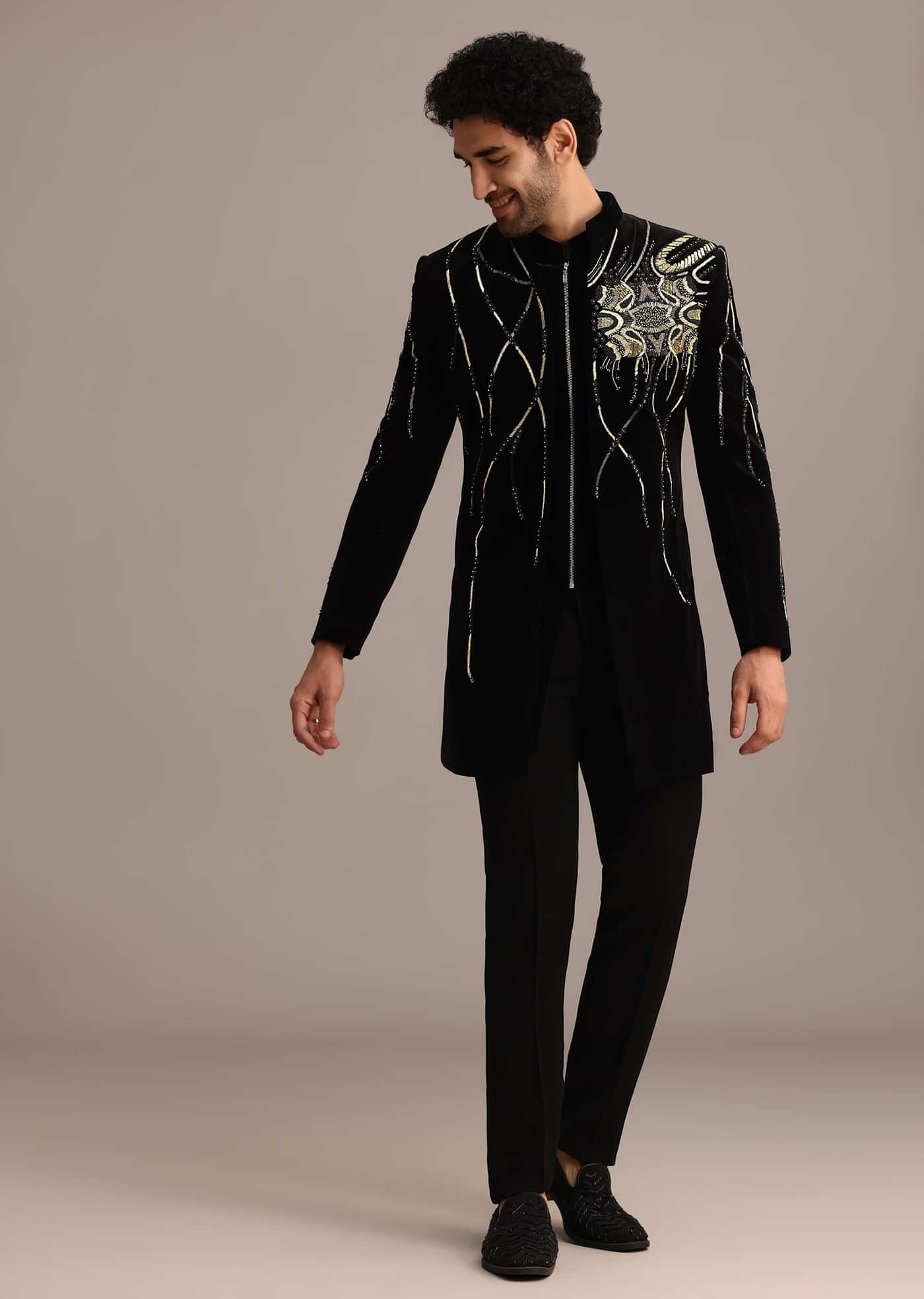 Black Zardozi Embroidered Indo Western Set in Velvet