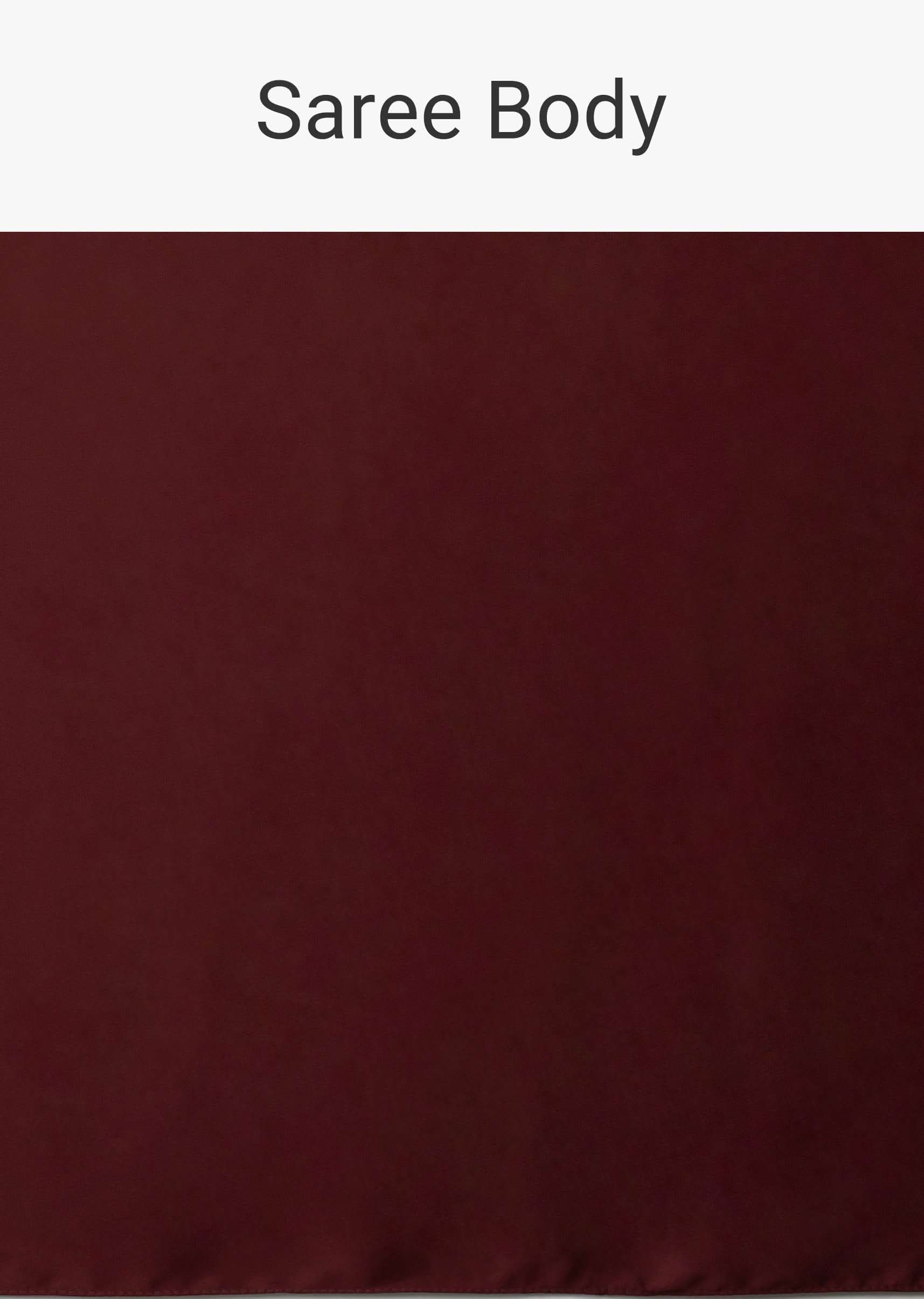Blood Red Satin Saree With Fringes On The Pallu Paired With Hand Embroidered Bustier