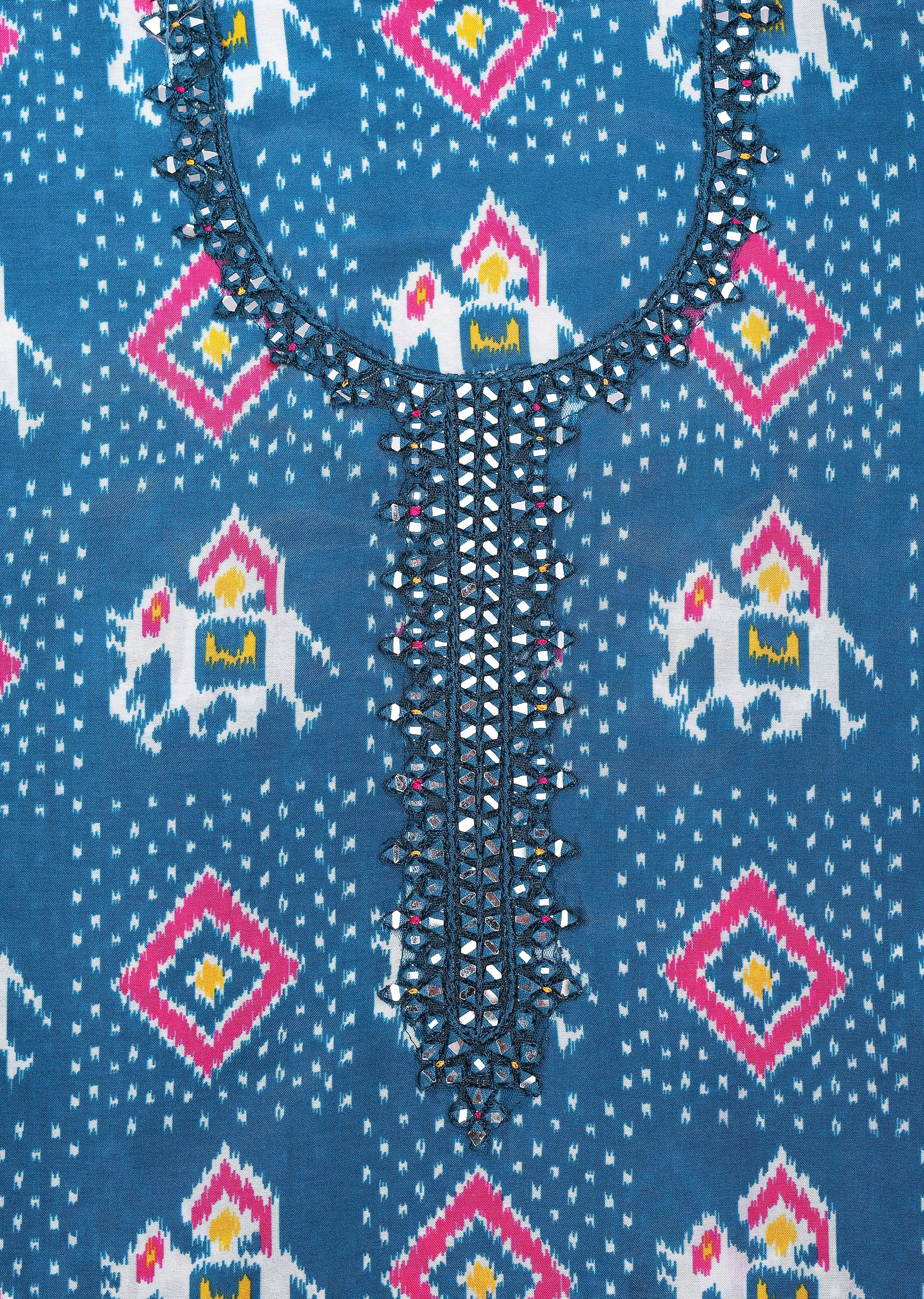 - It includes one unstitched kurta fabric, one bottom fabric and one dupatta.