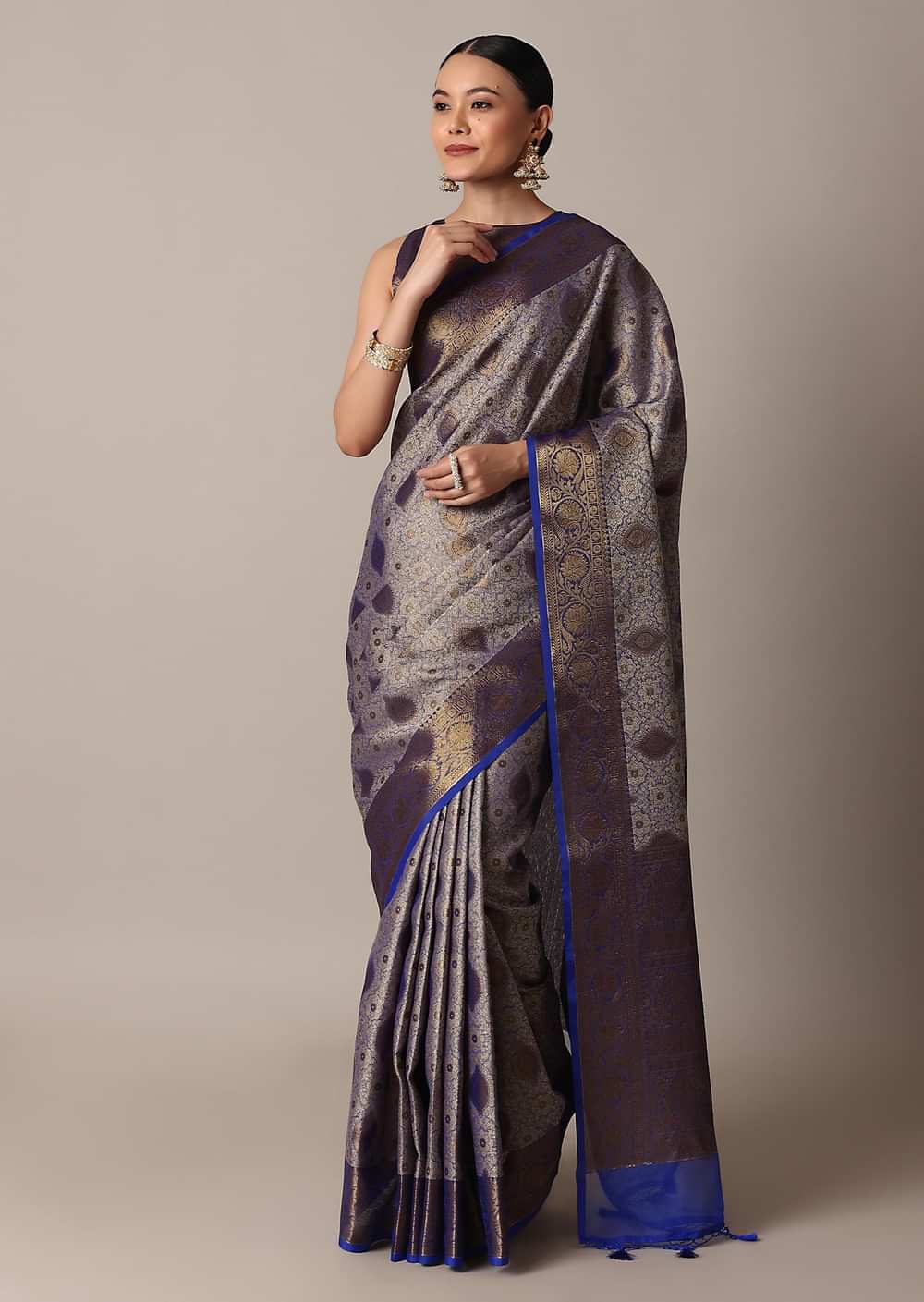 - Bring an instant dose of luxury to your ethnic wardrobe with this opulent blue saree.