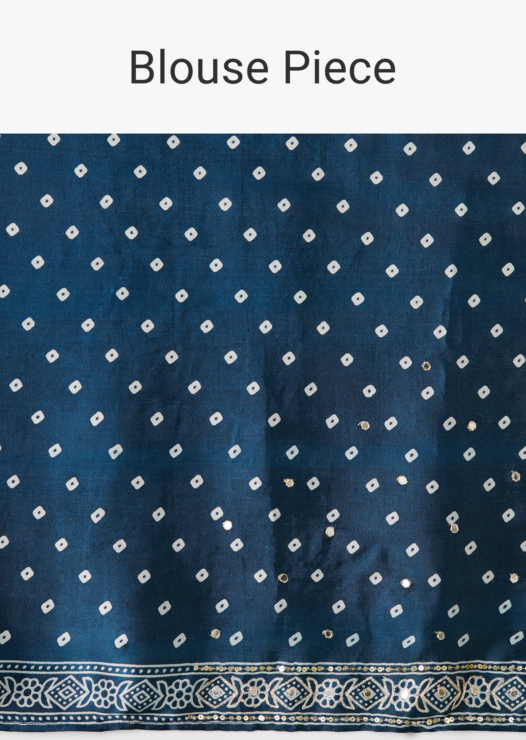 This elegant saree is made from soft and luxurious satin fabric, offering a smooth and glossy finish. It features a striking blue chevron and Ajrakh print, enhanced by a mirror-embellished border and pallu that add a touch of sparkle. Perfect for festive occasions, this saree allows you to make a stylish statement with its bold patterns and intricate details. Saree border may vary. Awarded as the Most Trusted Brand, we're delivering styles you love, just as promised.