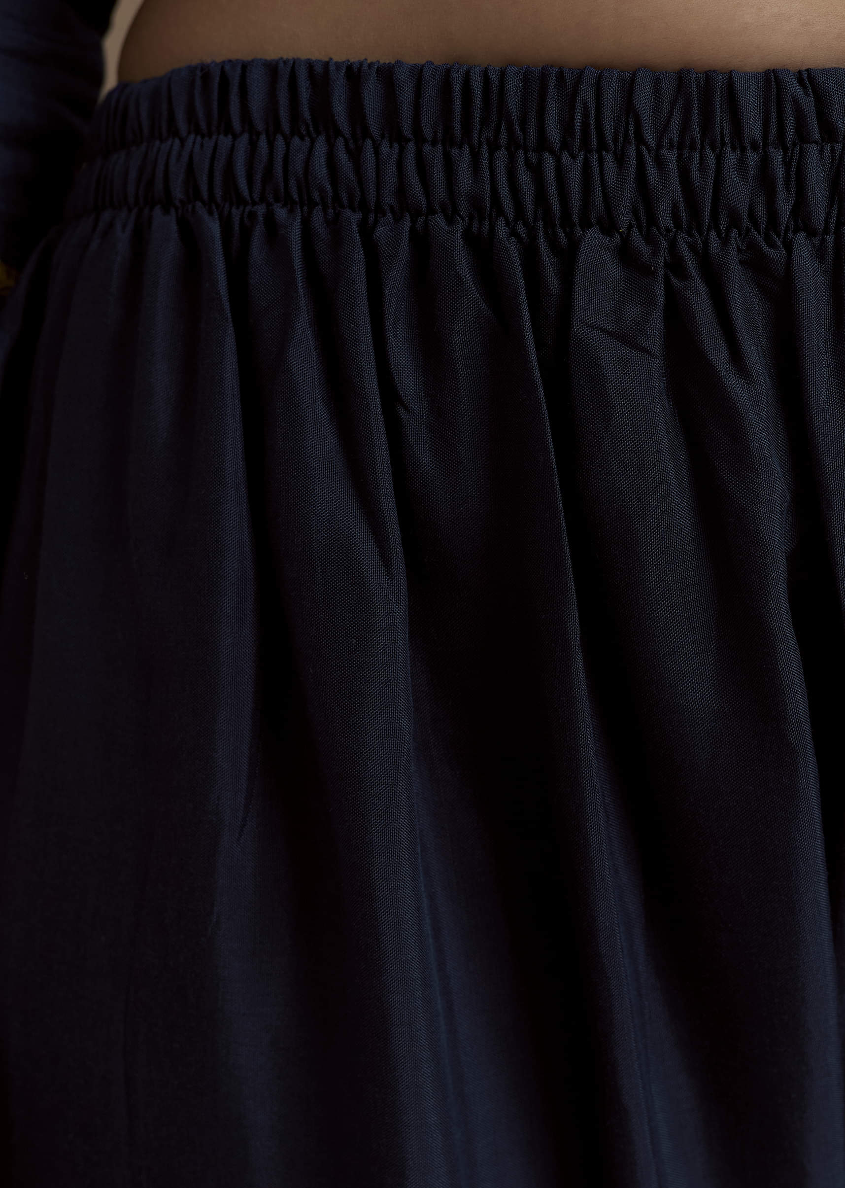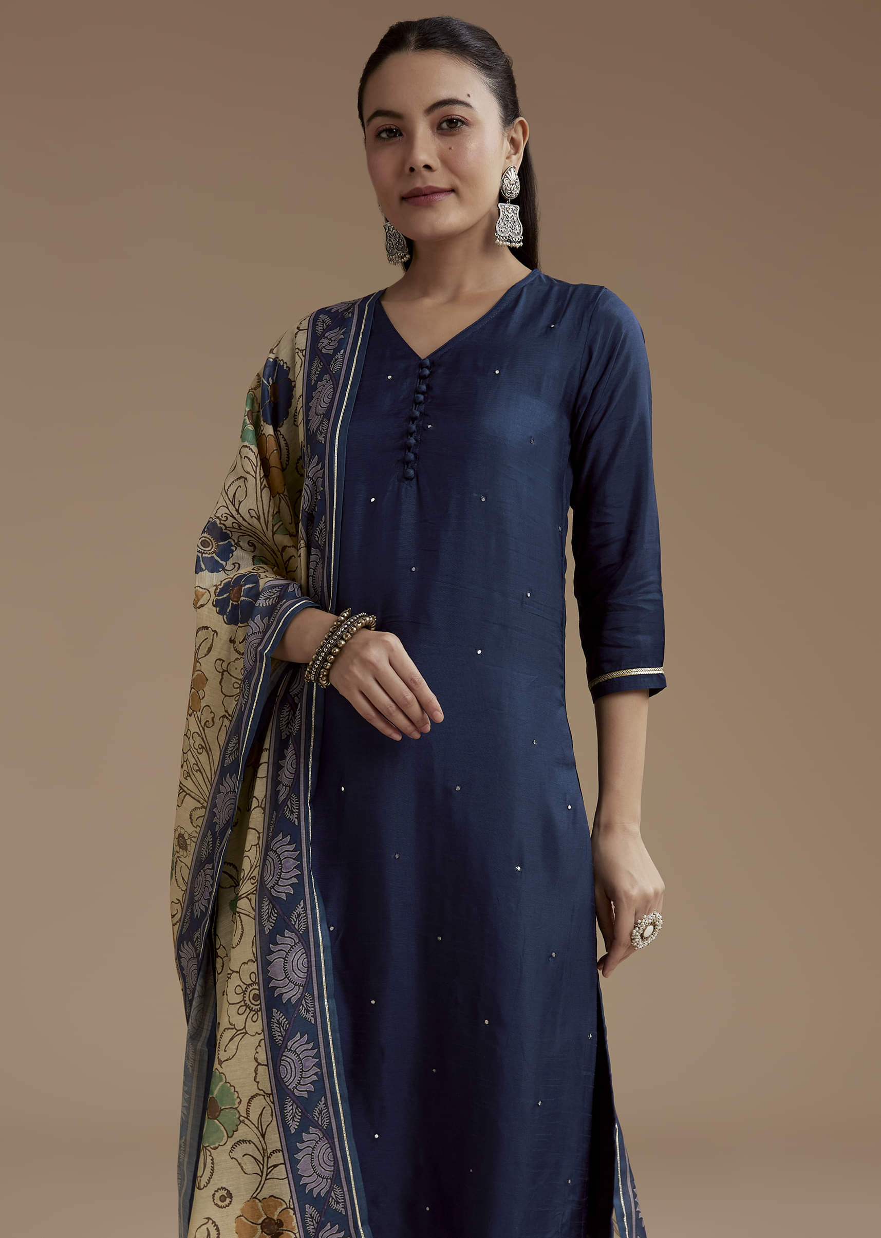 Blue Cotton Foil Mirror Kurta Set with Kalamkari Dupatta