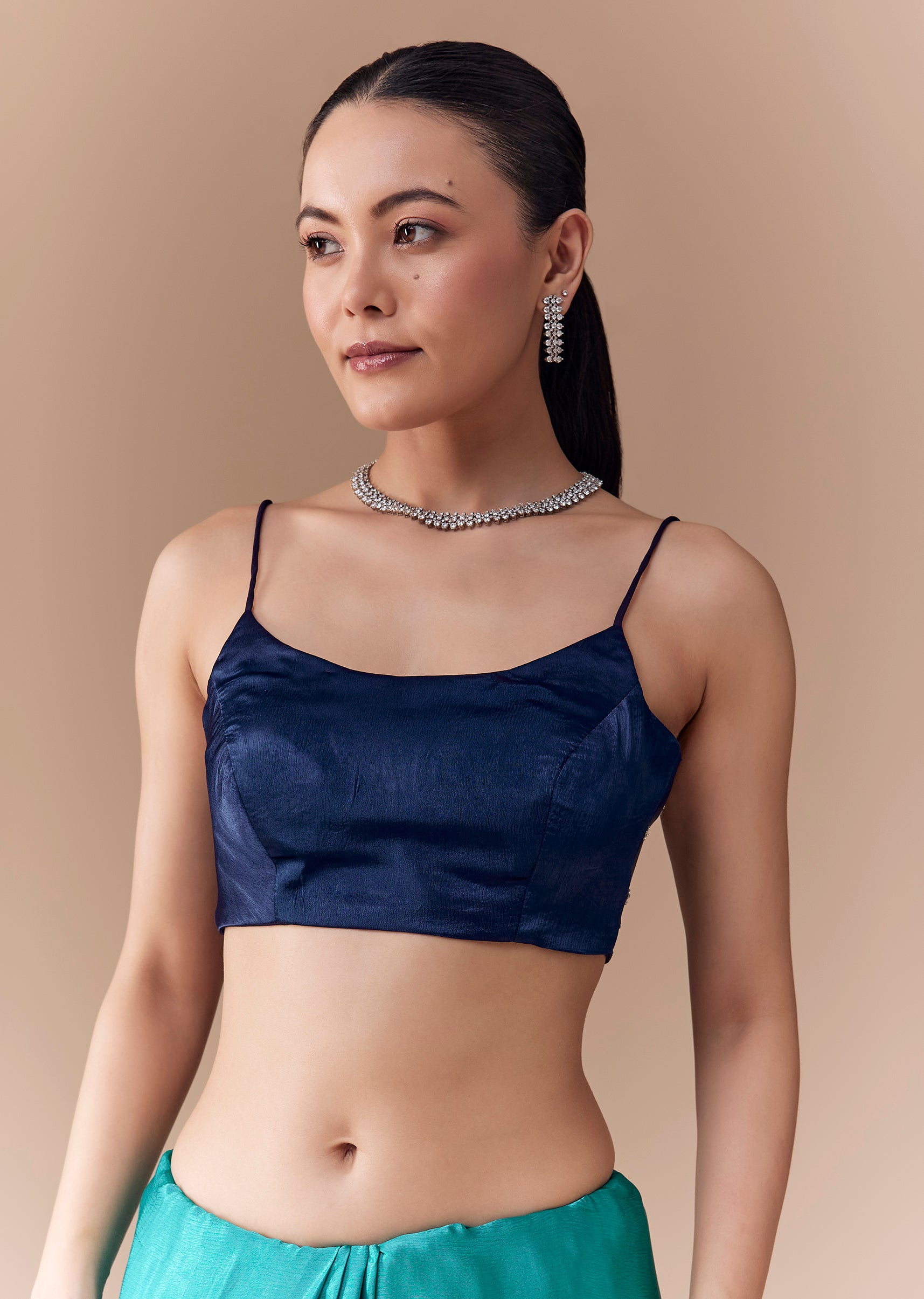 Elevate your festive look with this dual-shaded blue satin saree, featuring a beautifully scalloped border and heavy embroidery adorned with cutdana, sequins, and stones all over. The rich satin fabric... More Product Details