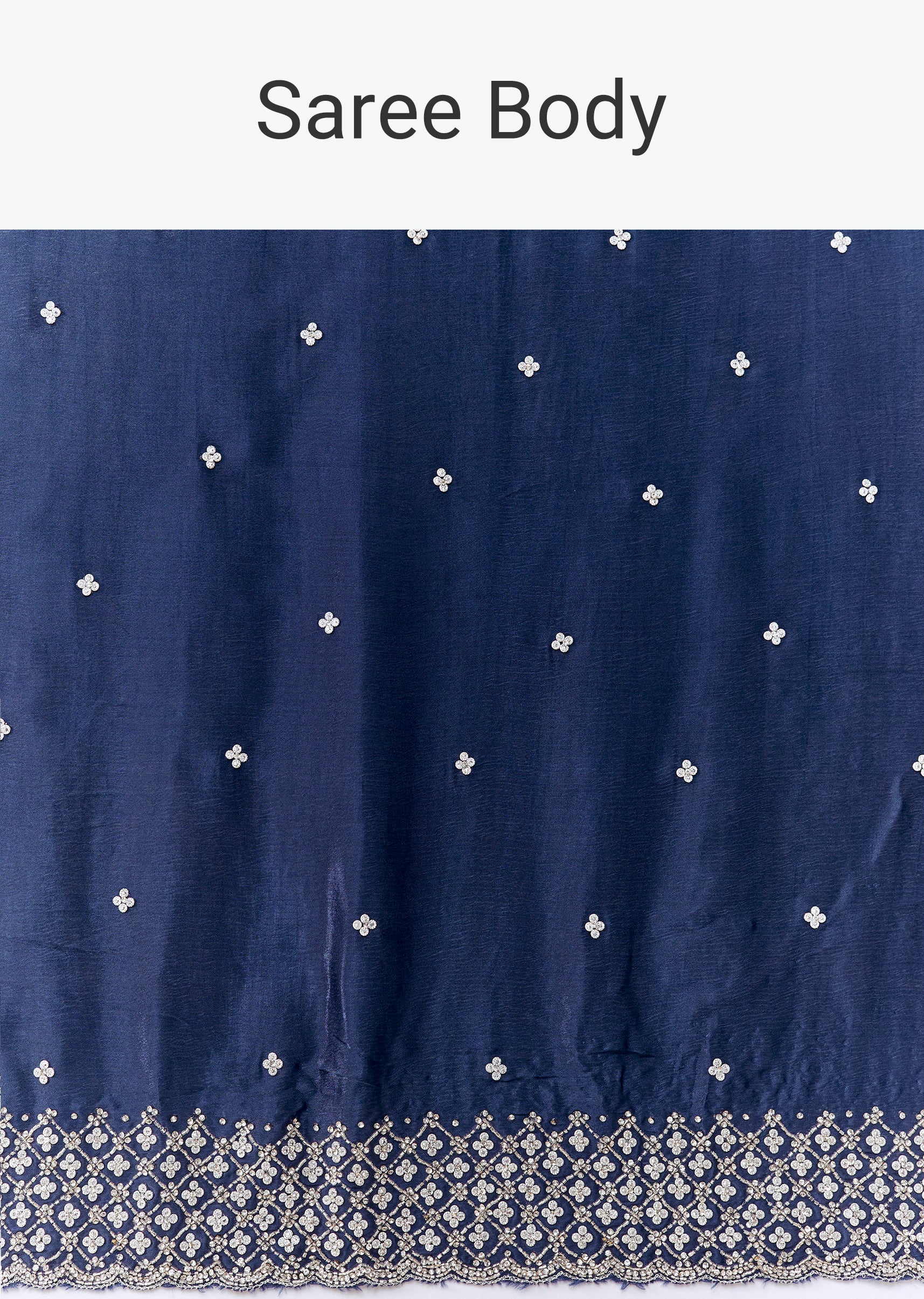 Elevate your festive look with this dual-shaded blue satin saree, featuring a beautifully scalloped border and heavy embroidery adorned with cutdana, sequins, and stones all over. The rich satin fabric offers a smooth, lustrous drape, perfectly complemented by the intricate embellishments that add a touch of luxury and elegance. Ideal for weddings, receptions, or evening occasions, this saree is a stunning blend of modern glamour and timeless grace. Awarded as the Most Trusted Brand, we're delivering styles you love, just as promised.