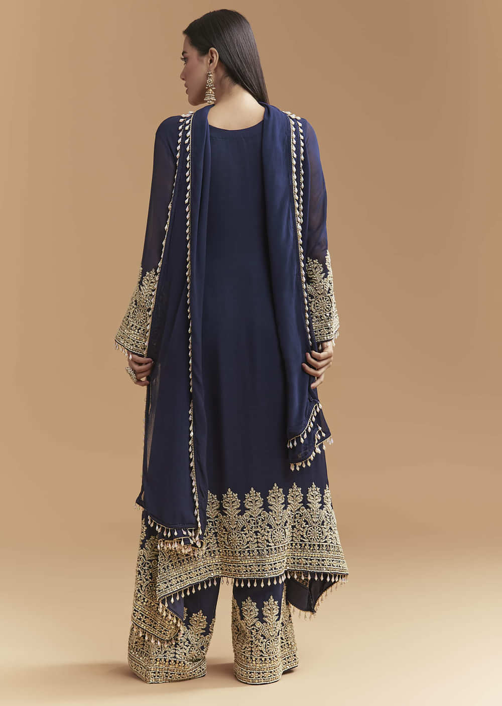 Blue Georgette Kurta Set With Moti And Sequins Work