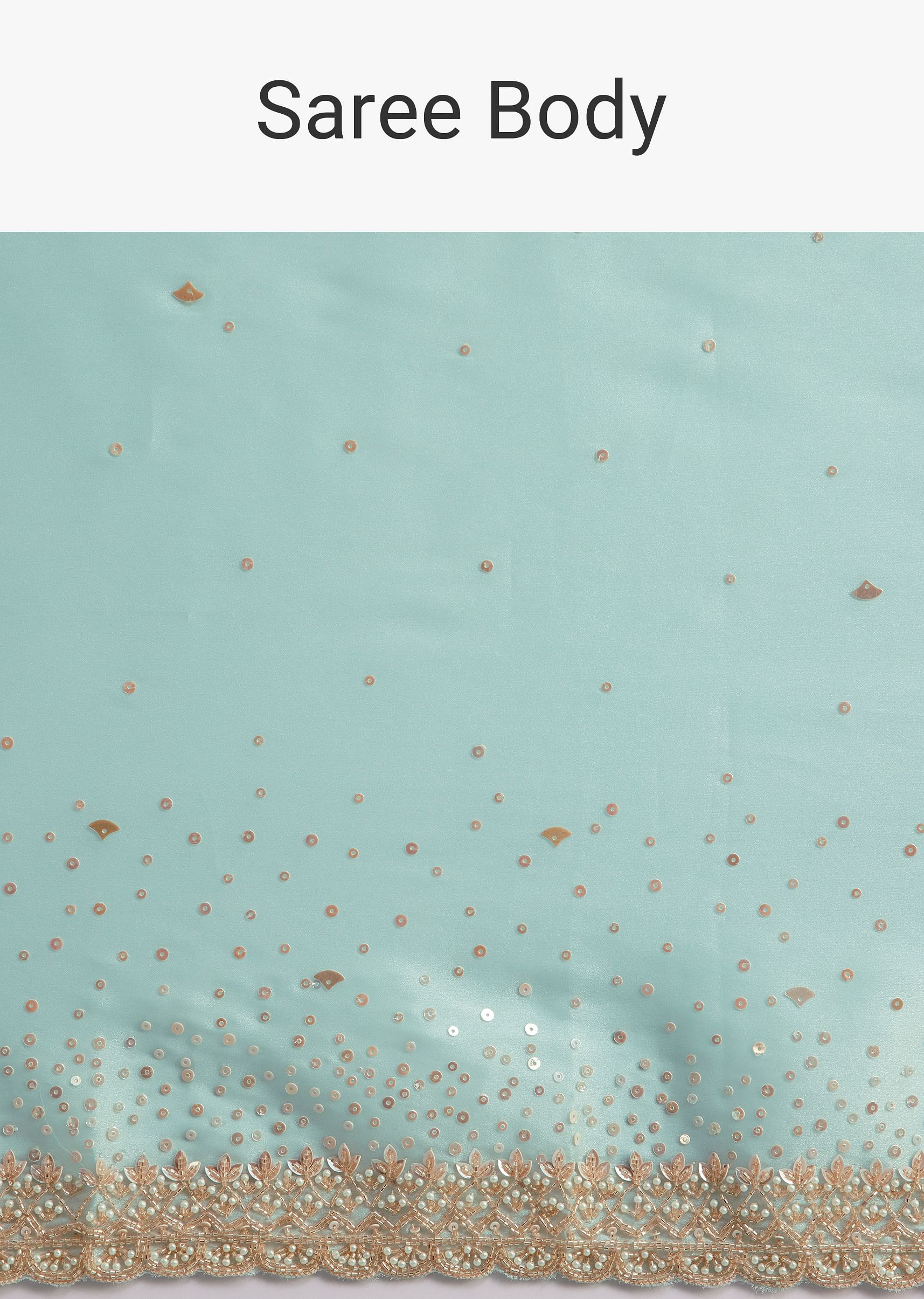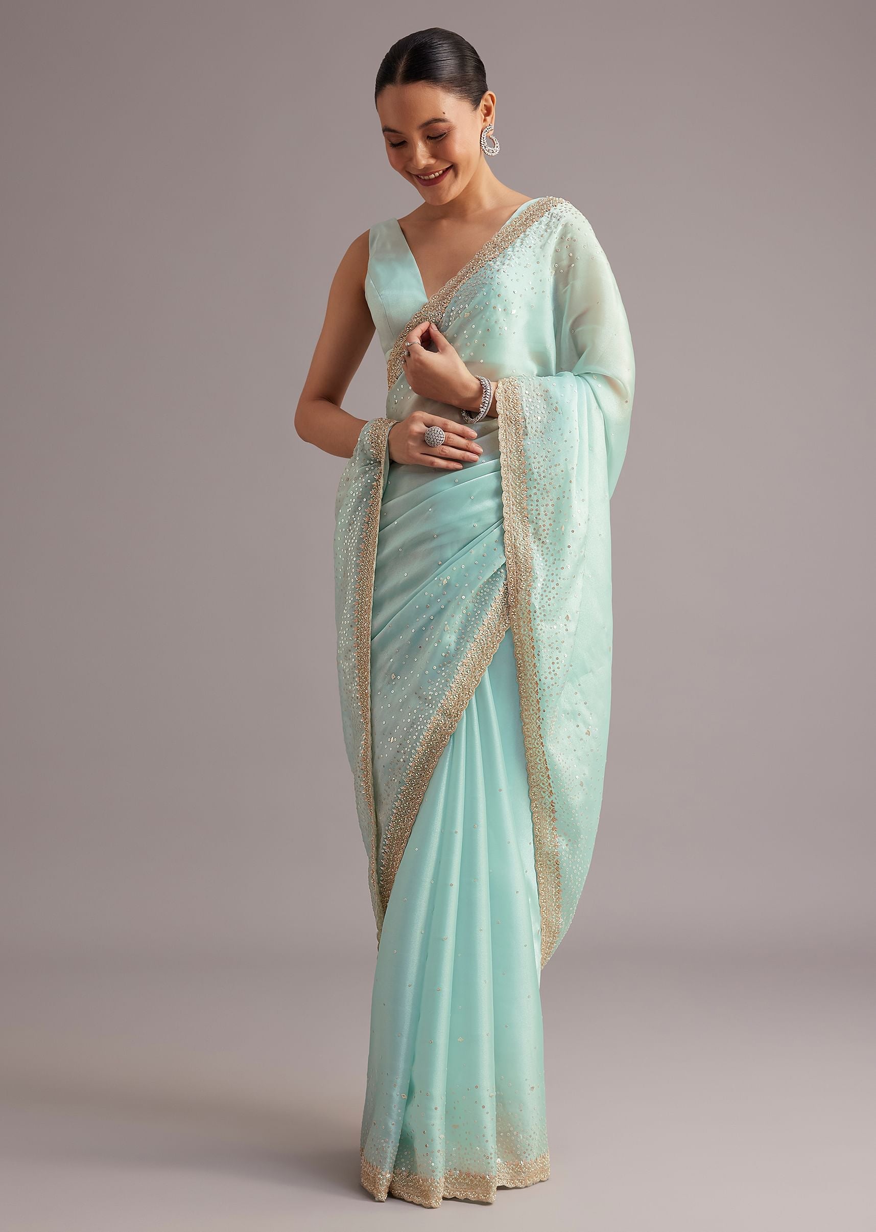 Blue Glass Tissue Saree With Cutdana Sequin And Beaded Embroidery